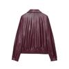 Otoño 2025 Nueva Moda Versátil Americano Retro Minimalista Cuello Vuelto Cremallera Borgoña Chaqueta de Cuero Abrigo Top de Mujer