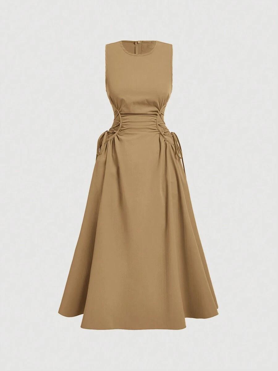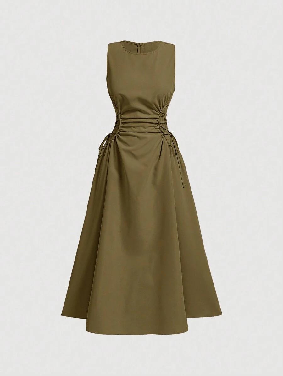 Vestido Nuevo Primavera/Verano 2025 Temperamento Francés Tirantes Espagueti Nicho Plisado Cintura Entallada Adelgazante Línea A Vestido Largo