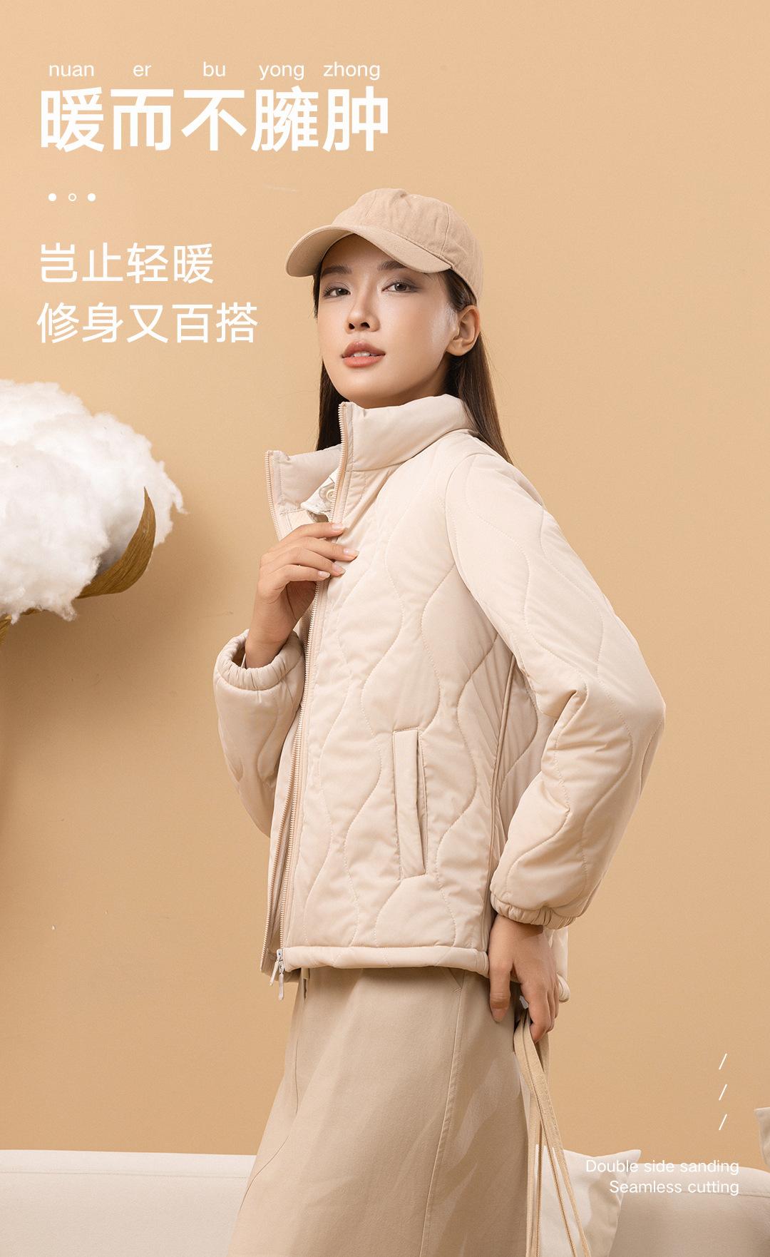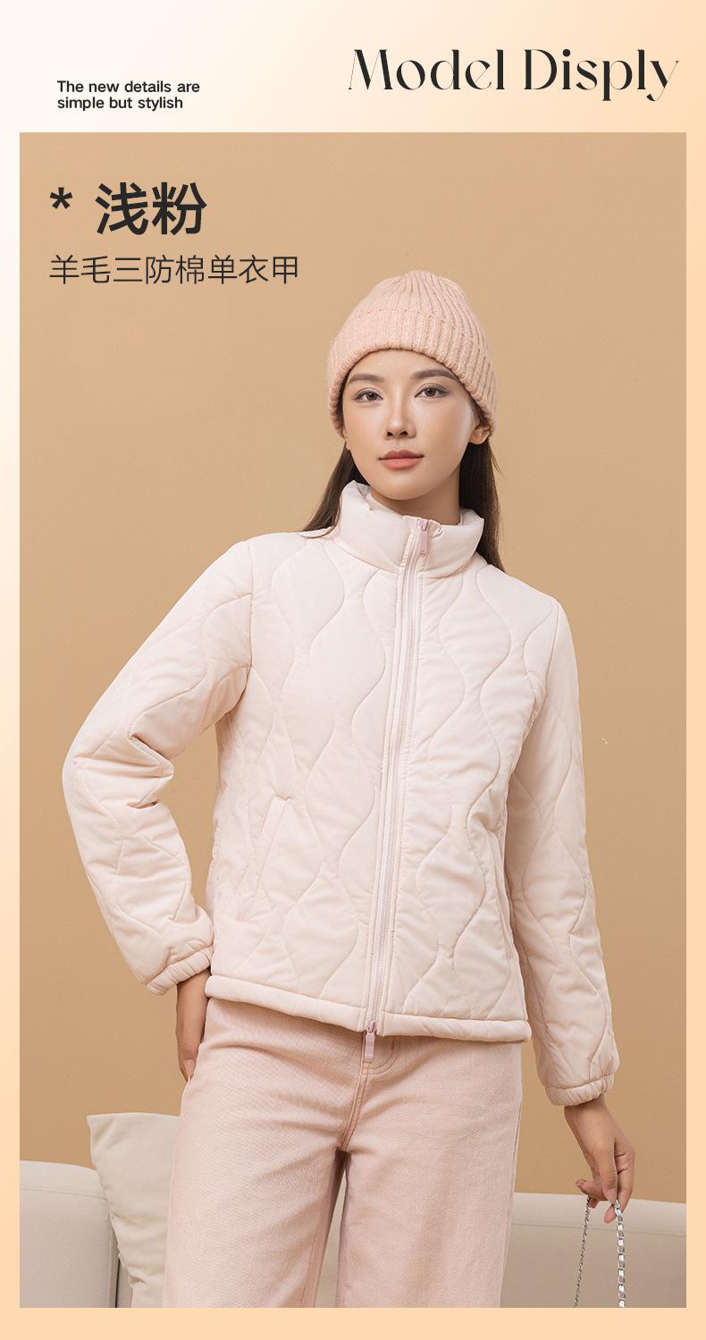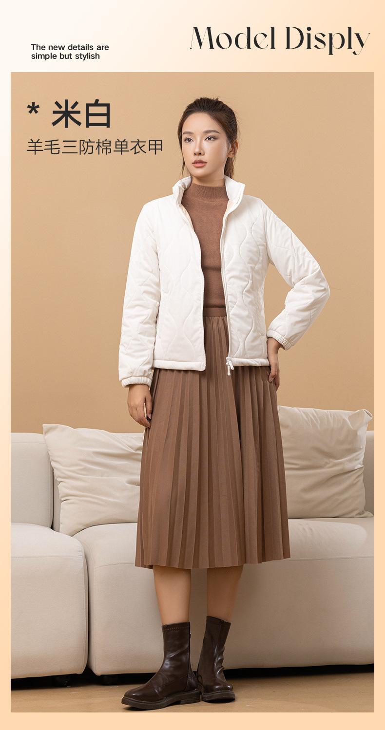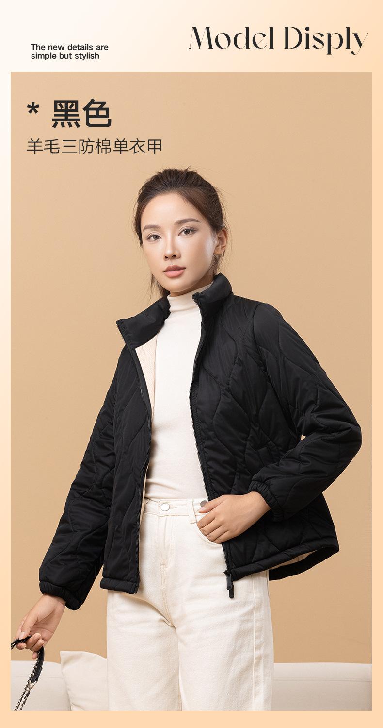 Abrigo de Algodón Lana Tres-Prueba de Cuello Alto Nuevo Otoño e Invierno, Retenedor de Calor y Cálido, No Voluminoso, Chaqueta de Algodón Adelgazante para Mujer