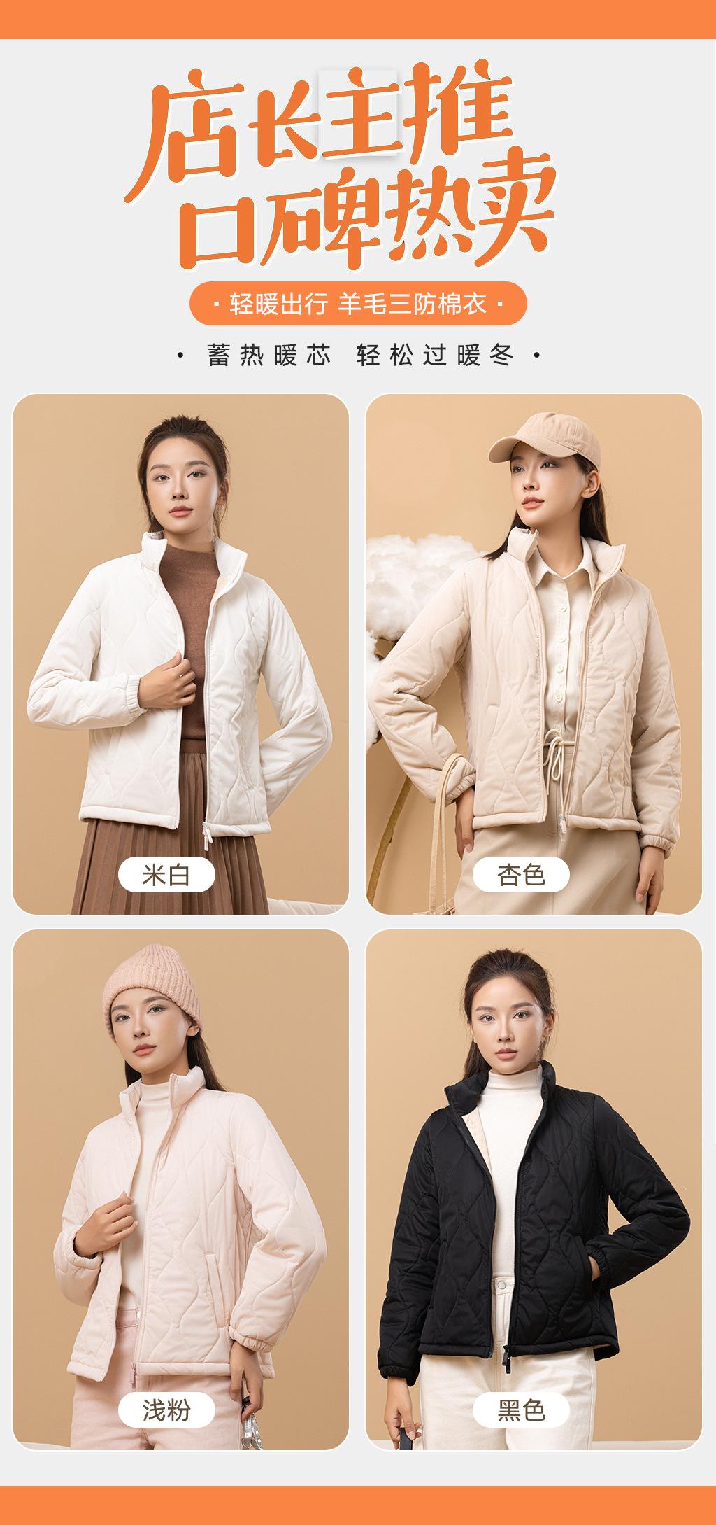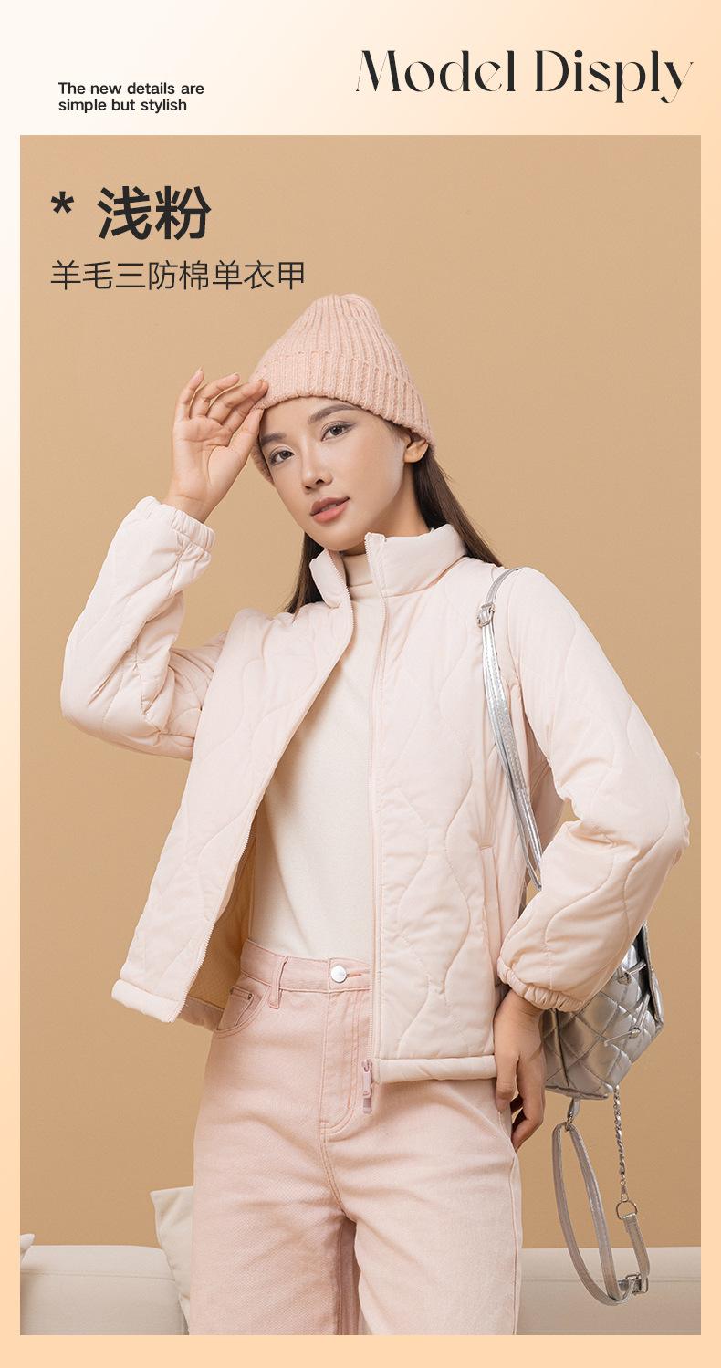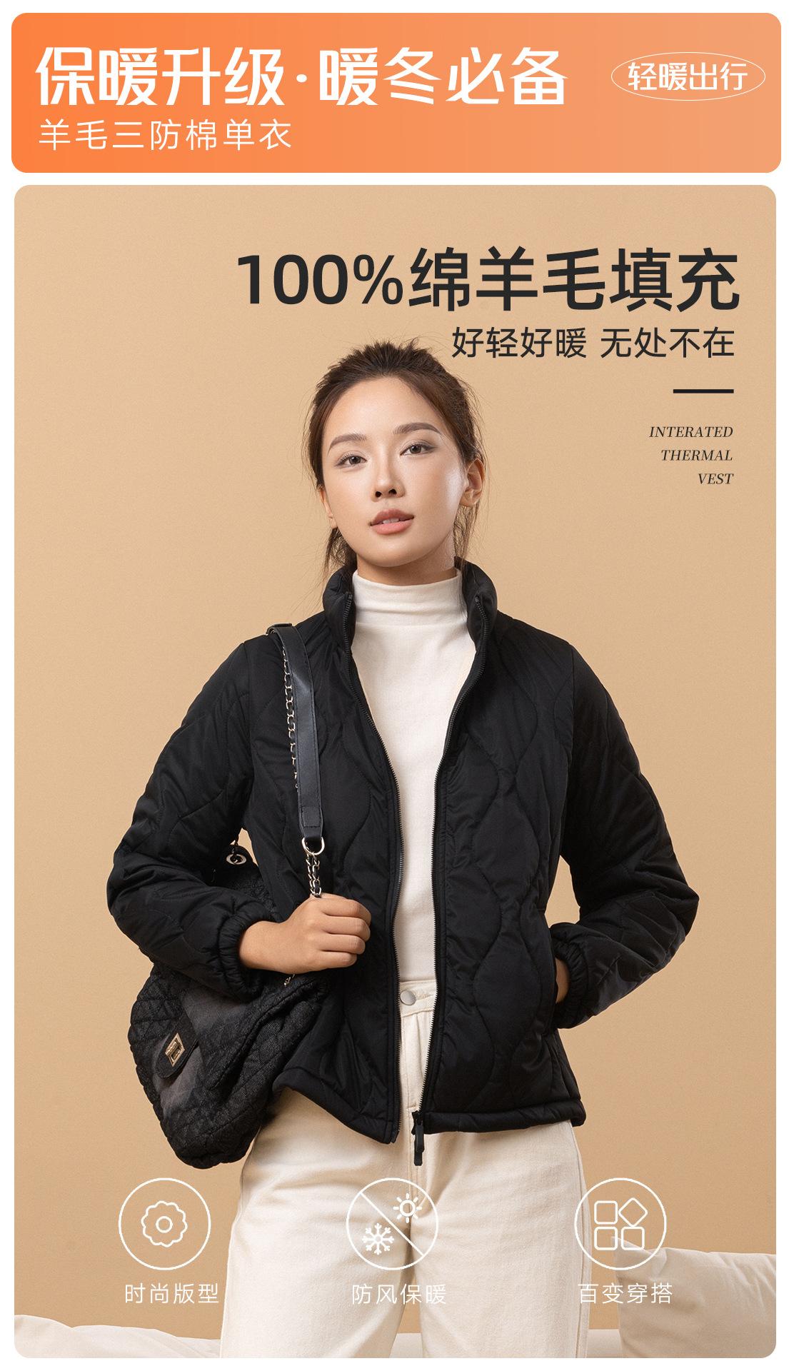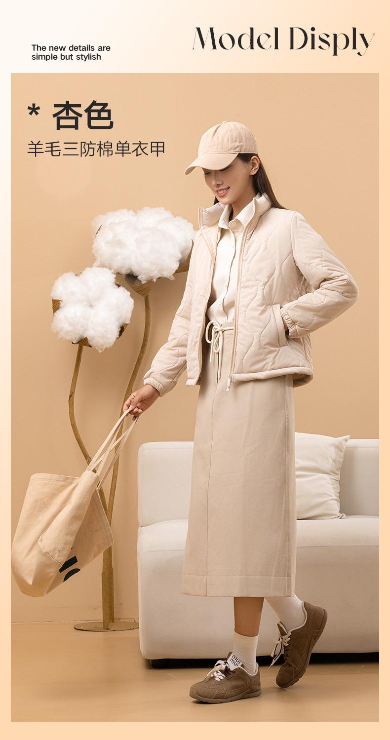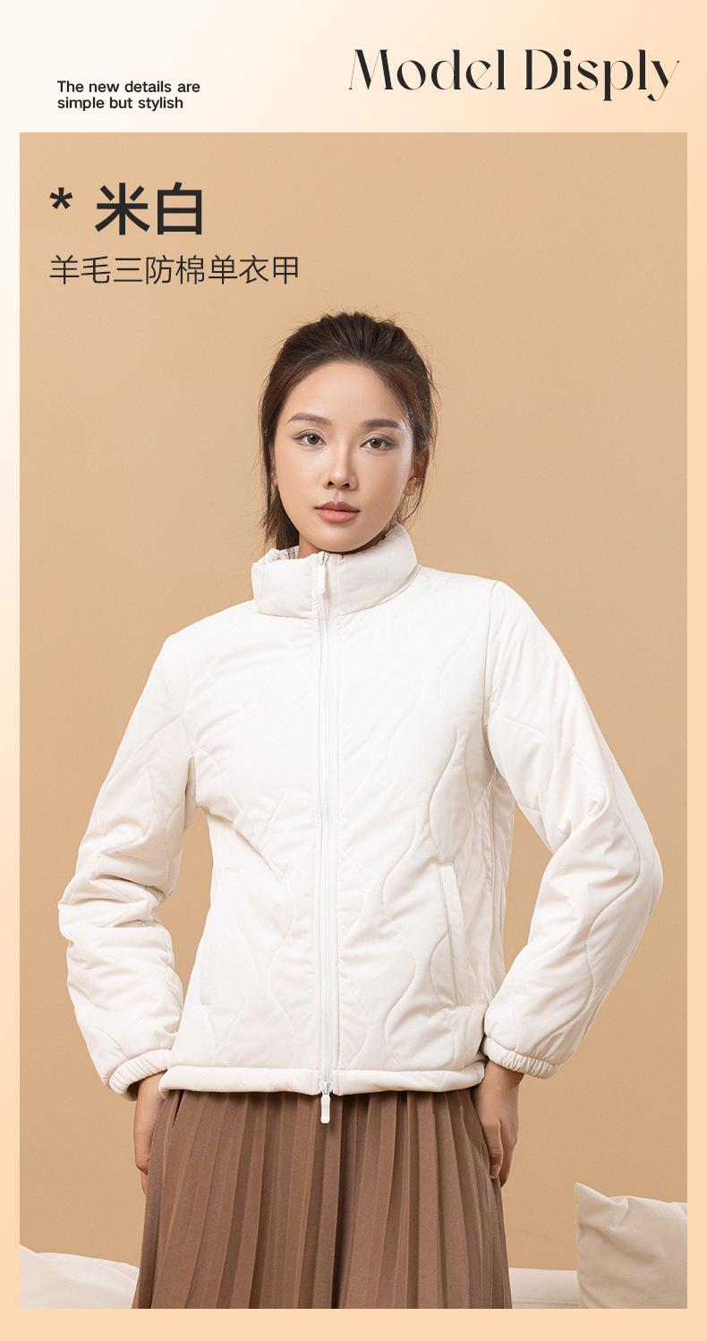 Abrigo de Algodón Lana Tres-Prueba de Cuello Alto Nuevo Otoño e Invierno, Retenedor de Calor y Cálido, No Voluminoso, Chaqueta de Algodón Adelgazante para Mujer
