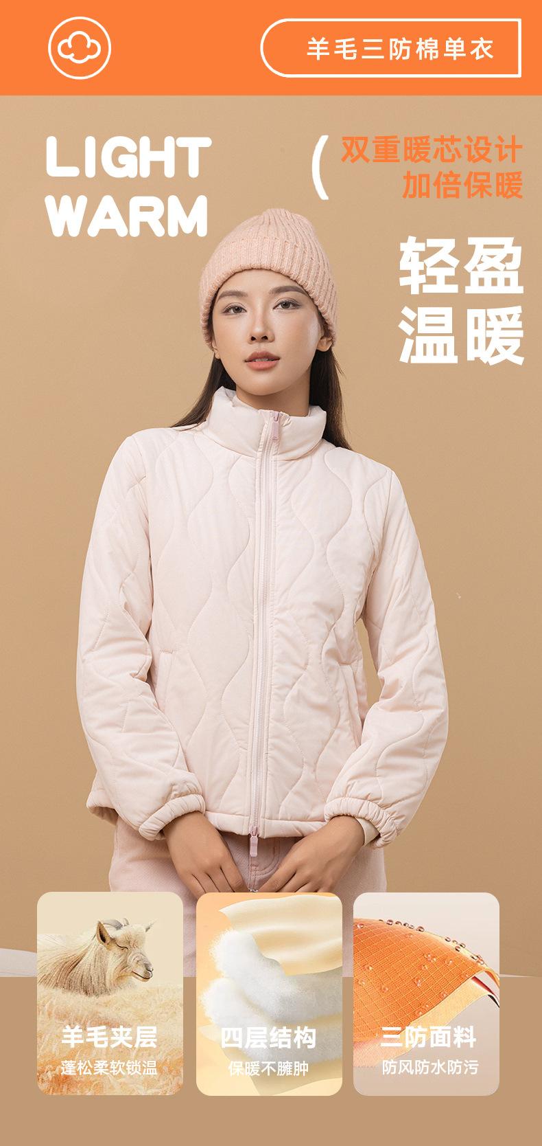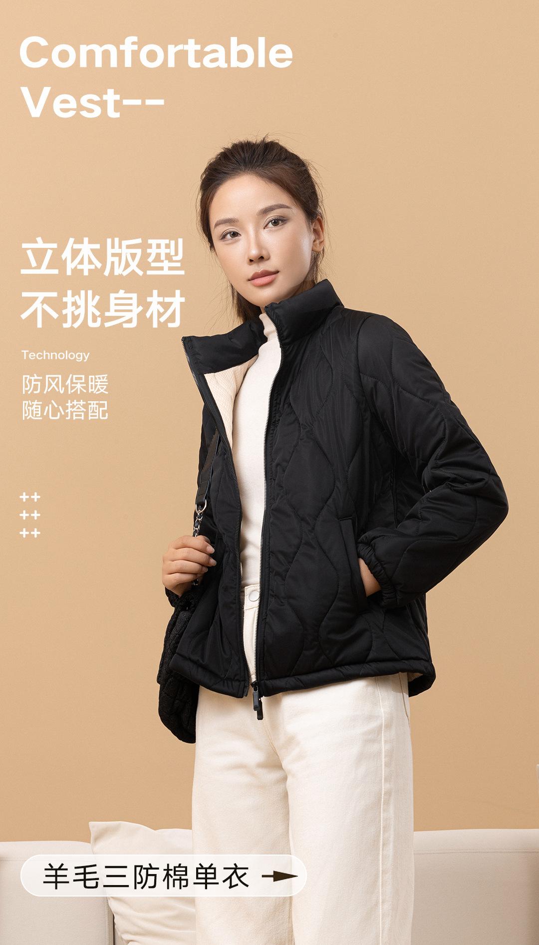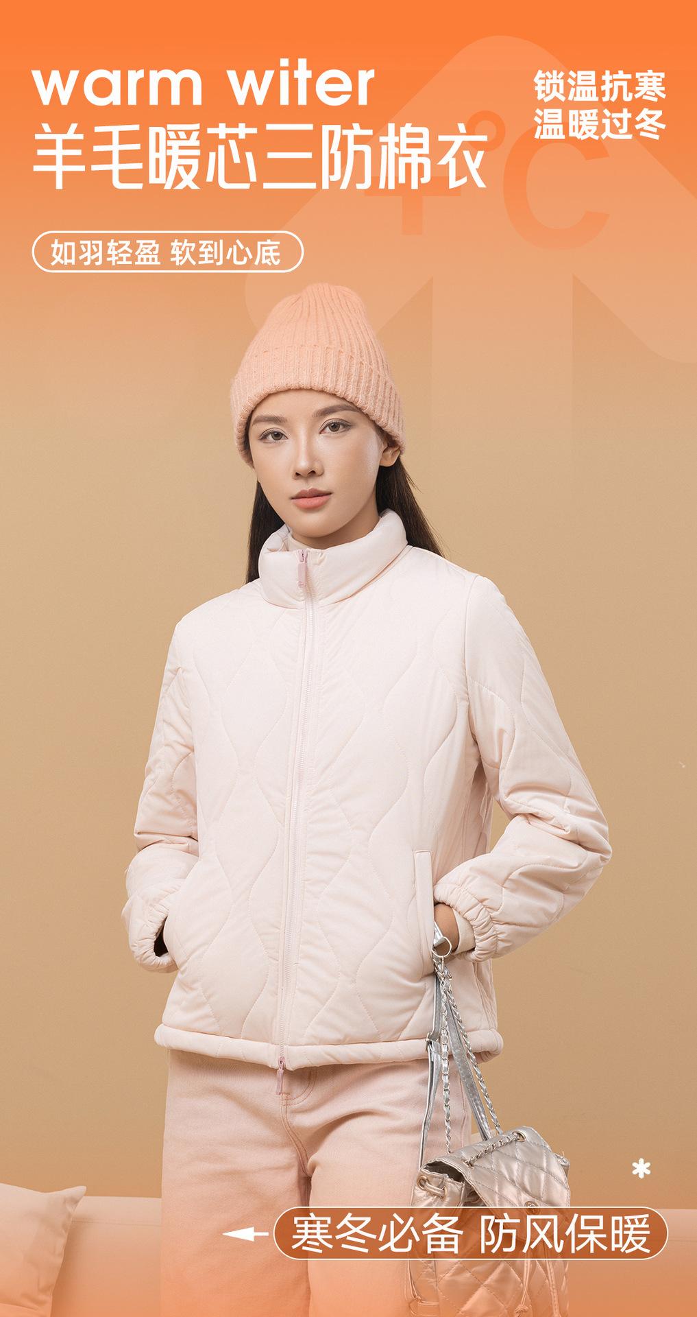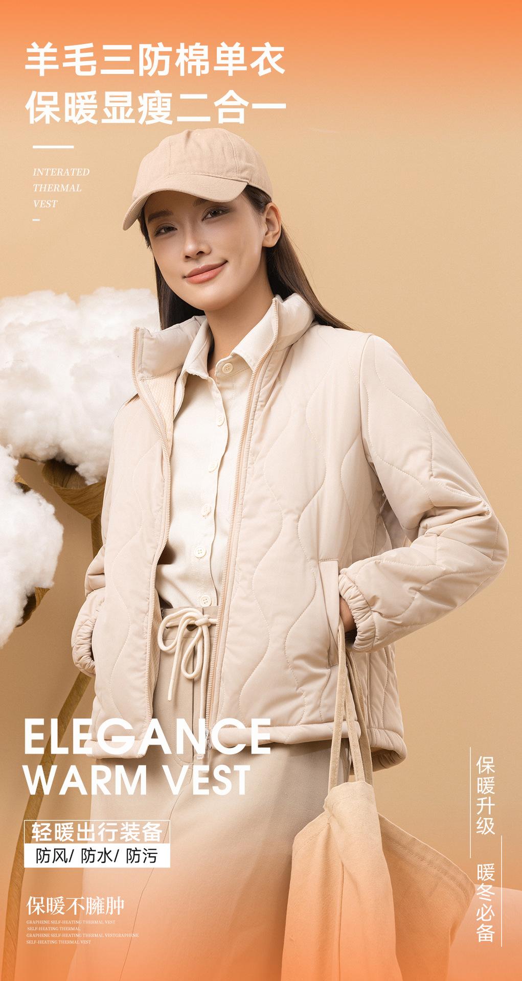 Abrigo de Algodón Lana Tres-Prueba de Cuello Alto Nuevo Otoño e Invierno, Retenedor de Calor y Cálido, No Voluminoso, Chaqueta de Algodón Adelgazante para Mujer