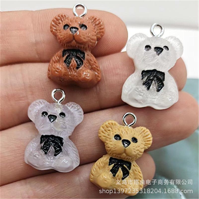 Envío Gratis Dibujos Animados Crema Pegamento Resina Accesorios Colgante de Oso DIY Accesorios de Joyería Aretes Aretes Llavero Colgante