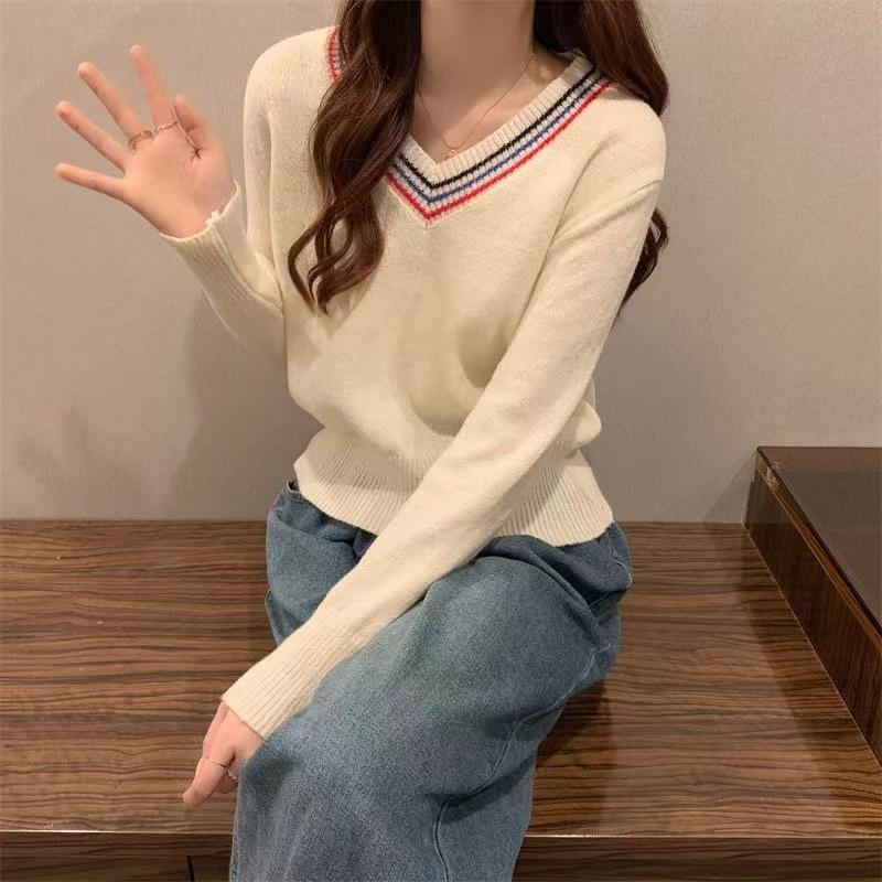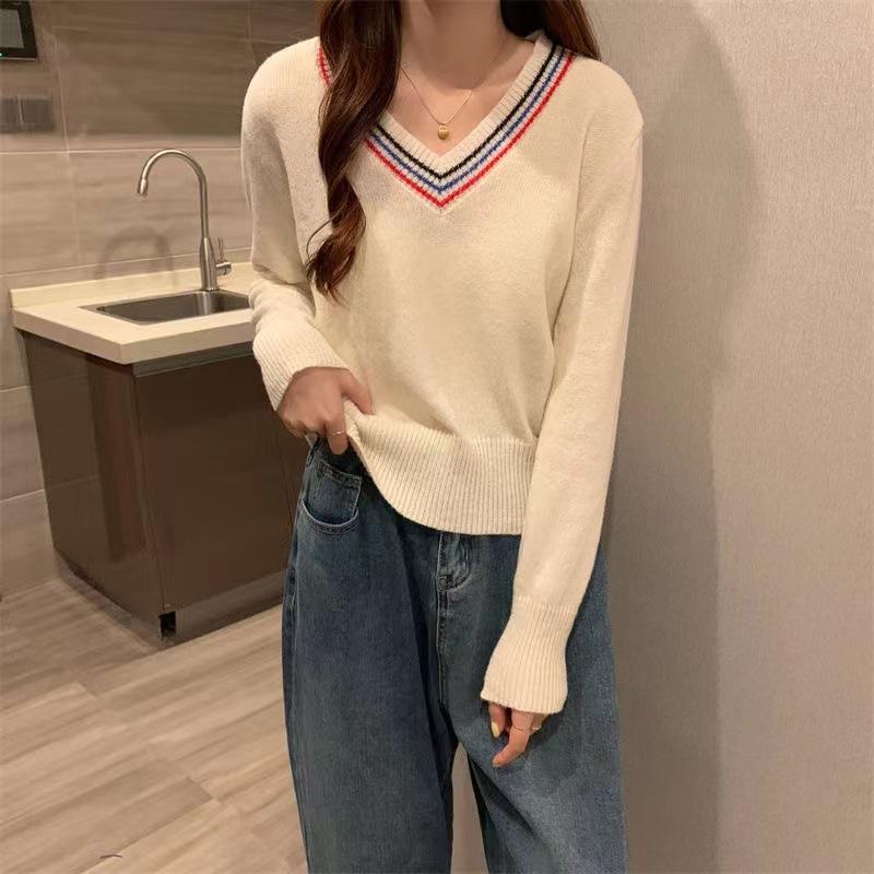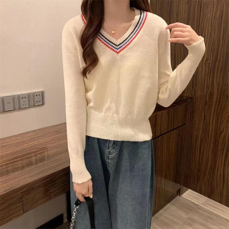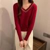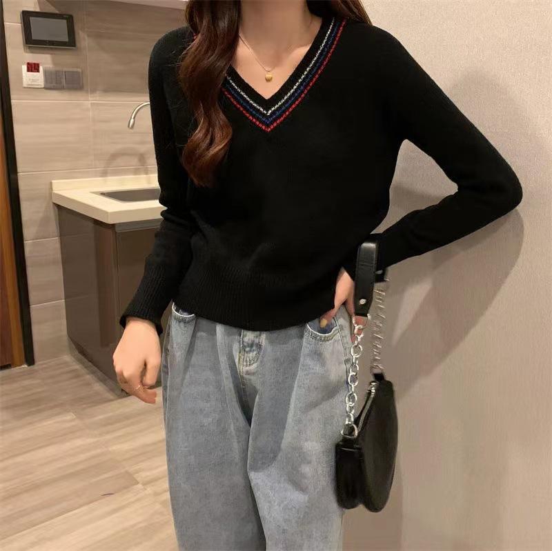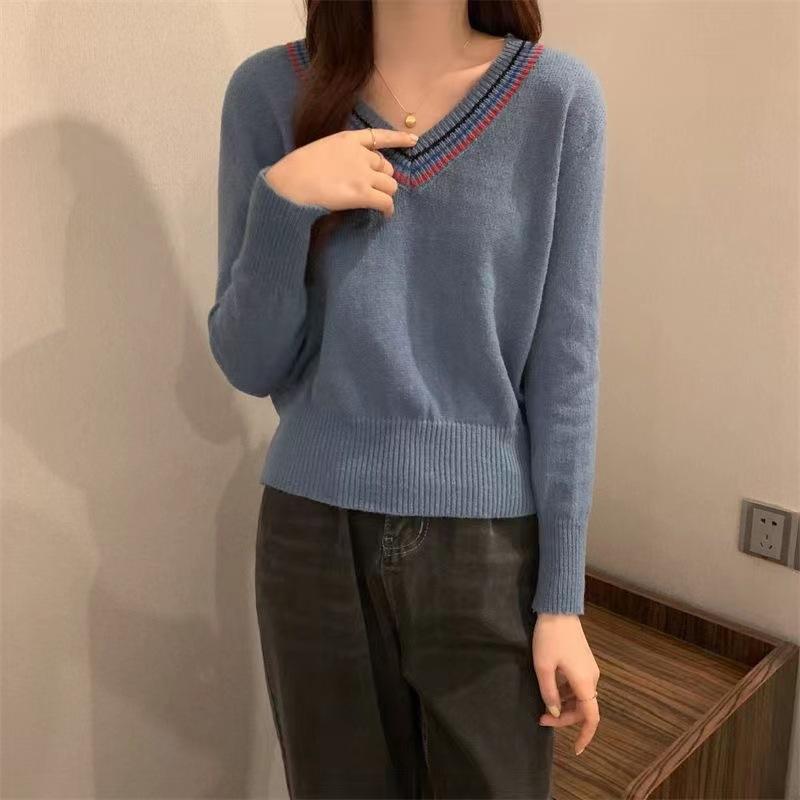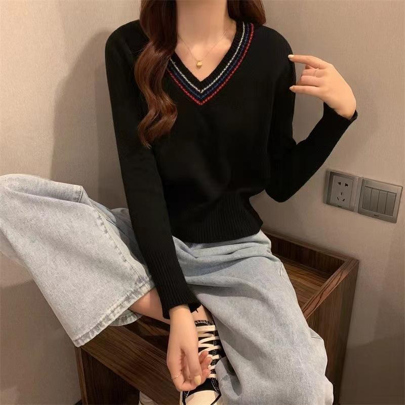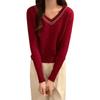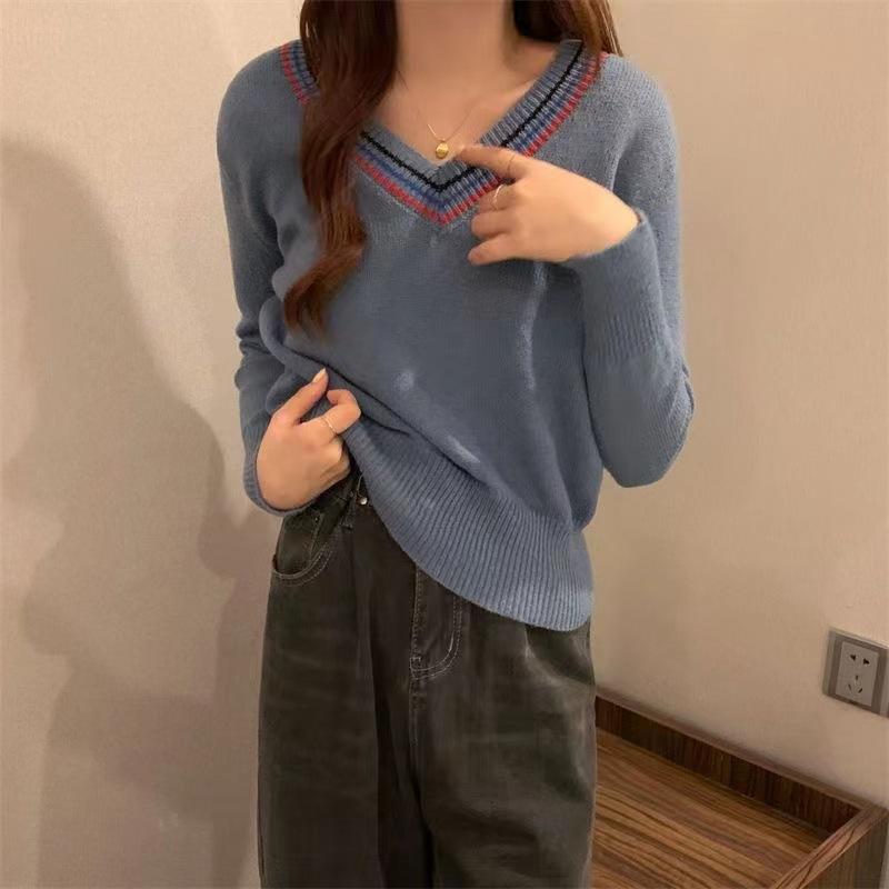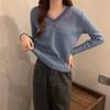 Suéter ajustado de manga larga con cuello en V para mujer, suéter básico ajustado de estilo universitario para otoño e invierno, camiseta de moda para mujer