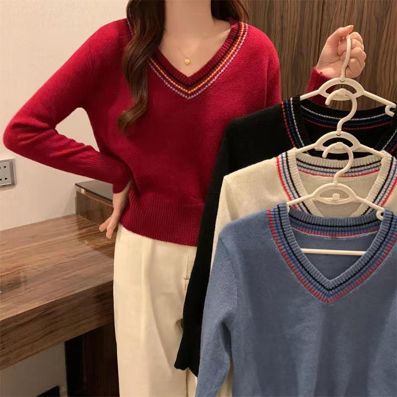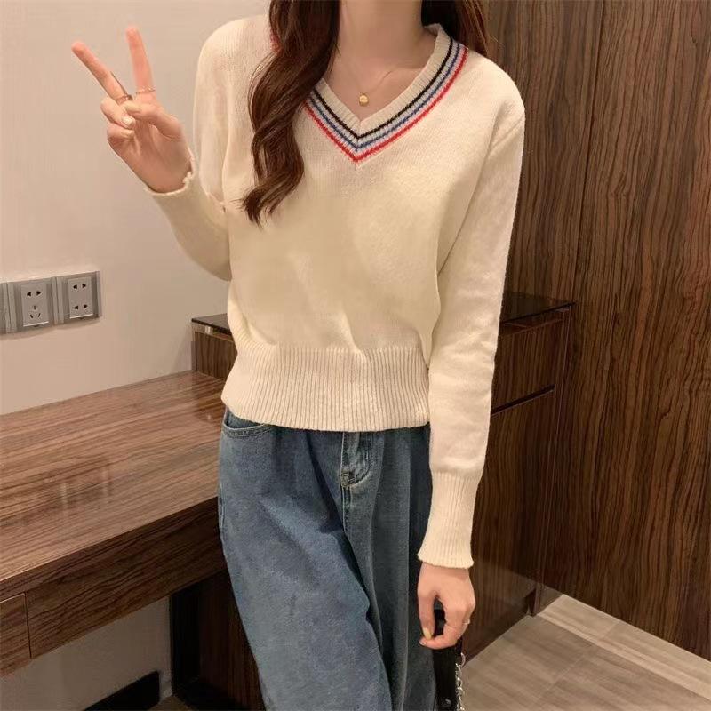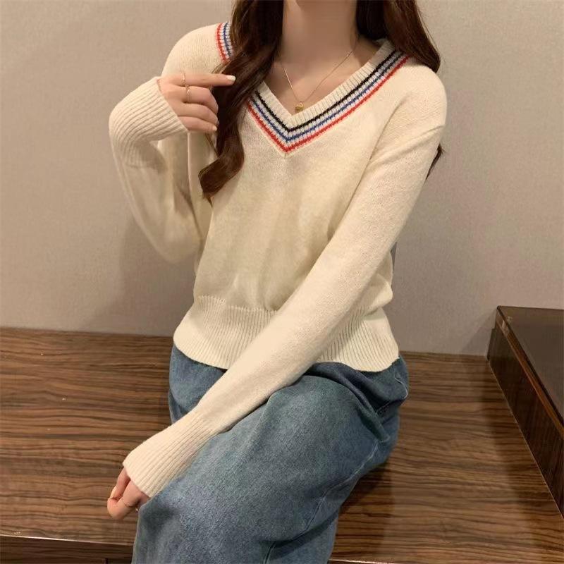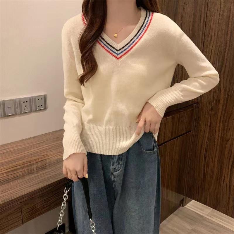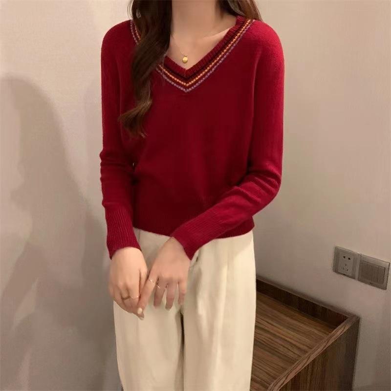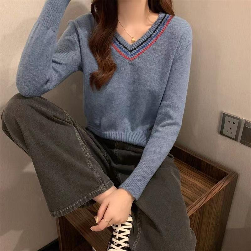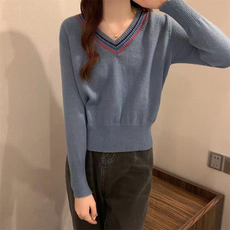 Suéter ajustado de manga larga con cuello en V para mujer, suéter básico ajustado de estilo universitario para otoño e invierno, camiseta de moda para mujer