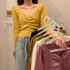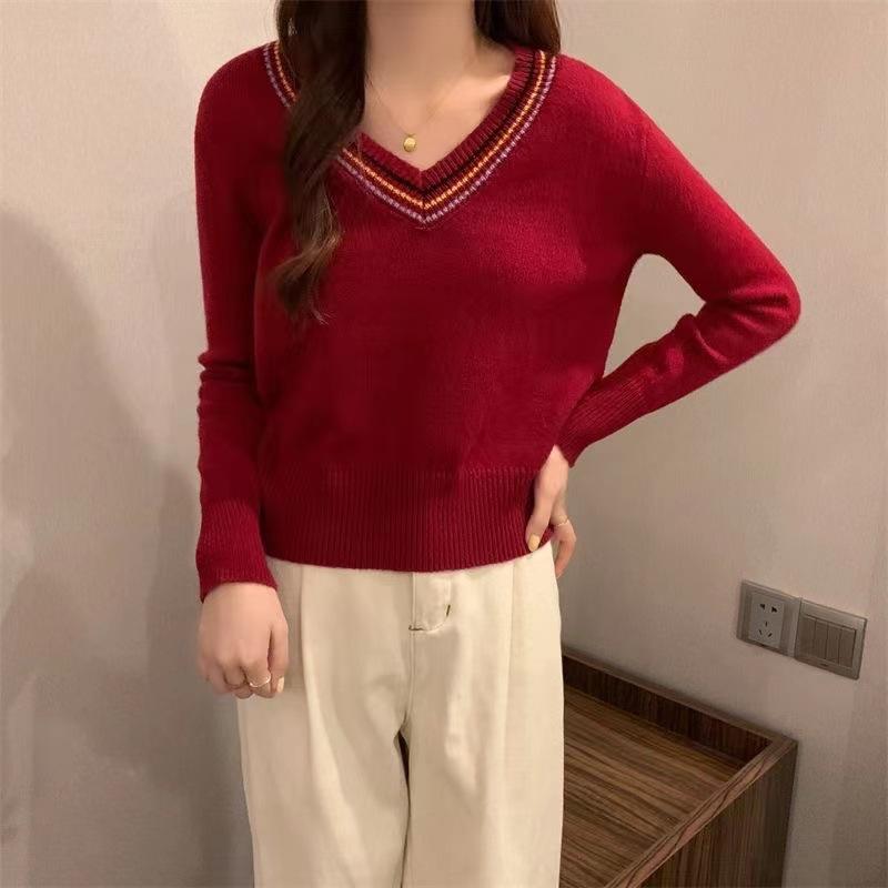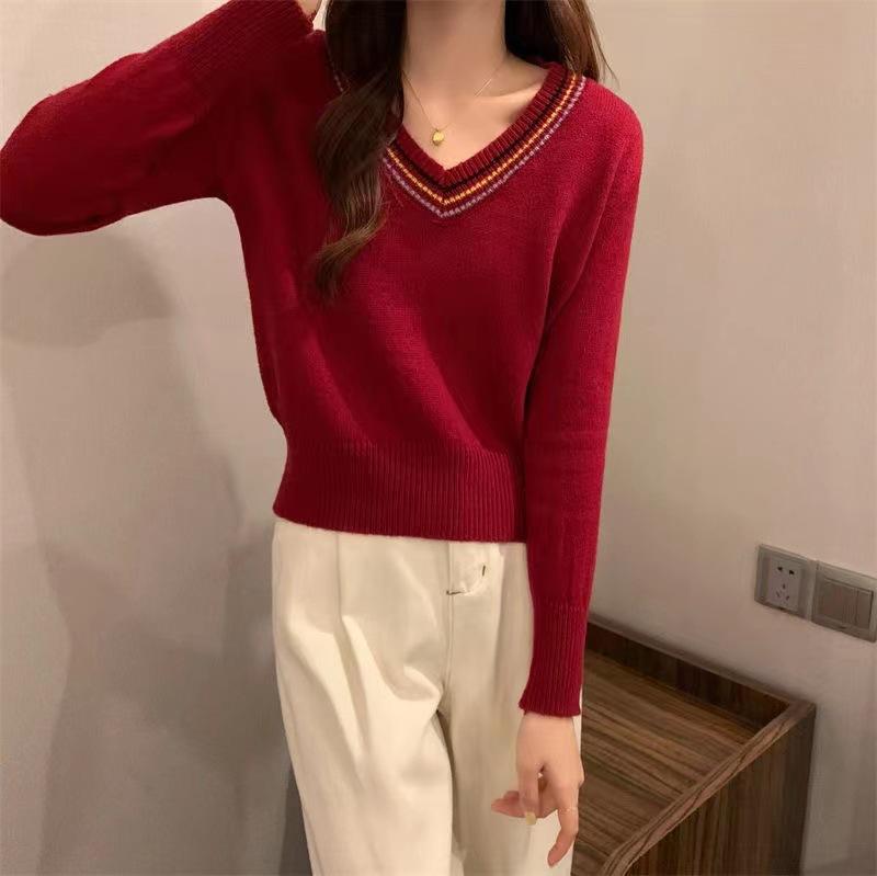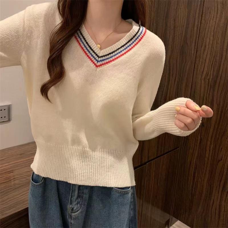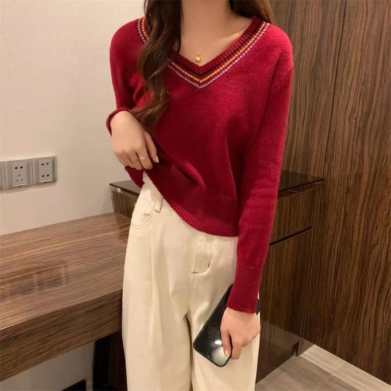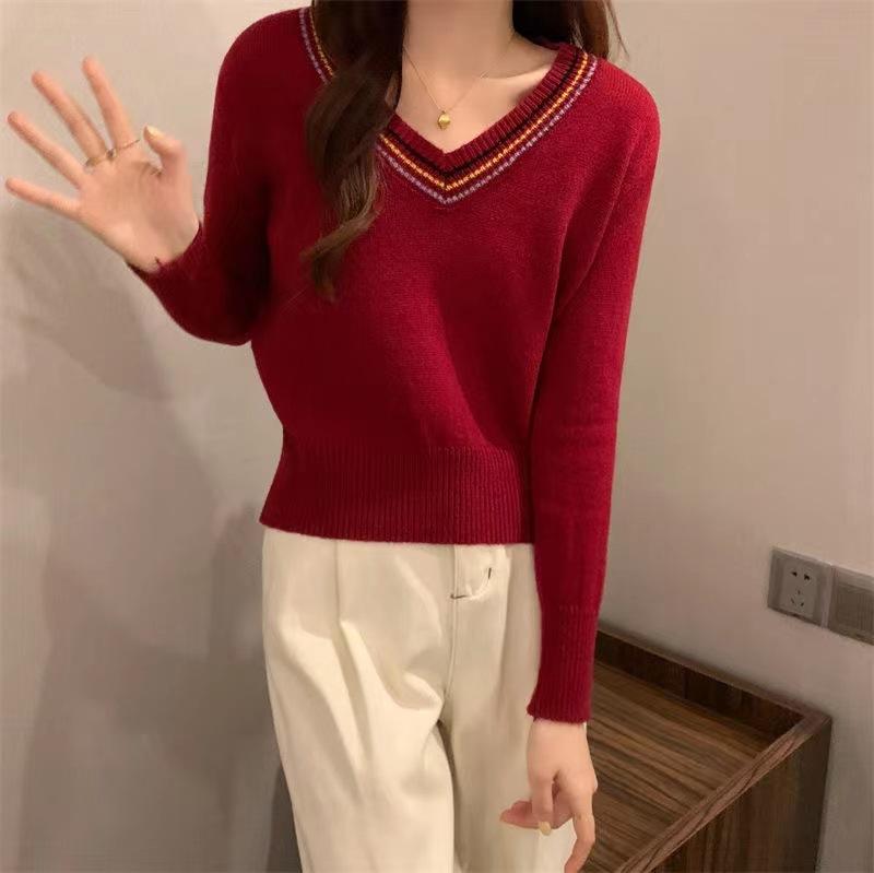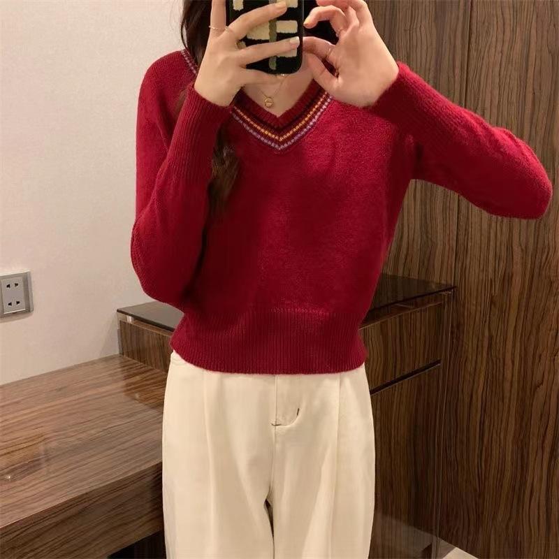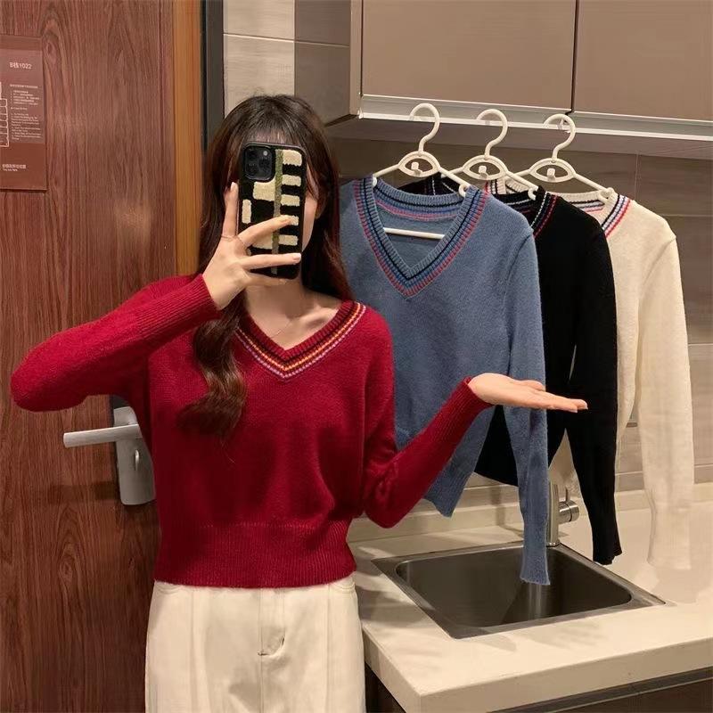 Suéter ajustado de manga larga con cuello en V para mujer, suéter básico ajustado de estilo universitario para otoño e invierno, camiseta de moda para mujer