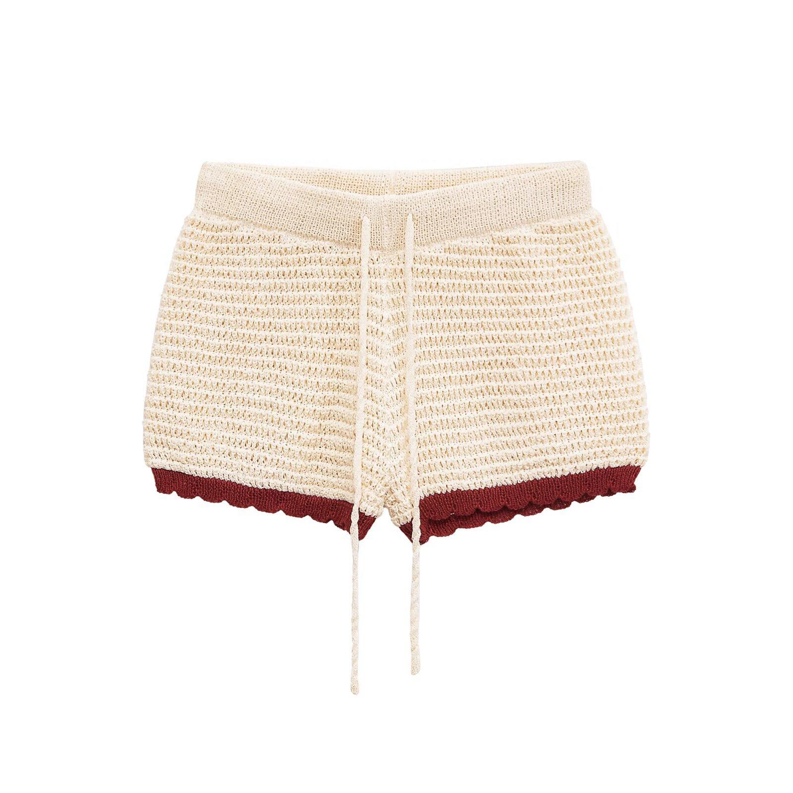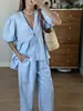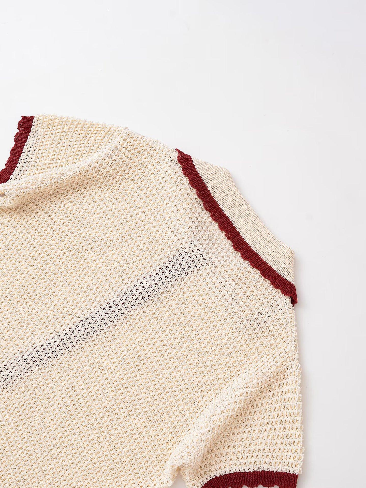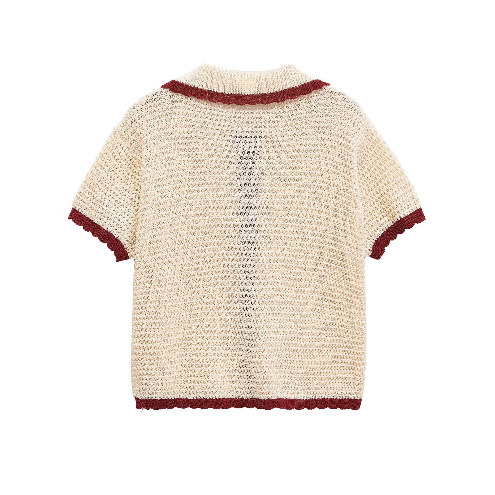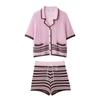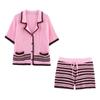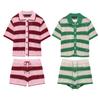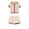 2025 Otoño Nuevo Ropa de Mujer Transfronteriza Europea y Americana Top de Punto de Manga Corta con Cuello POLO + Conjunto de Shorts w08 1239