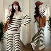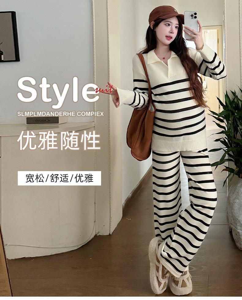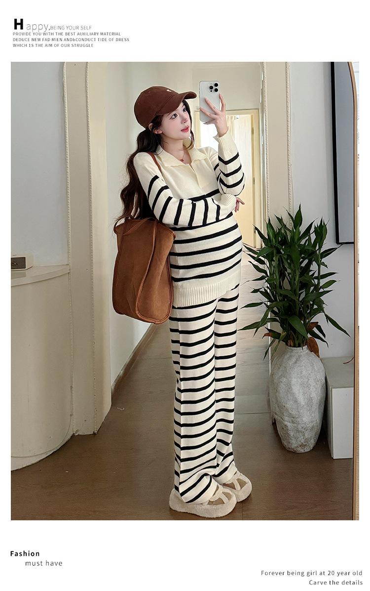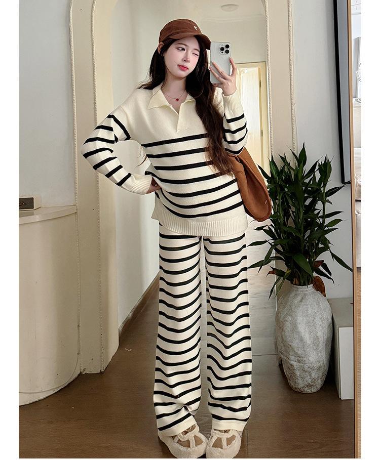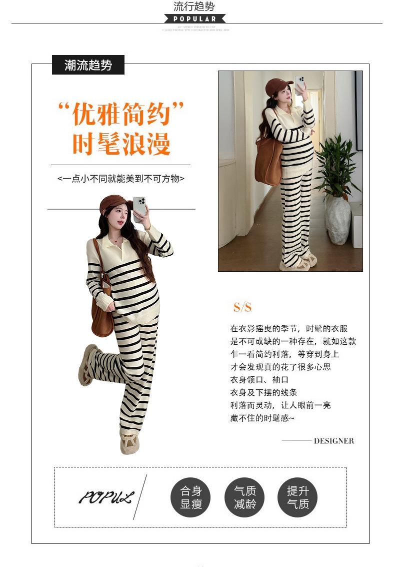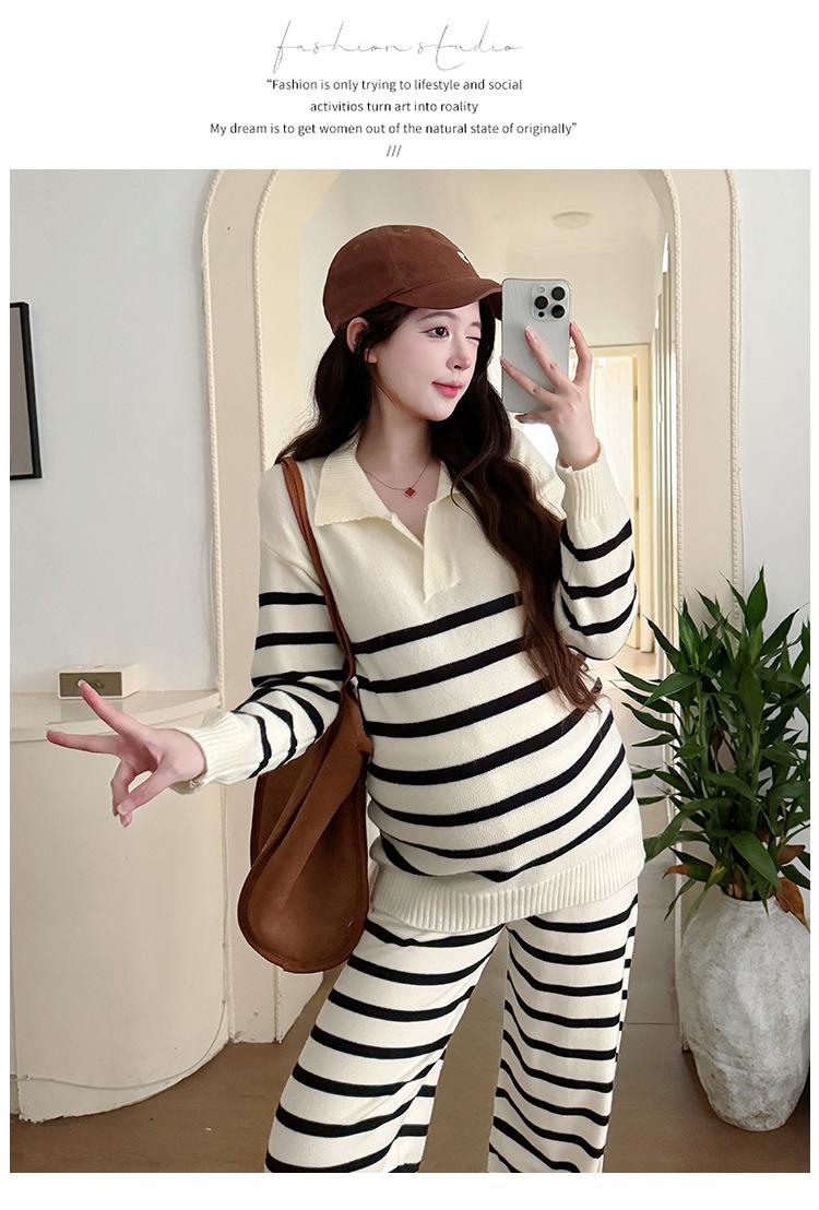 En stock Otoño/Invierno 2025 Nueva Llegada Set de Maternidad Moderno Sencillo Casual Estilo Lazy Set de Maternidad a Rayas