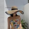 Nuevo Sombrero de Sol de Verano para Exterior Paja de Rafia Sombrero de Señora Tejido Sombrero de Mamá Ala Ancha Cinta Sombrero de Sol Sombrero de Pescador