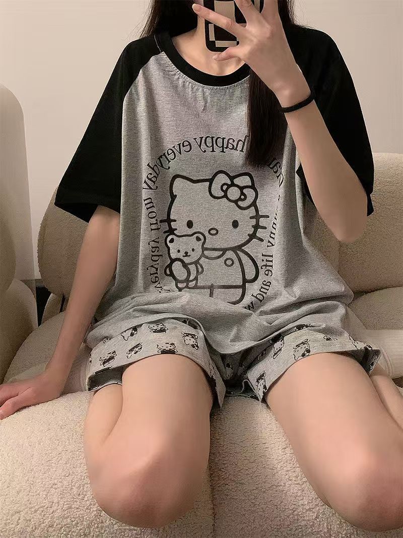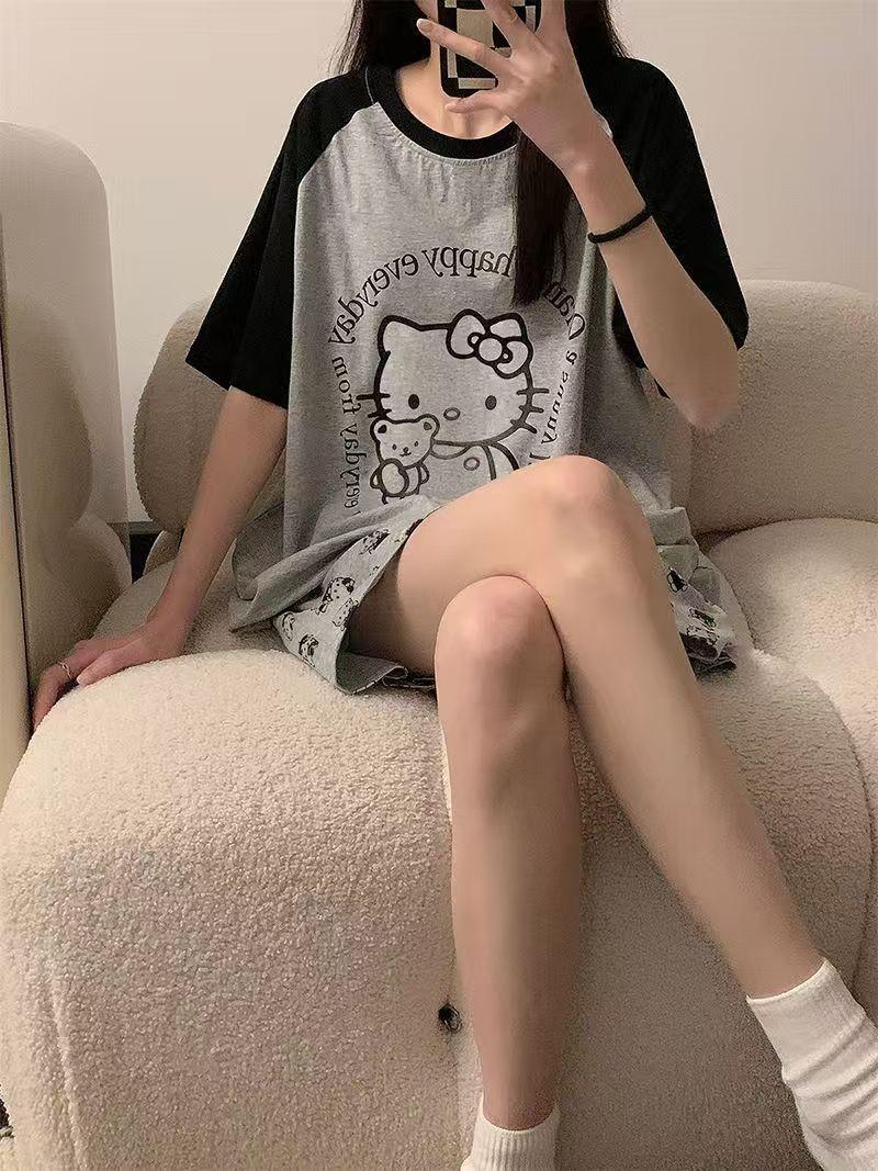 Pijama para Mujer Verano Manga Corta Dibujos Animados Casual 2025 Nuevo Talla Grande Sencillo Dulce Niña Ropa para el Hogar Traje Ropa Exterior