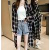 Nueva Camisa a Cuadros de Manga Larga Estilo Retro Hong Kong para Mujer, Camisa Suelta Holgada de Largo Medio, Abrigo Top