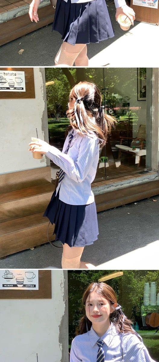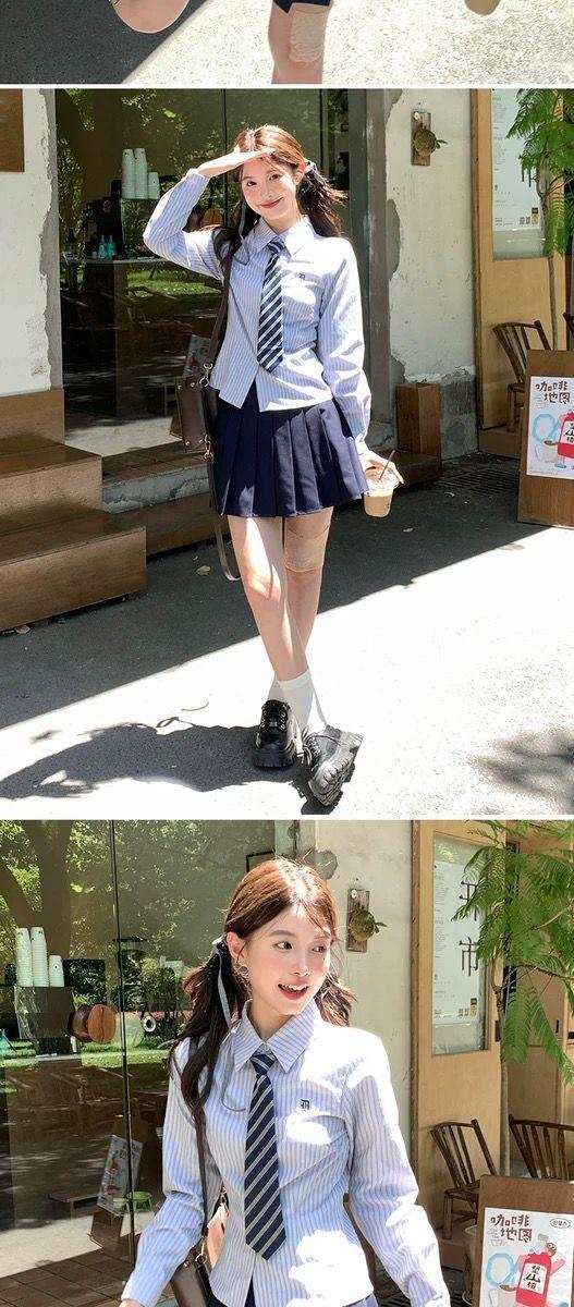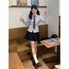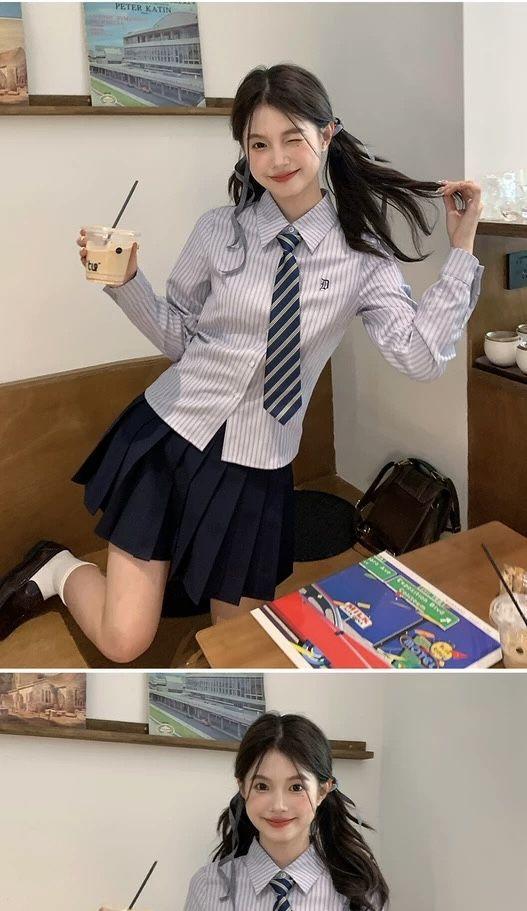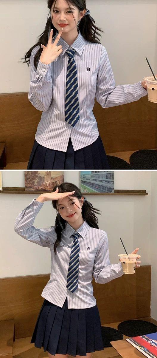 Uniforme JK Bordado de Rayas Azules Camisa Slim-fit Cintura Ajustada para Mujer Slim-fit Manga Larga Top de Primavera 2024 Principios de Otoño Nuevo