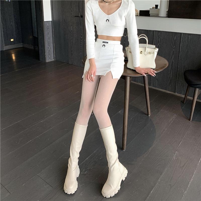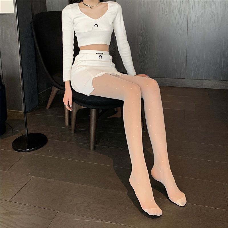 Onda Punto JK Seda Blanca Lunares Mariposa Medias de Seda Negras Medias de Red para Mujer Medias de Seda Finas Sexy para Mujer Seda Fina de Verano Anti-enganches