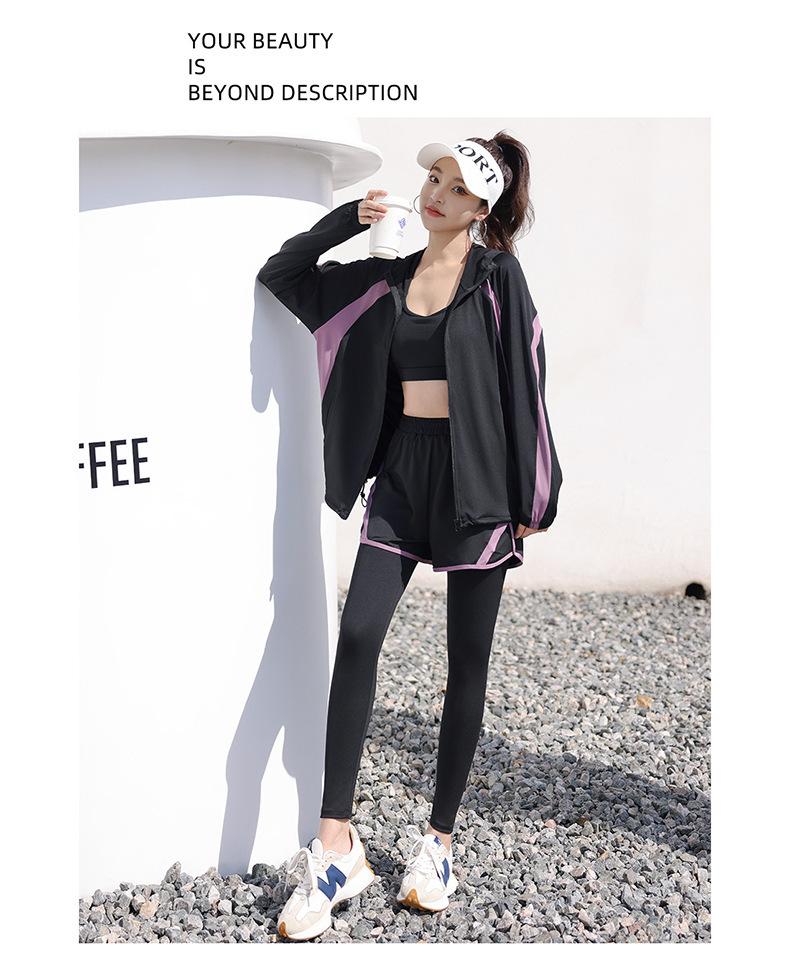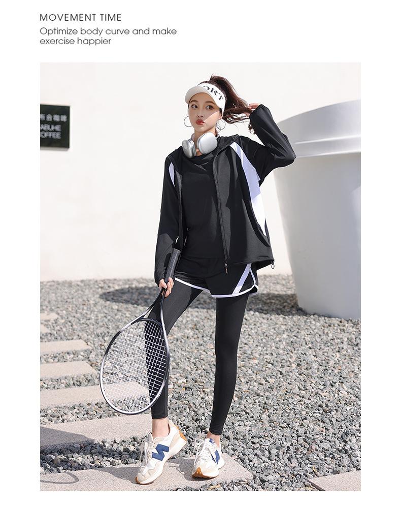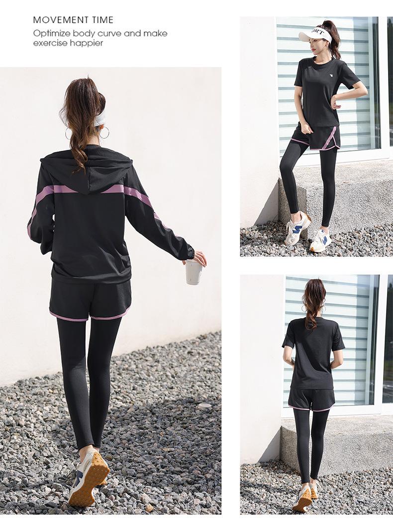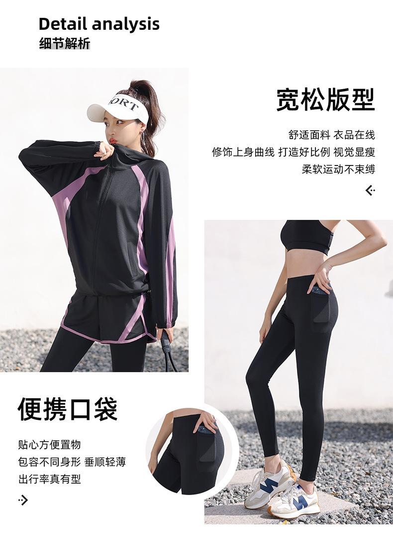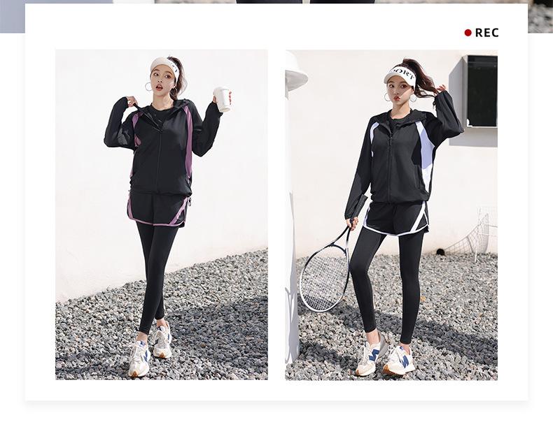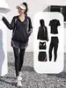 Ropa de yoga de talla grande transfronteriza para mujer, nuevo conjunto de cinco piezas con capucha de manga larga para correr al aire libre, fitness, ropa deportiva para chica gordita