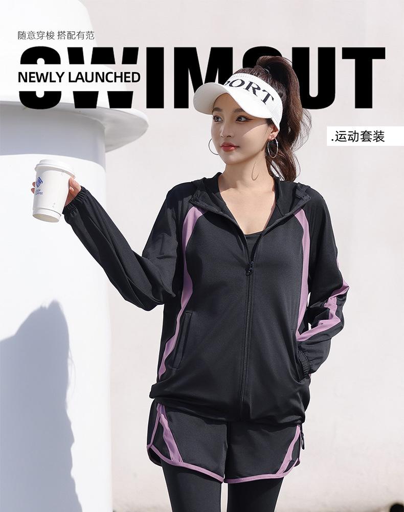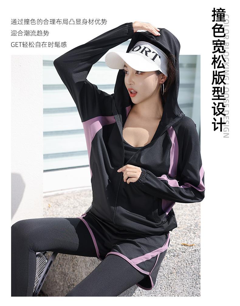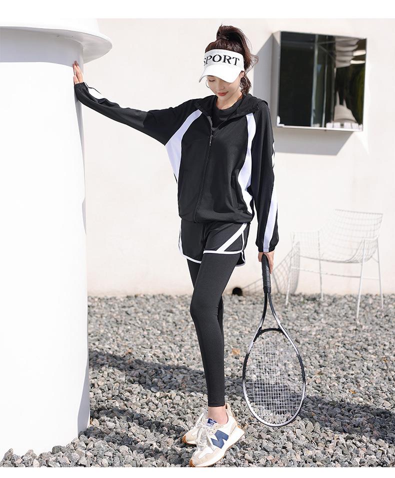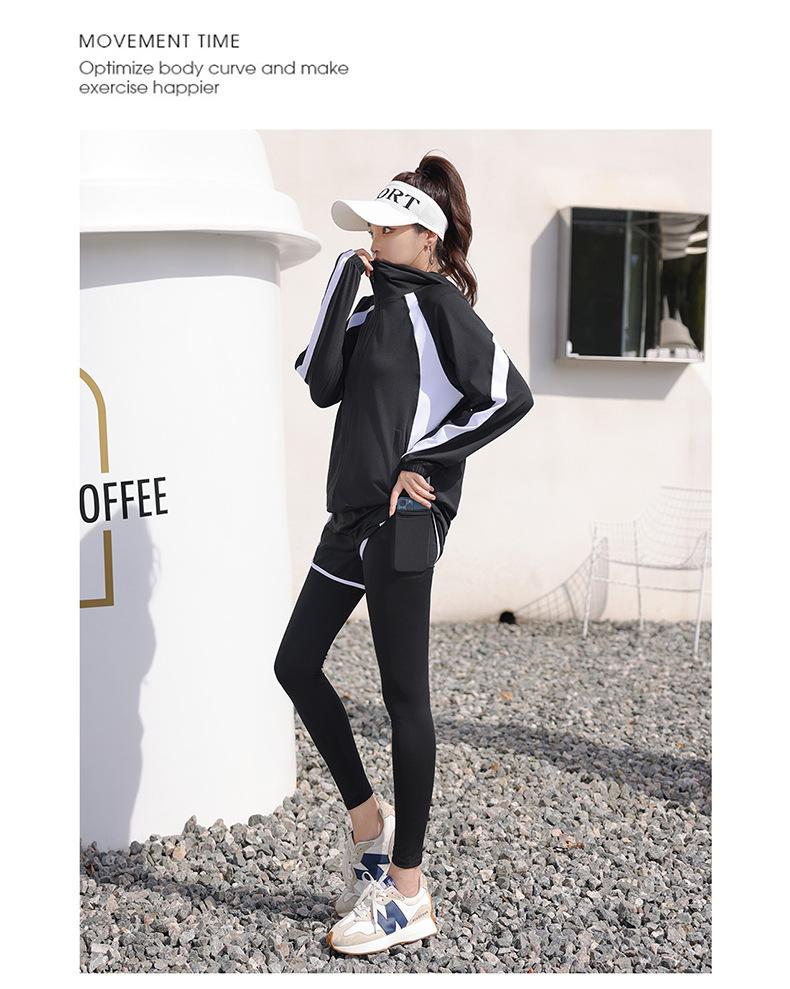 Ropa de yoga de talla grande transfronteriza para mujer, nuevo conjunto de cinco piezas con capucha de manga larga para correr al aire libre, fitness, ropa deportiva para chica gordita