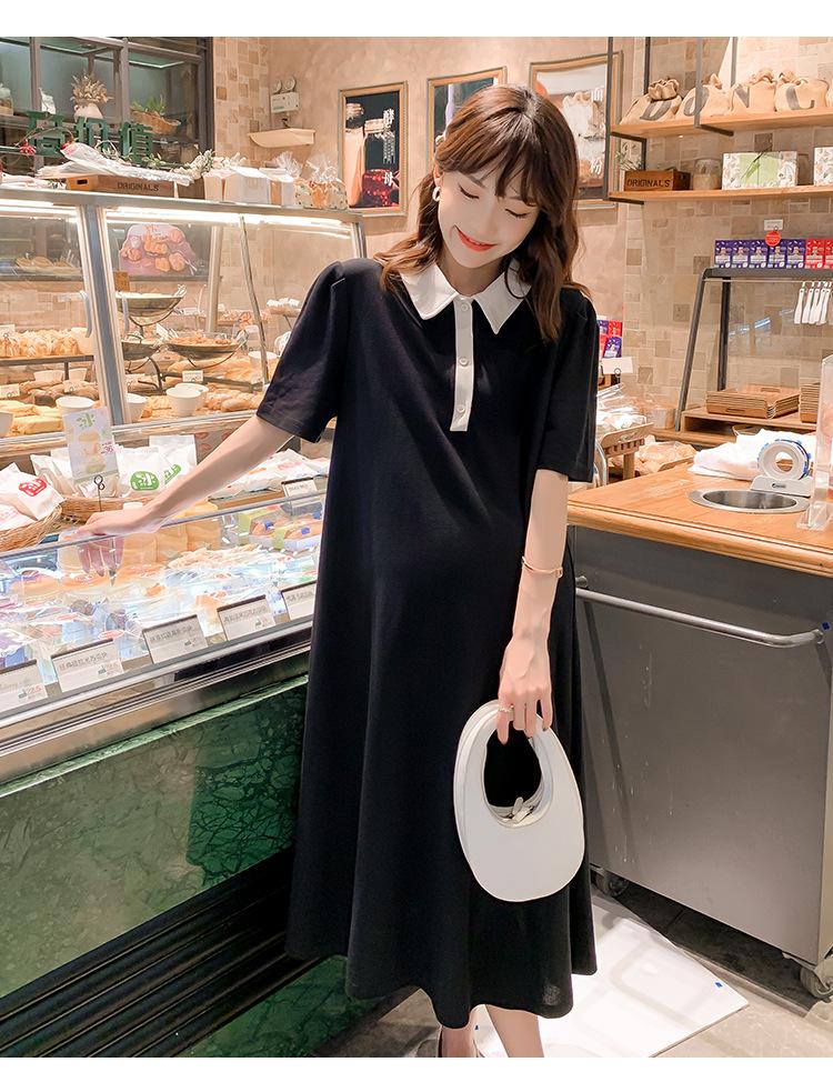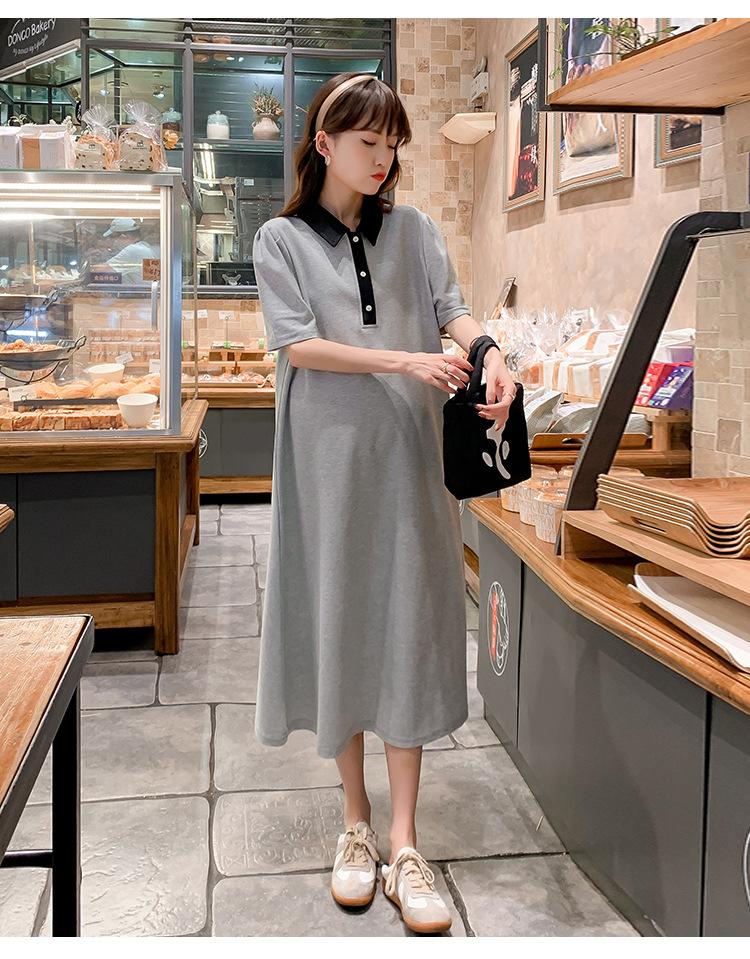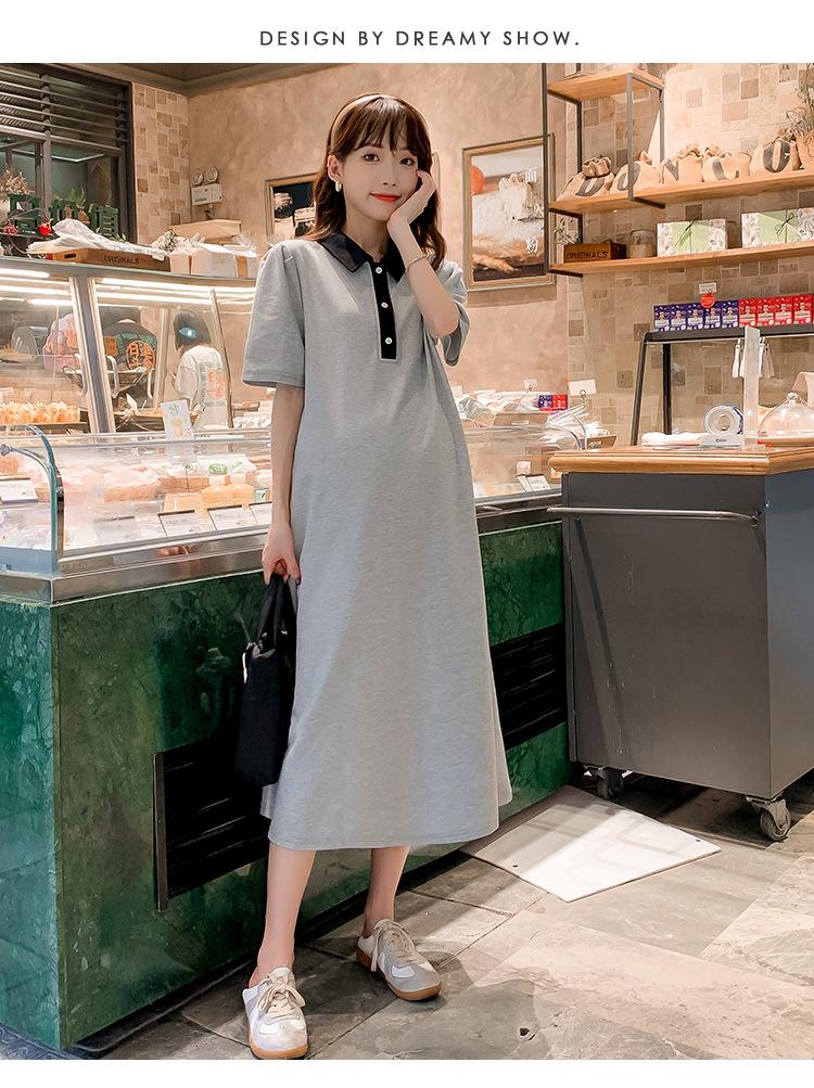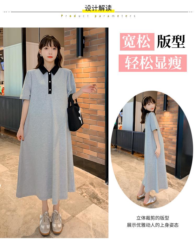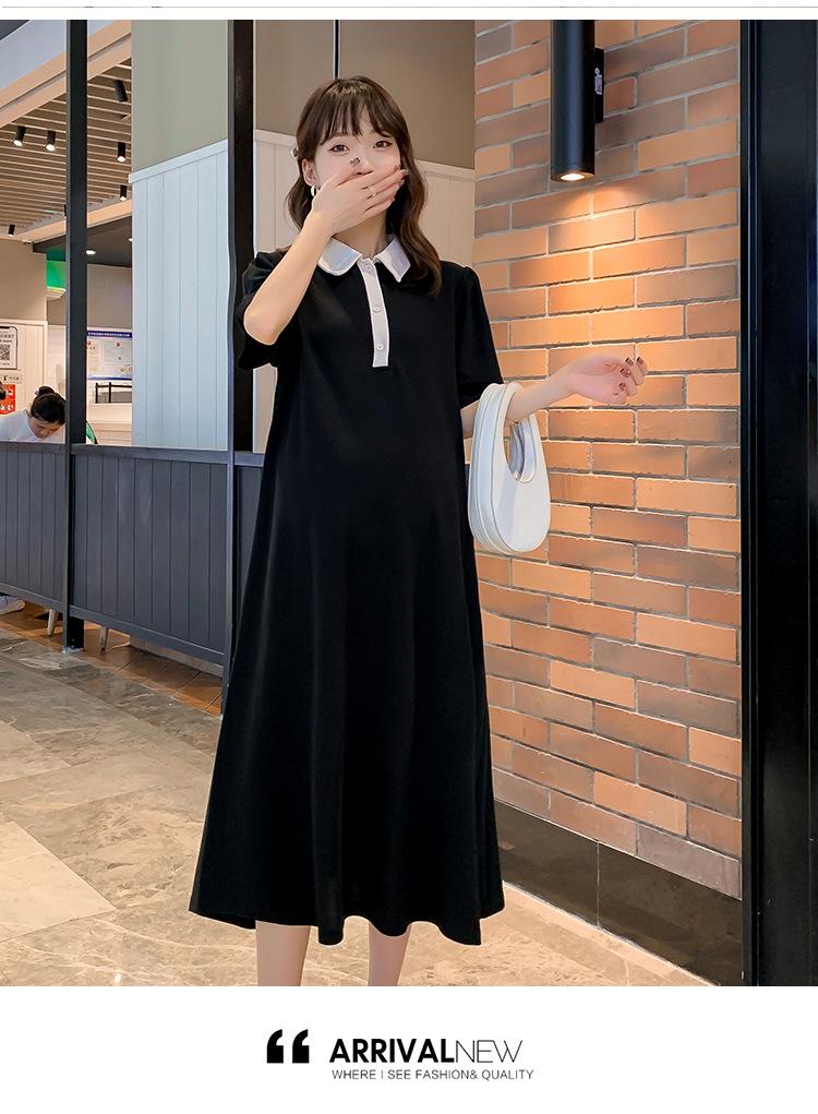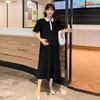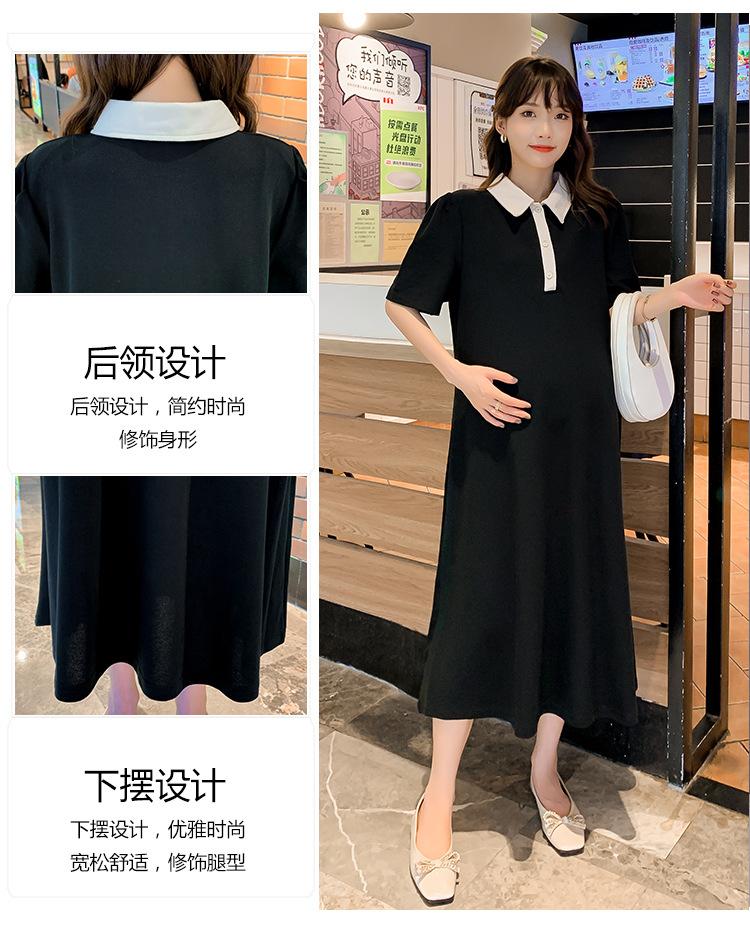 Vestido de mujer embarazada verano nuevo estilo coreano moderno largo medio solapa suelto talla grande vestido de mujer embarazada