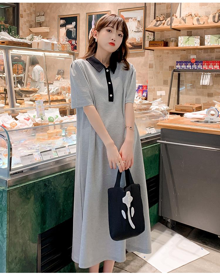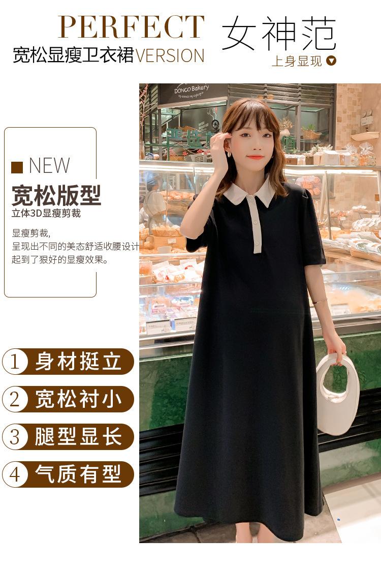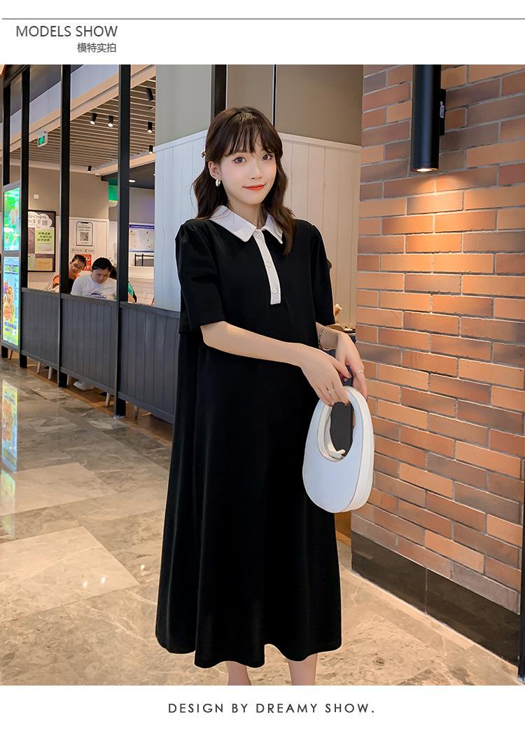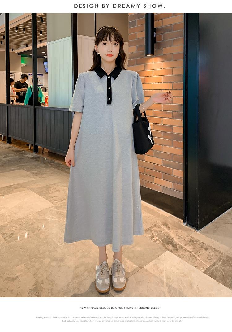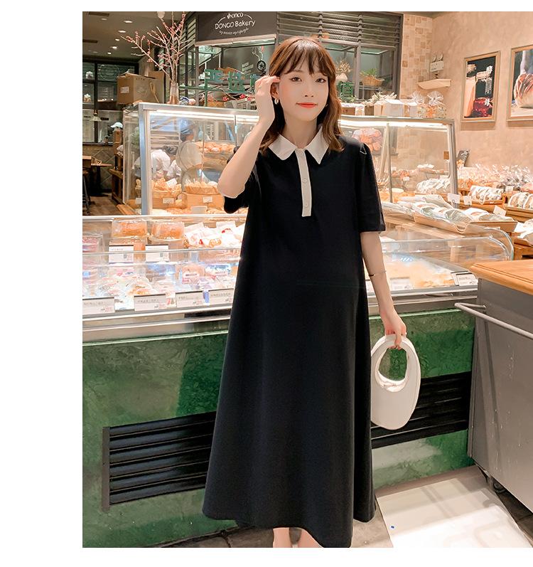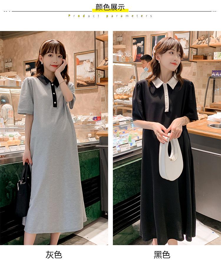 Vestido de mujer embarazada verano nuevo estilo coreano moderno largo medio solapa suelto talla grande vestido de mujer embarazada
