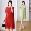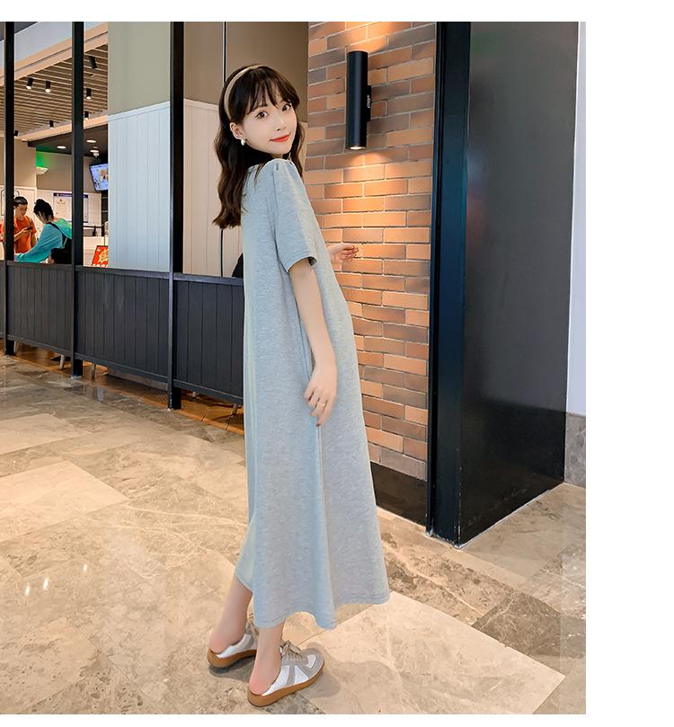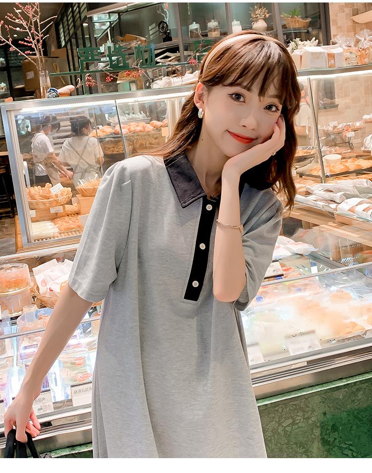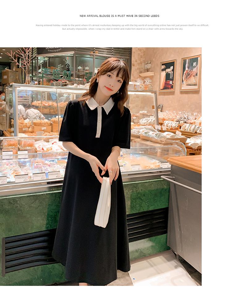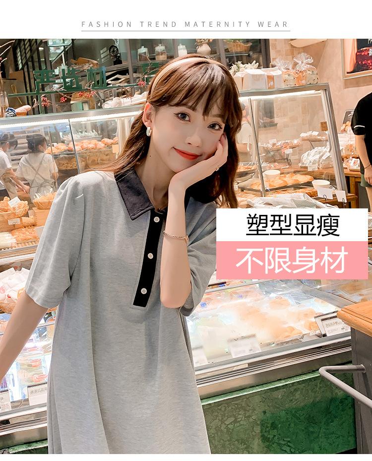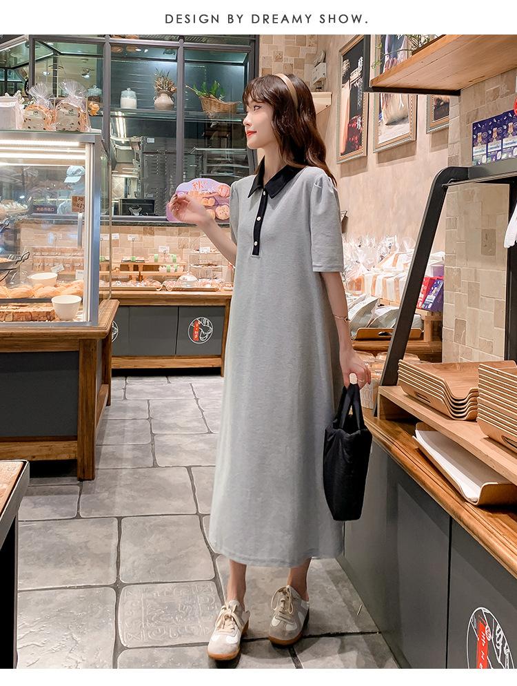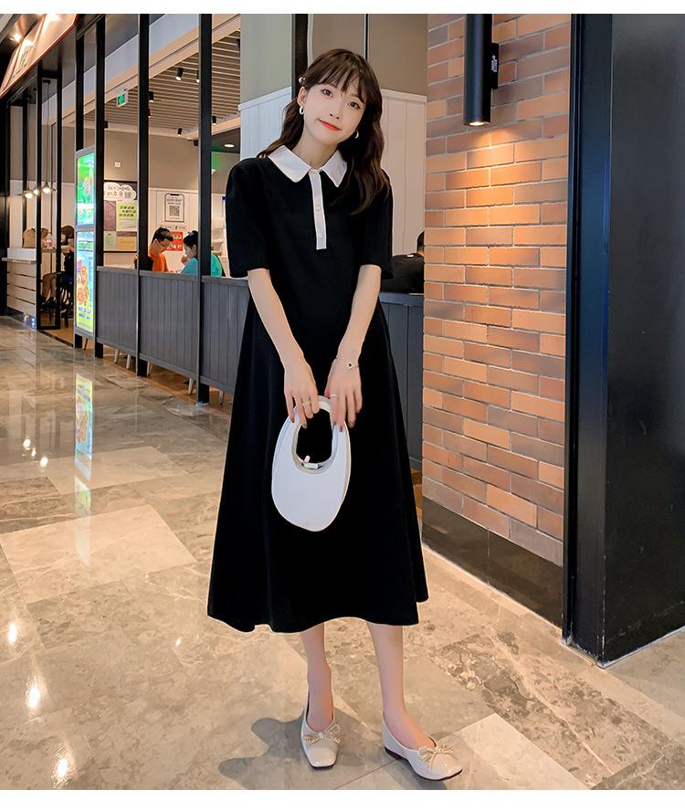 Vestido de mujer embarazada verano nuevo estilo coreano moderno largo medio solapa suelto talla grande vestido de mujer embarazada