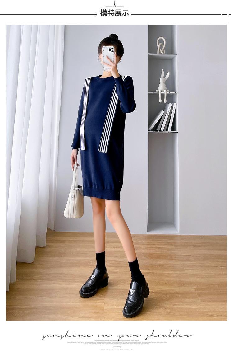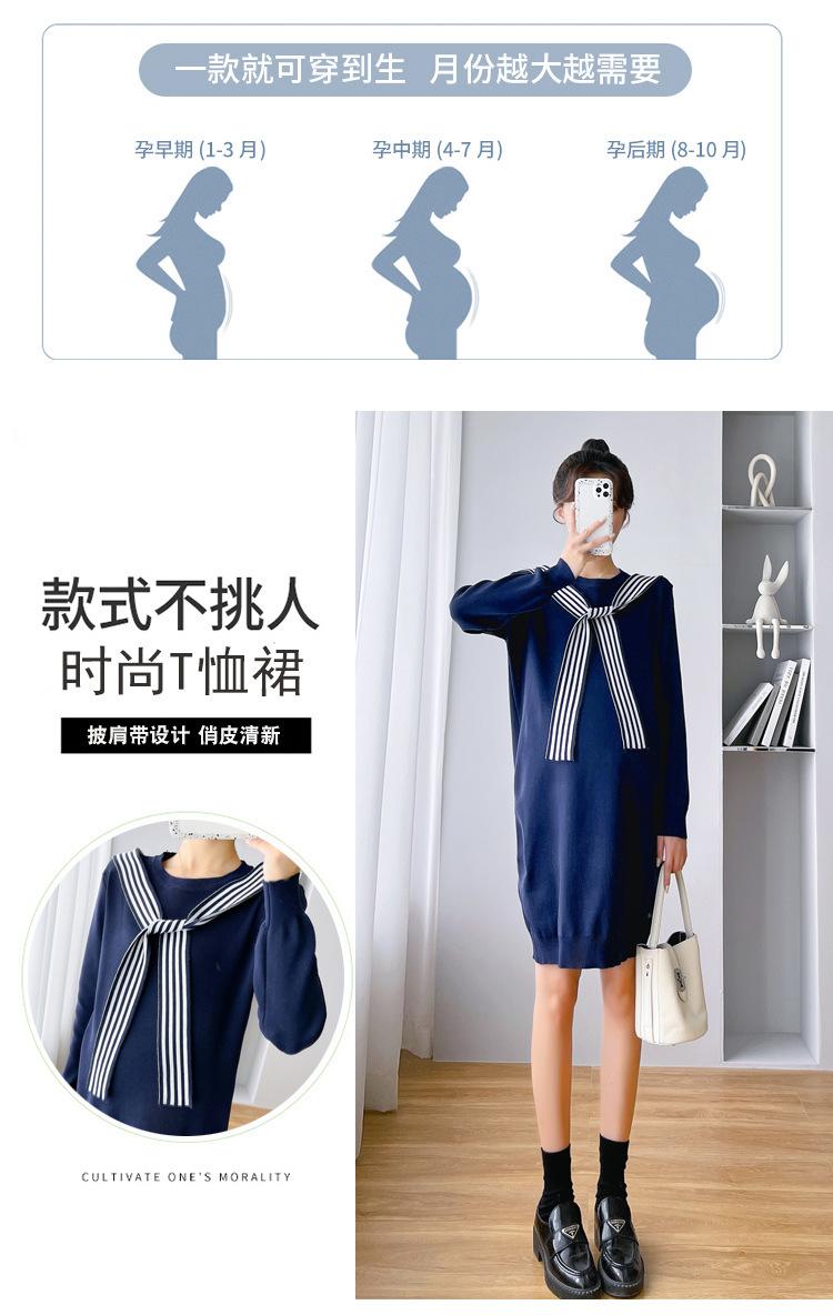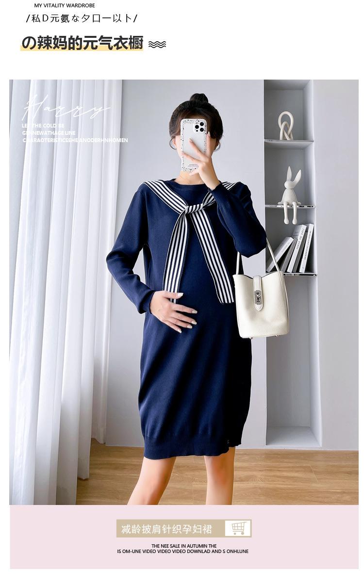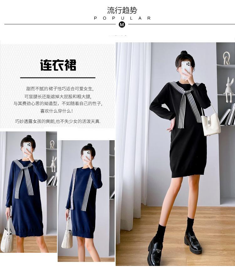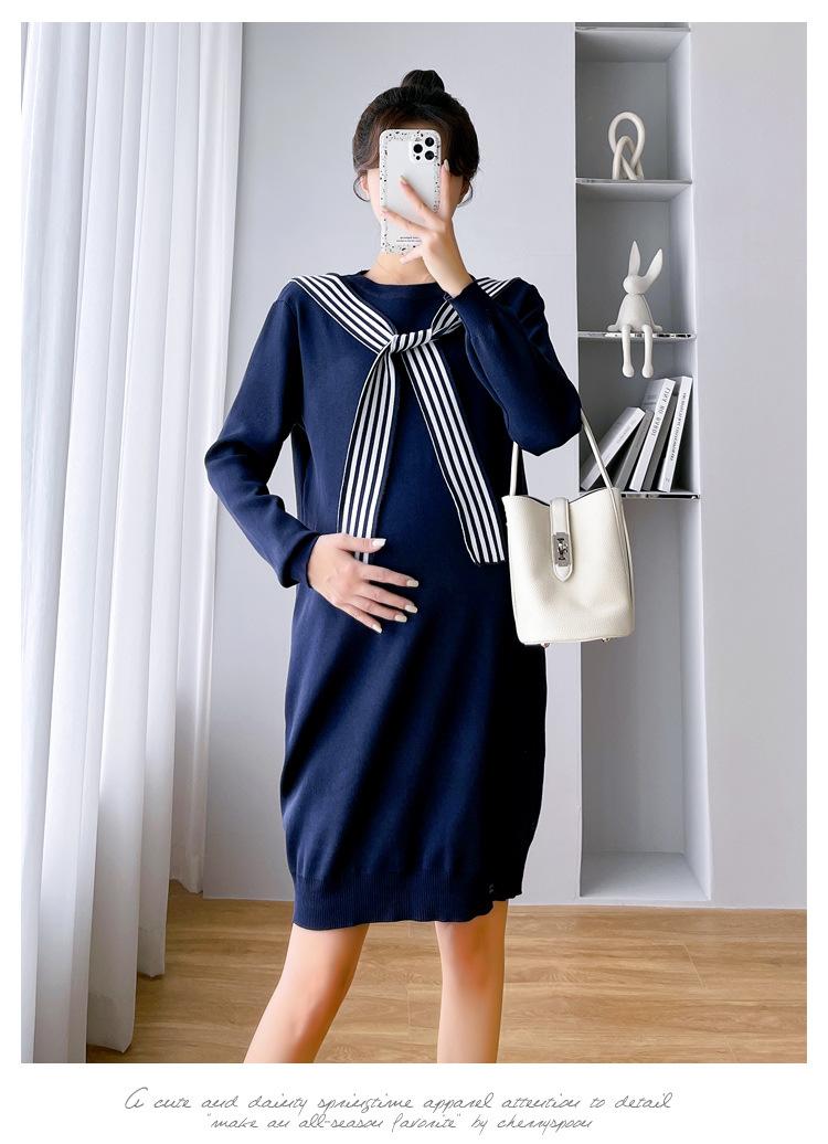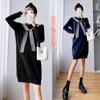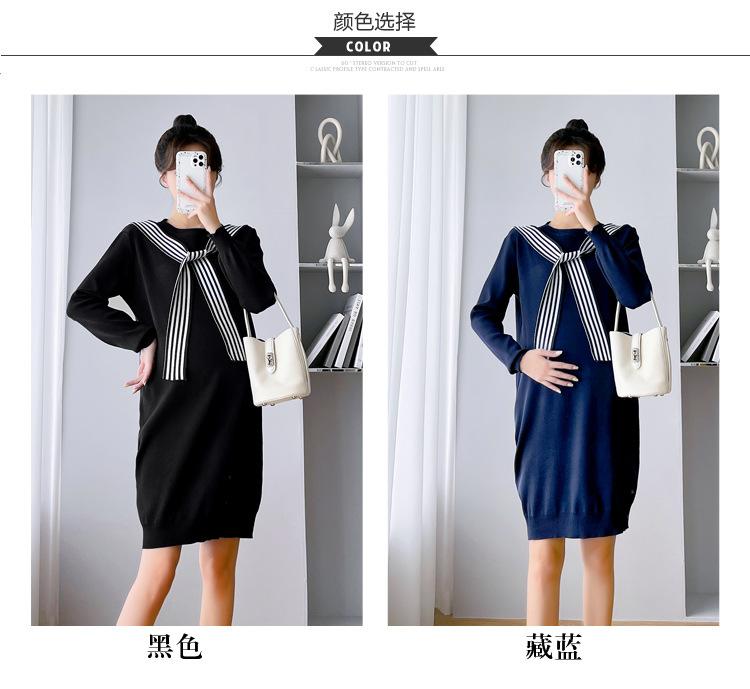 Vestido de Maternidad Otoño e Invierno Nuevo Estilo Coreano Moda Lazo Suelto Adelgazante Talla Grande Vestido de Lactancia para Mujeres Embarazadas