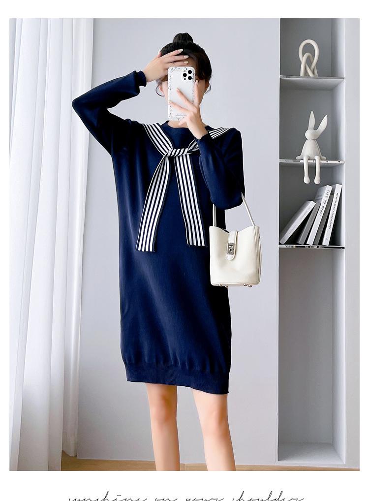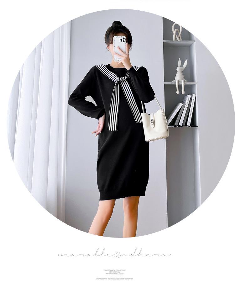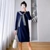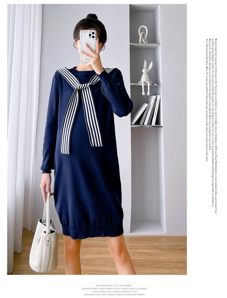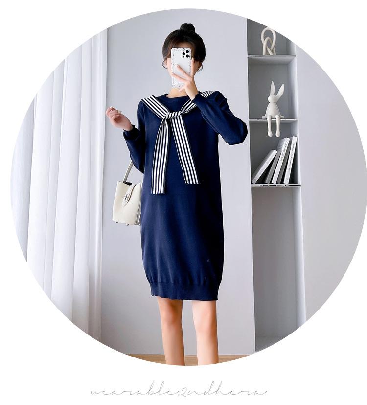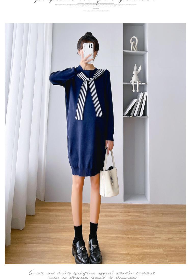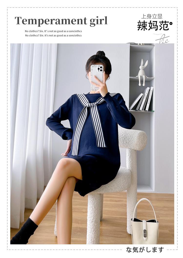 Vestido de Maternidad Otoño e Invierno Nuevo Estilo Coreano Moda Lazo Suelto Adelgazante Talla Grande Vestido de Lactancia para Mujeres Embarazadas