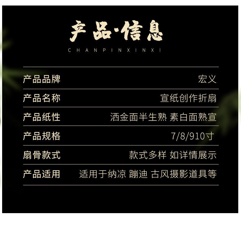 Abanico plegable de papel Xuan de 10 pulgadas estilo chino plegable en blanco estilo antiguo abanico para pintura caligrafía superficie de abanico publicitario venta al por mayor