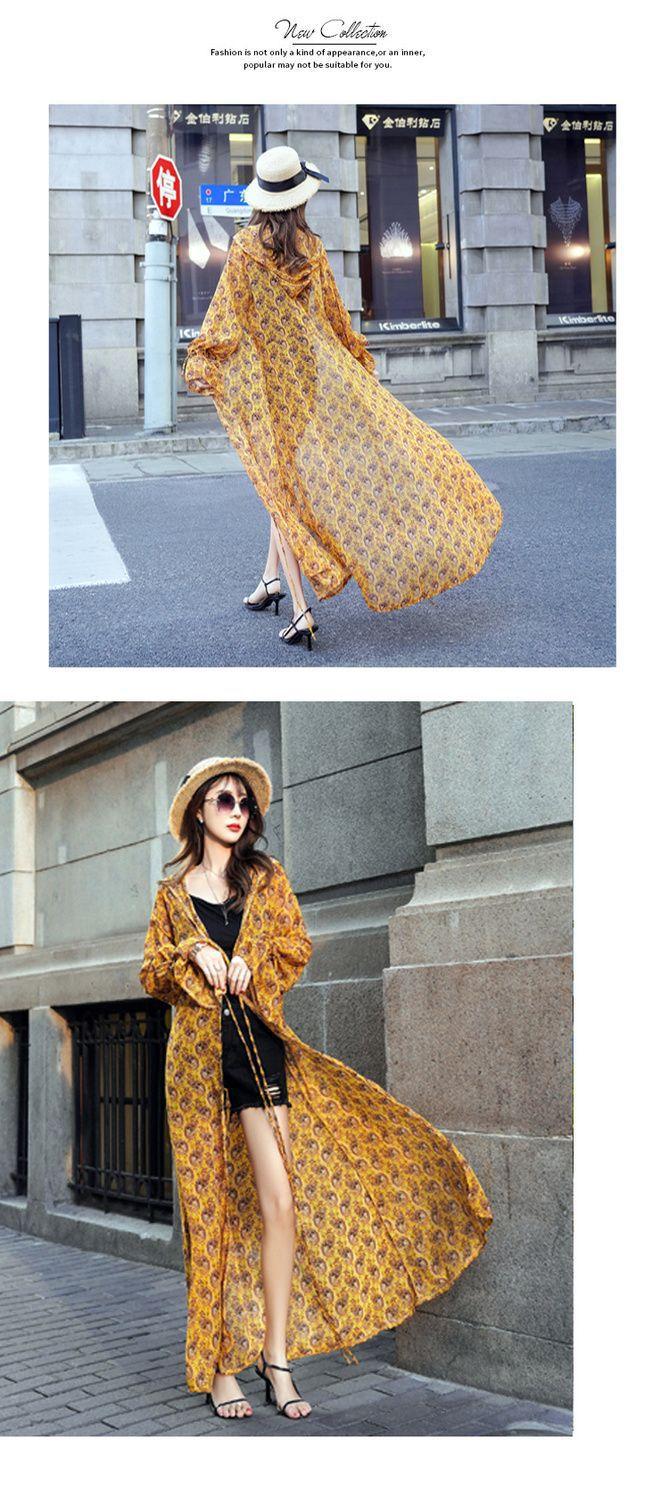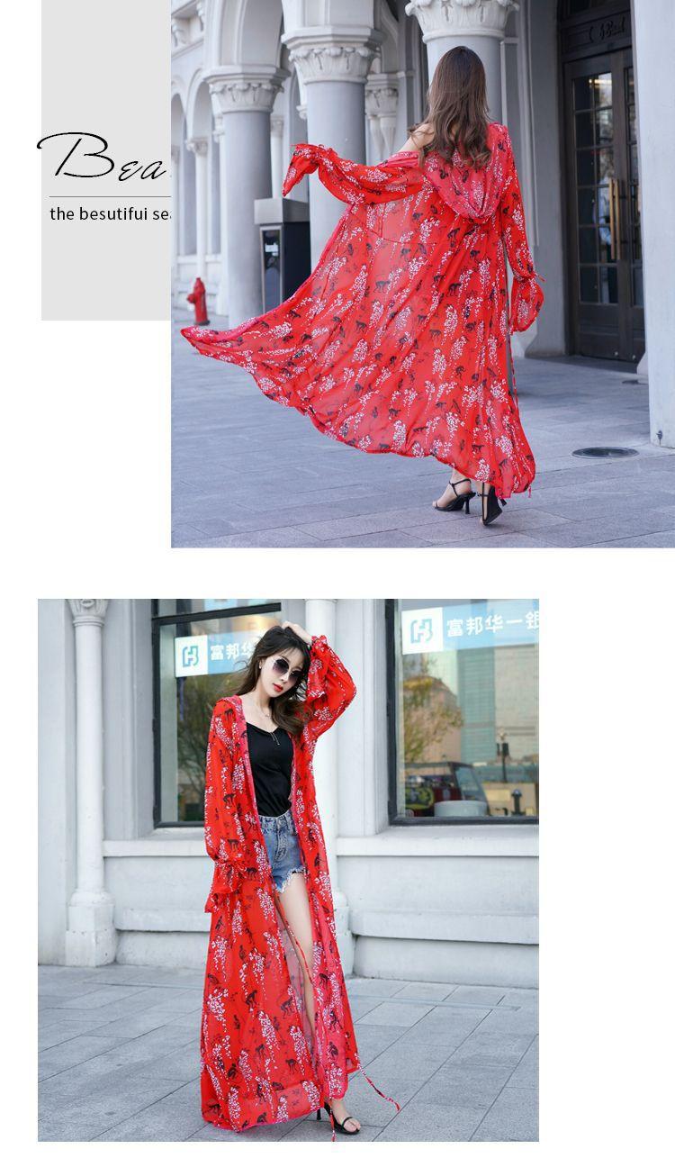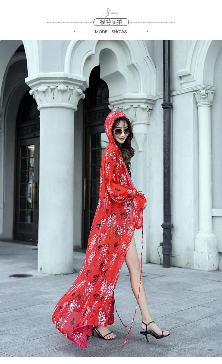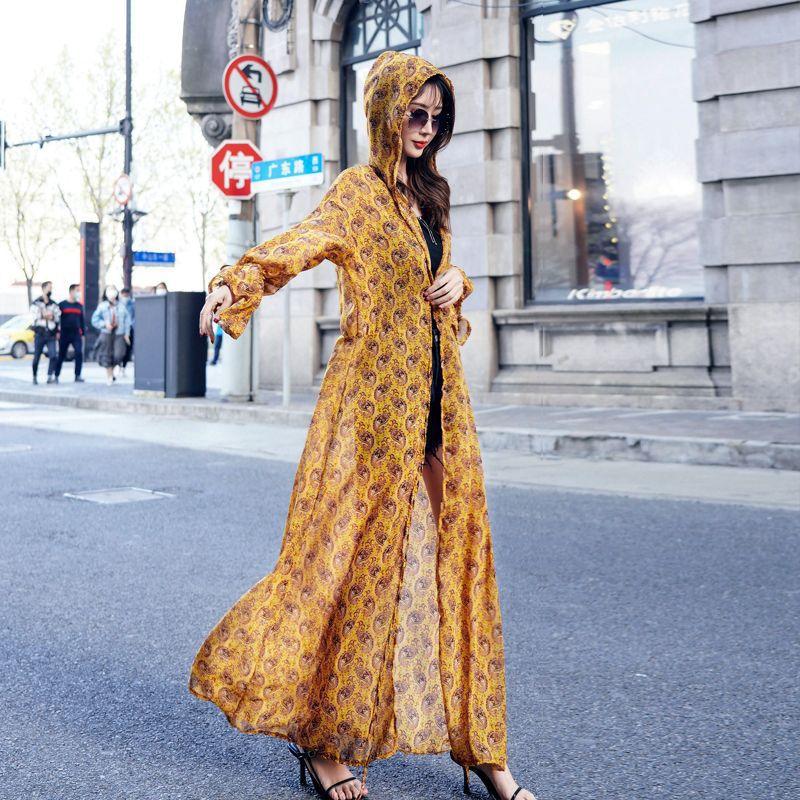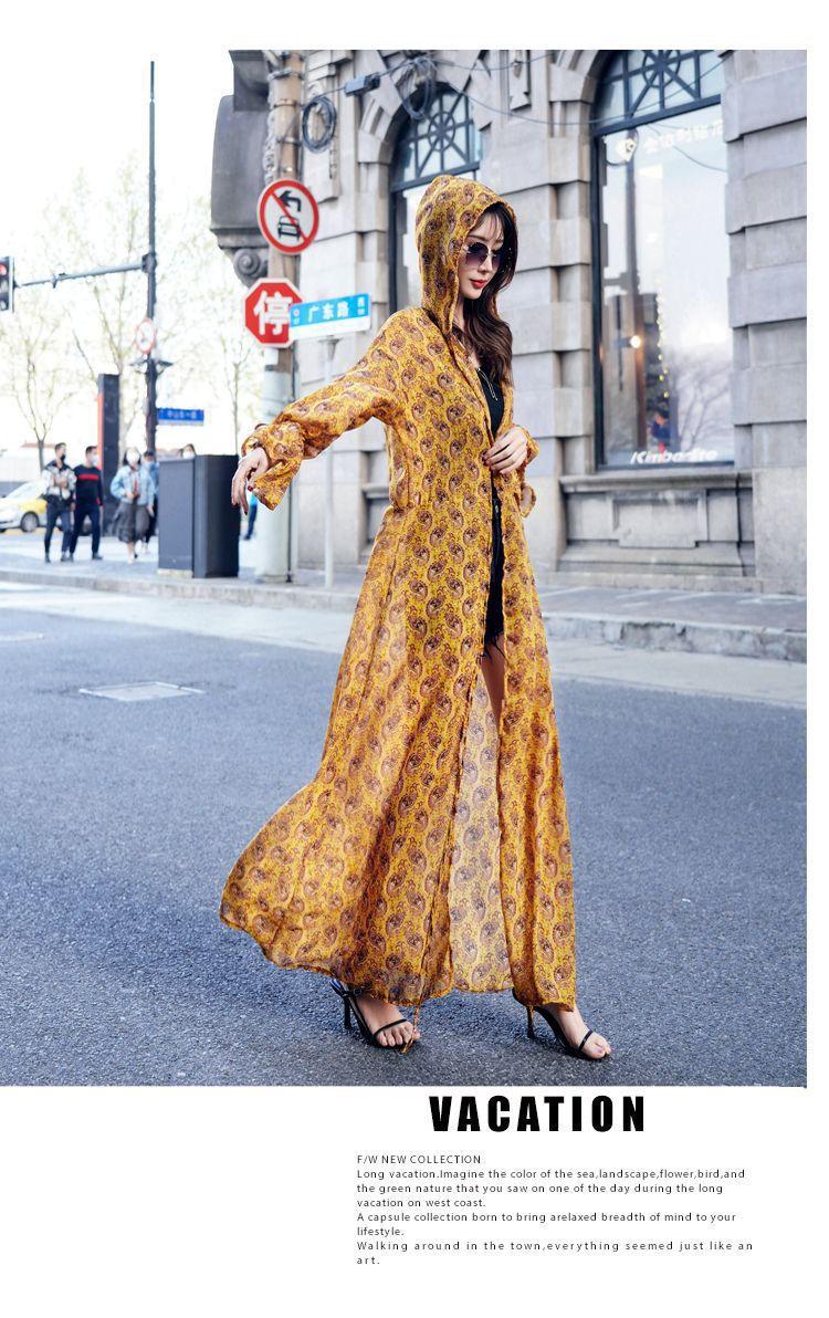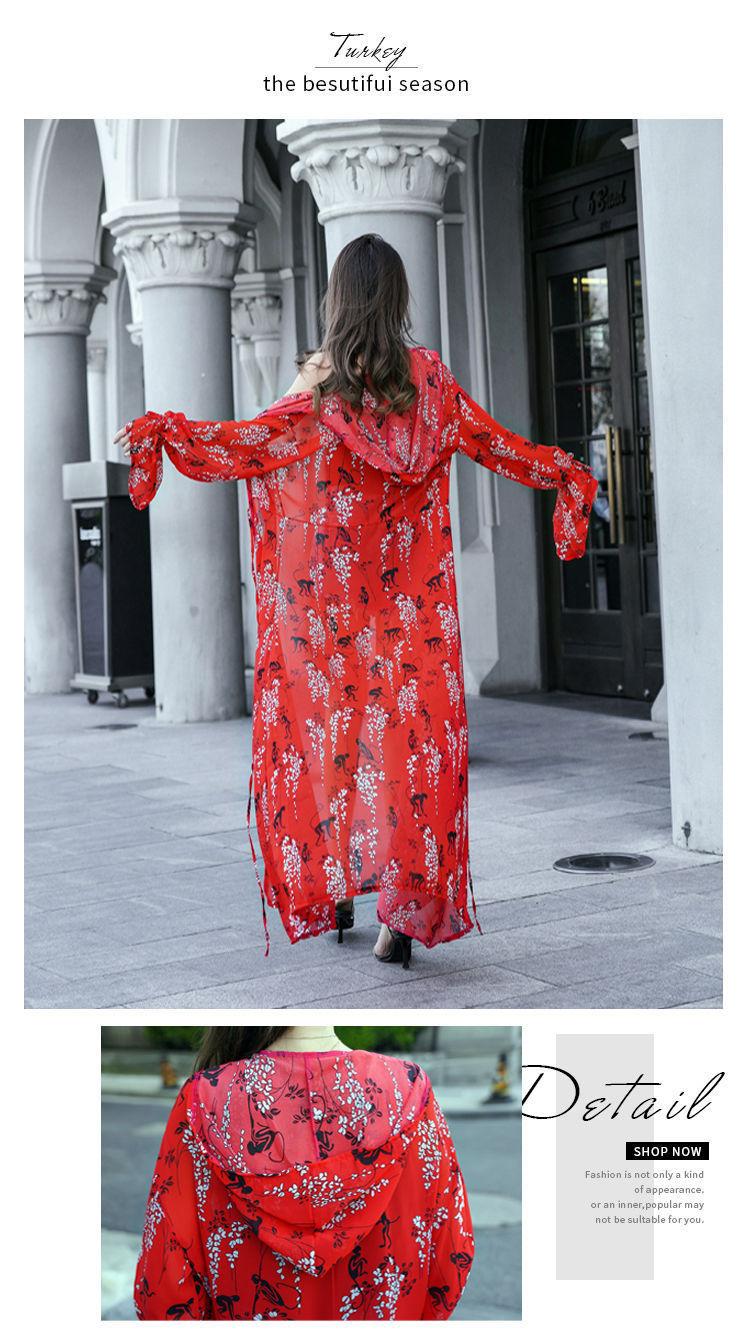 Cárdigan de Chifón Estampado de Playa Verano con Capucha para Mujer Ropa Transpirable de Protección Solar Chal Elegante Capa Exterior Súper Larga