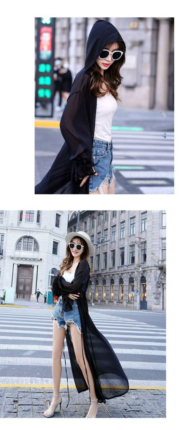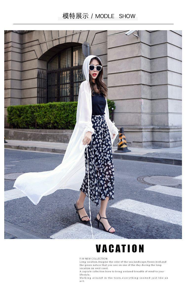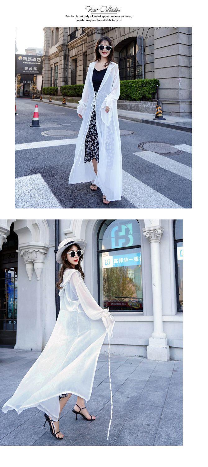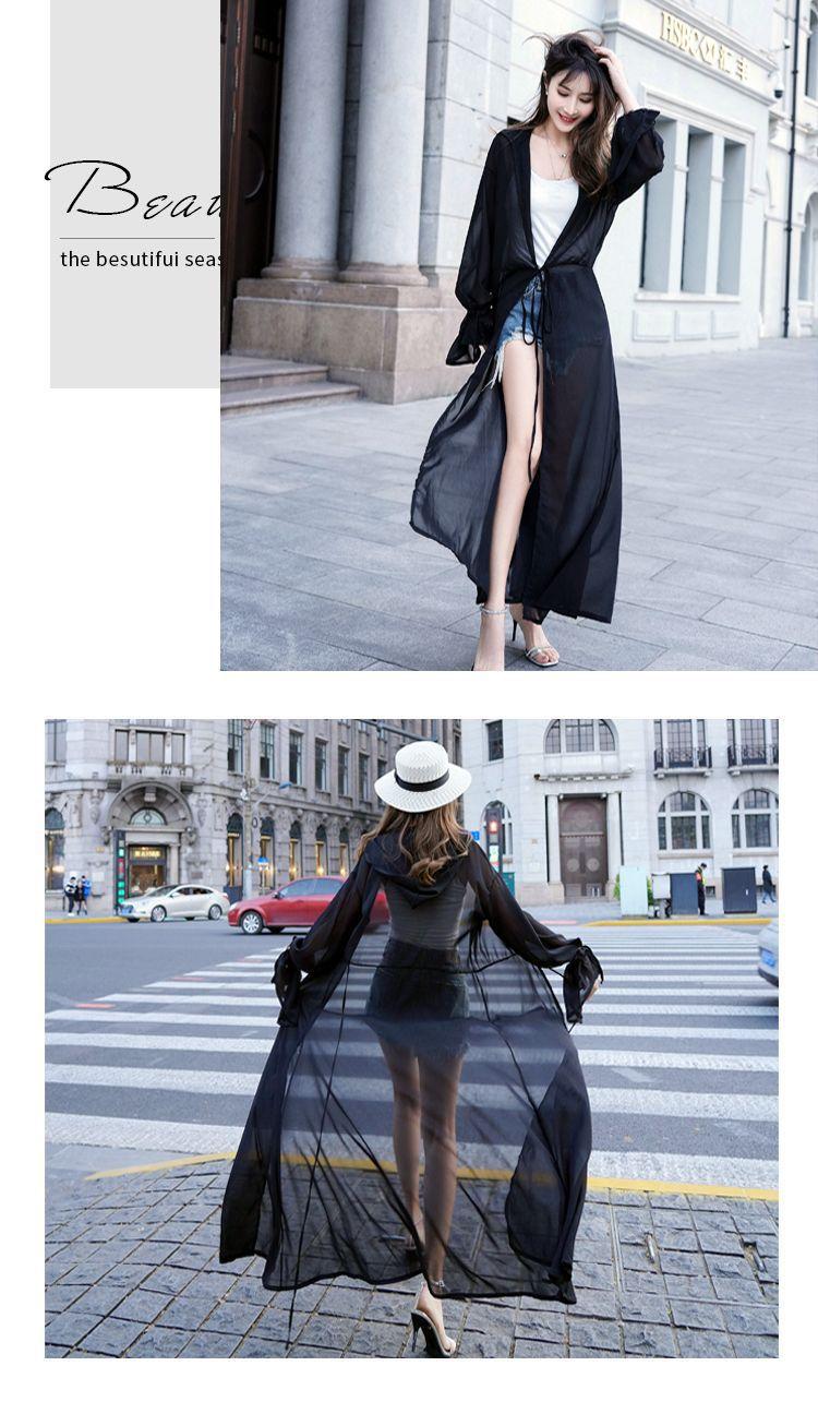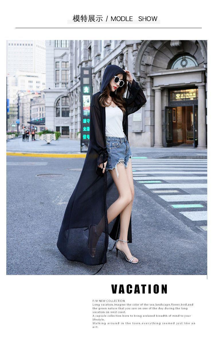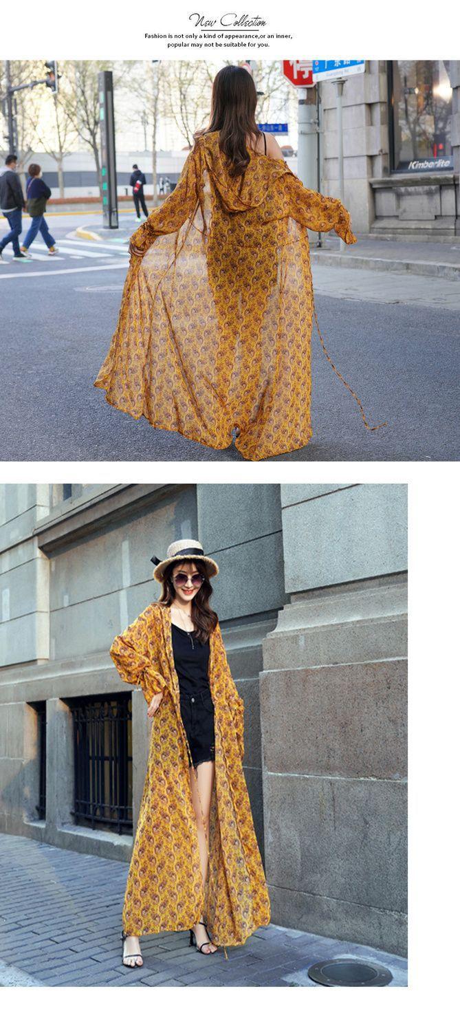 Cárdigan de Chifón Estampado de Playa Verano con Capucha para Mujer Ropa Transpirable de Protección Solar Chal Elegante Capa Exterior Súper Larga