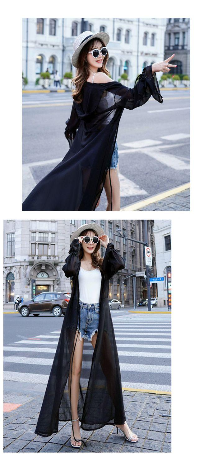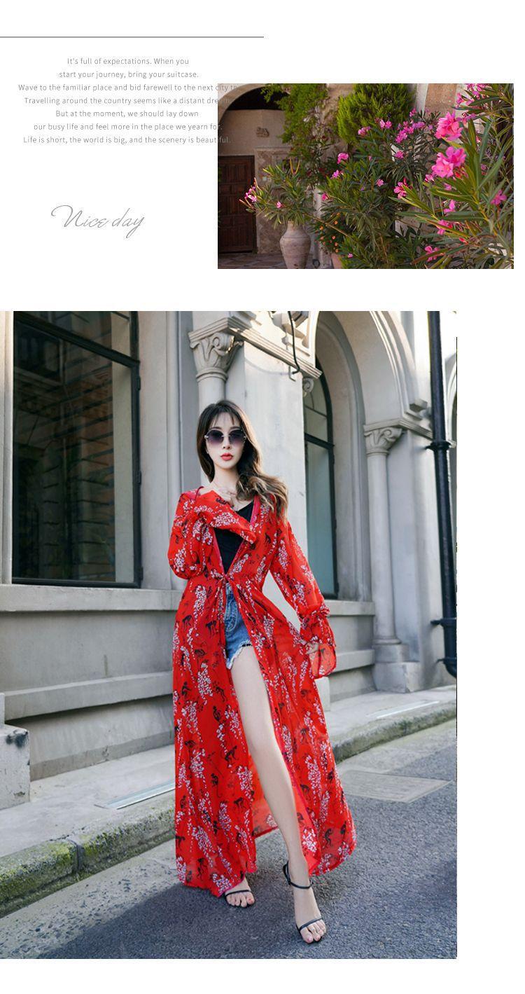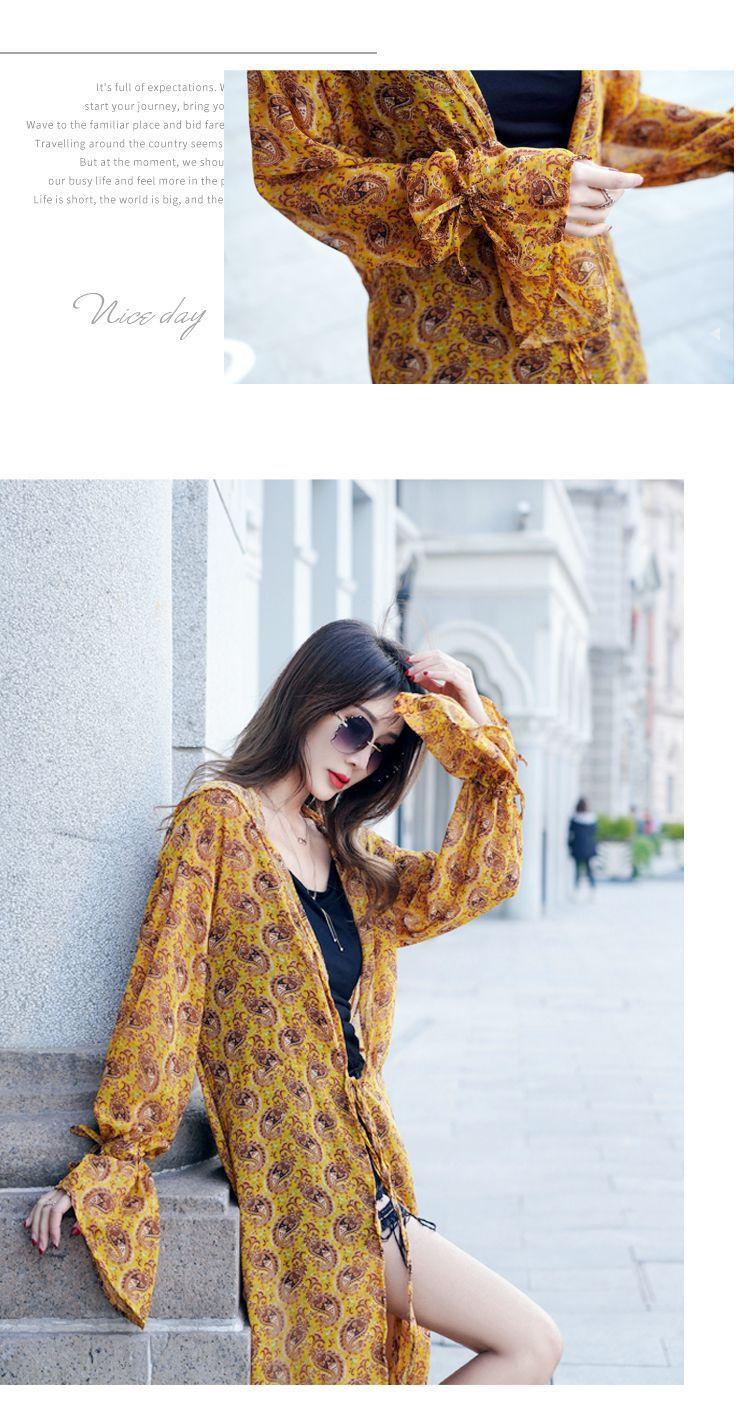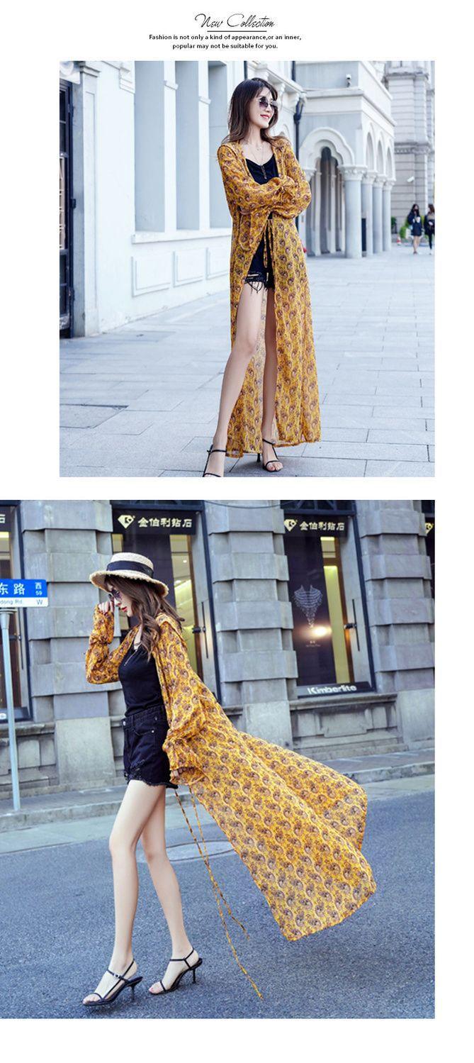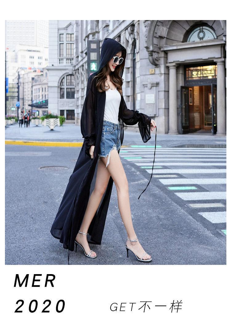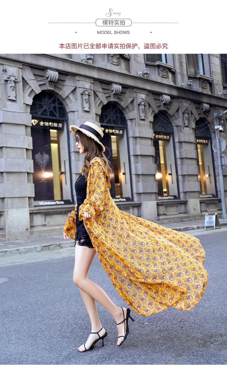 Cárdigan de Chifón Estampado de Playa Verano con Capucha para Mujer Ropa Transpirable de Protección Solar Chal Elegante Capa Exterior Súper Larga