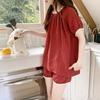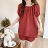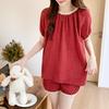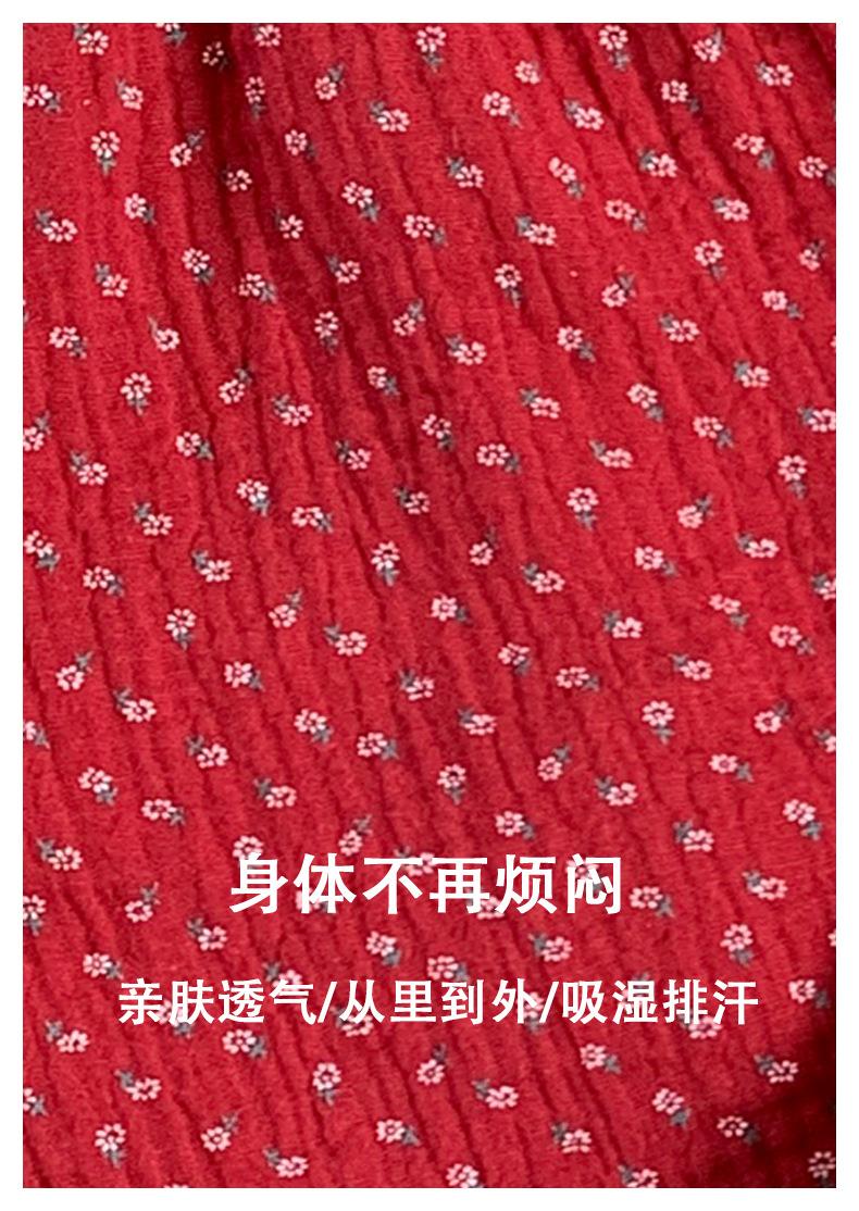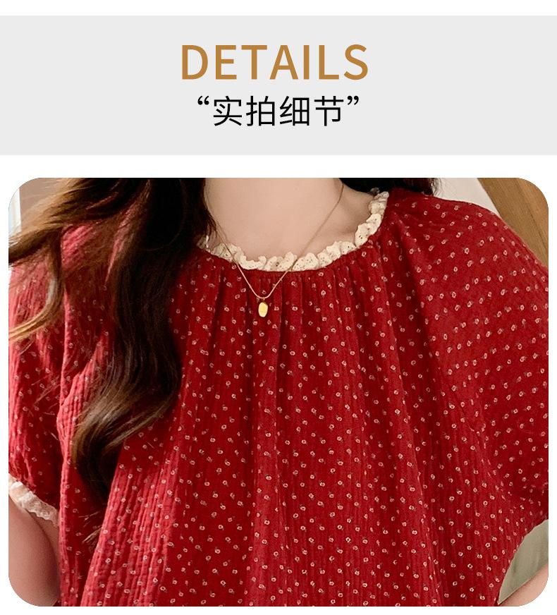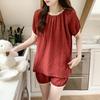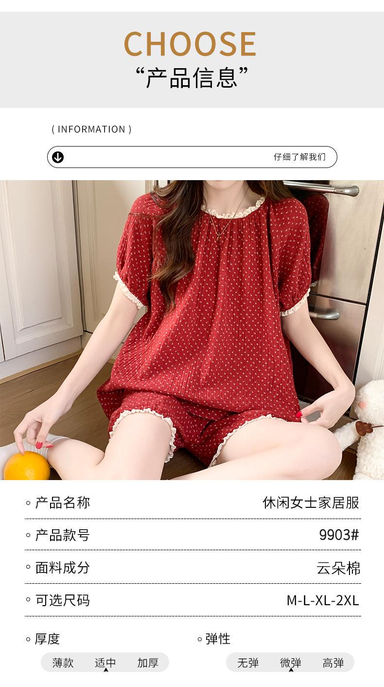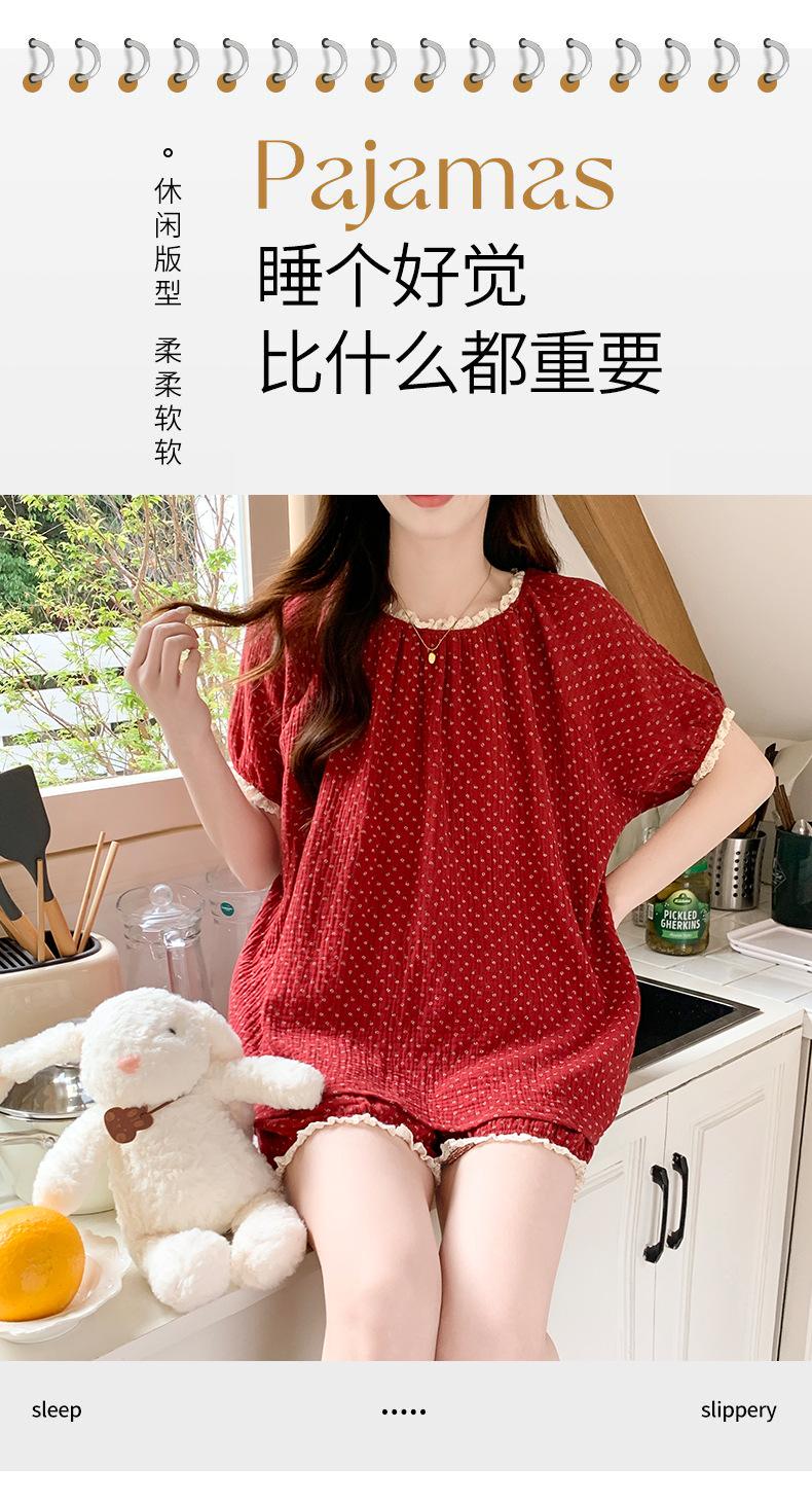 Pijama Floral Rojo de Manga Corta para Mujer Verano Delgado Algodón Nube Borde Estilo Princesa Nuevo Ropa para el Hogar Set de Dos Piezas