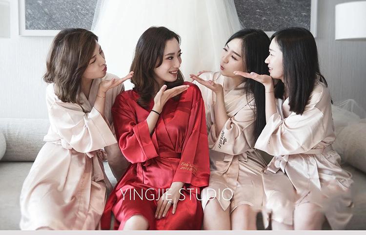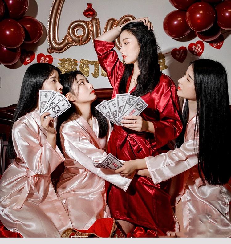 Polvo Bronceador de Color Puro Transfronterizo Dama de Honor Dama de Honor Boda Bata de Vestir Maquillaje Bata Camisón Señoras Novia Novia