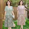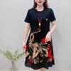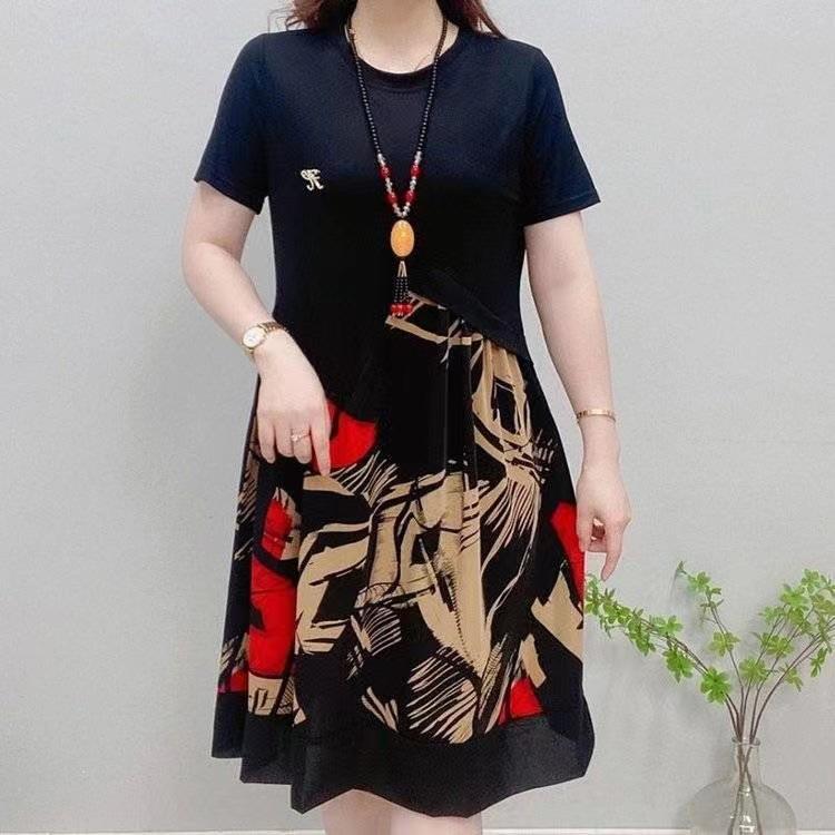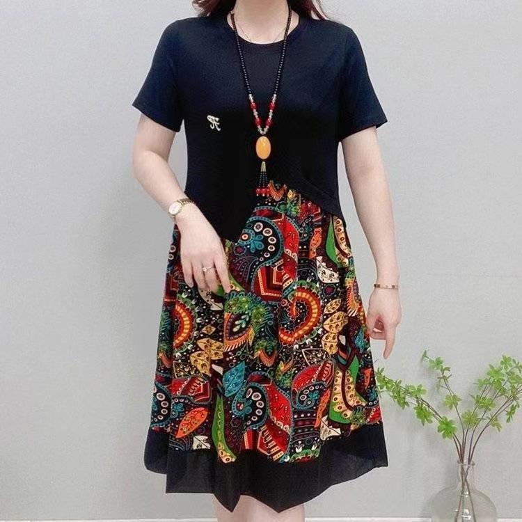 Verano Nuevo Vestido de Manga Corta con Costuras Vestido para Mujeres de Mediana Edad y Ancianas Moda Estilo Occidental Cubre Vientre Adelgazante Vestido de Madre