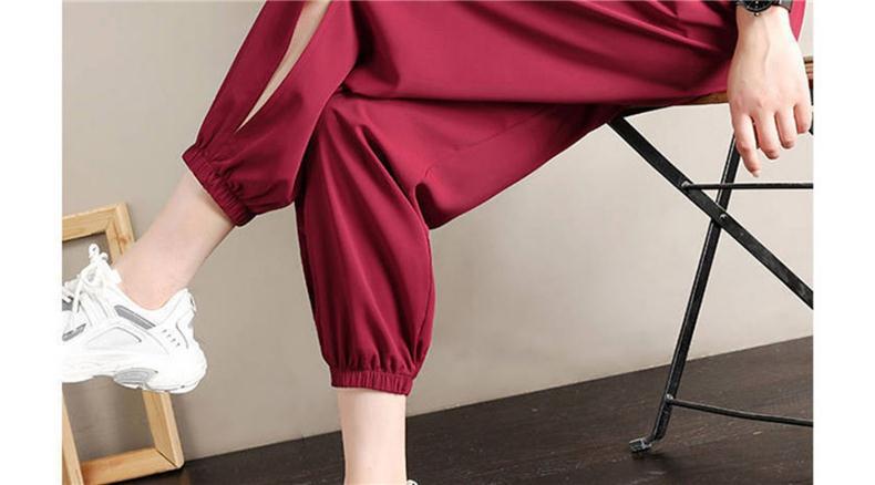Verano Nuevo Talla Grande Pantalones Harem Delgados para Mujer Estilo Coreano Cintura Alta Sueltos Bombachos Casuales Pierna Ancha Pantalones Nueve Puntos