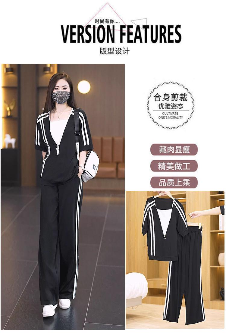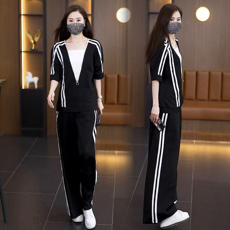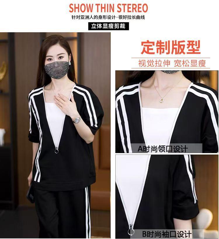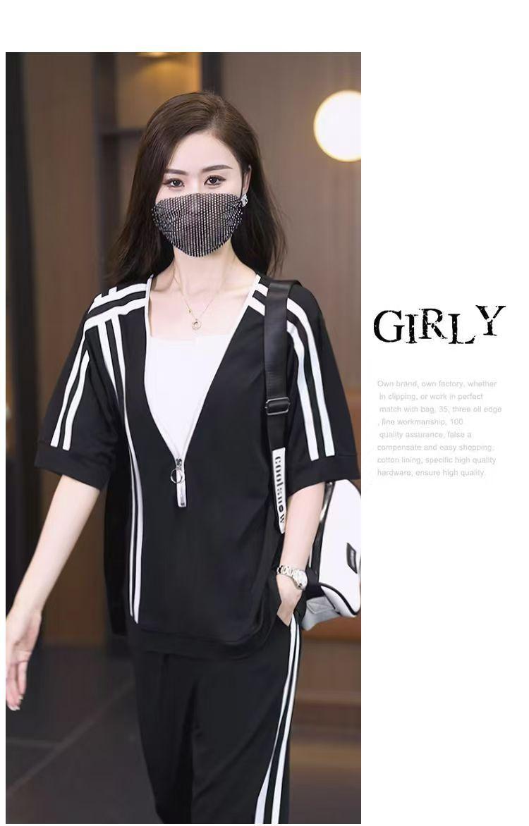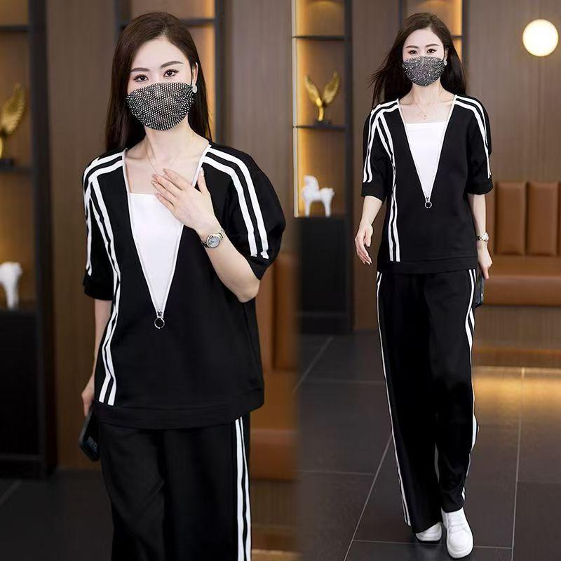 Traje Deportivo Casual de Moda de Talla Grande para Mujer 2025 Verano Nuevo Estilo Manga Corta Holgado Moda Conjunto de Dos Piezas