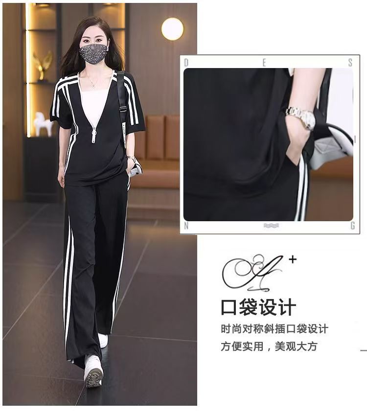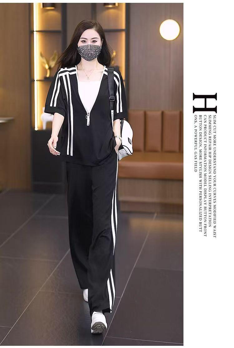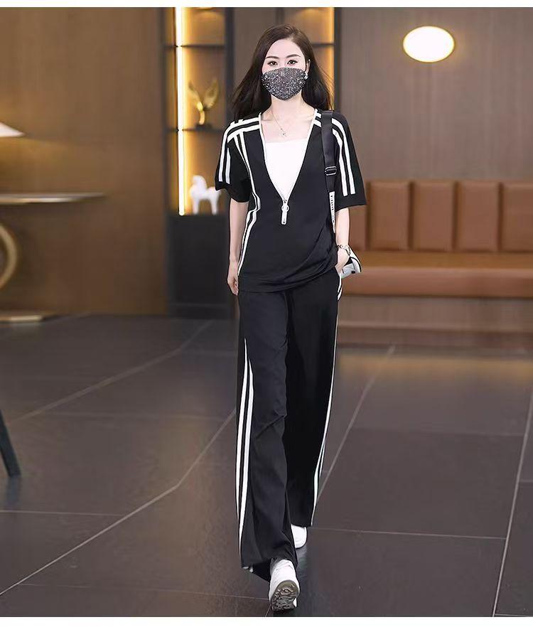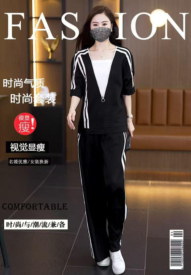 Traje Deportivo Casual de Moda de Talla Grande para Mujer 2025 Verano Nuevo Estilo Manga Corta Holgado Moda Conjunto de Dos Piezas