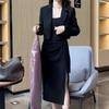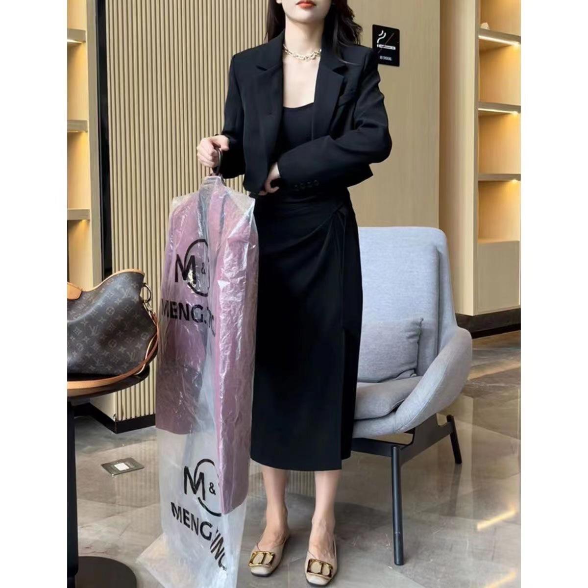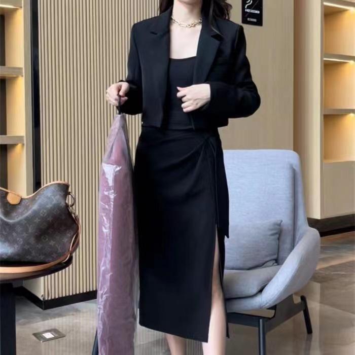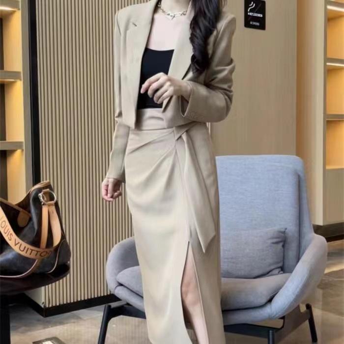 Conjunto de dos piezas formado por falda y pantalón de traje, primavera 2024, alta gama, falda dividida y top.