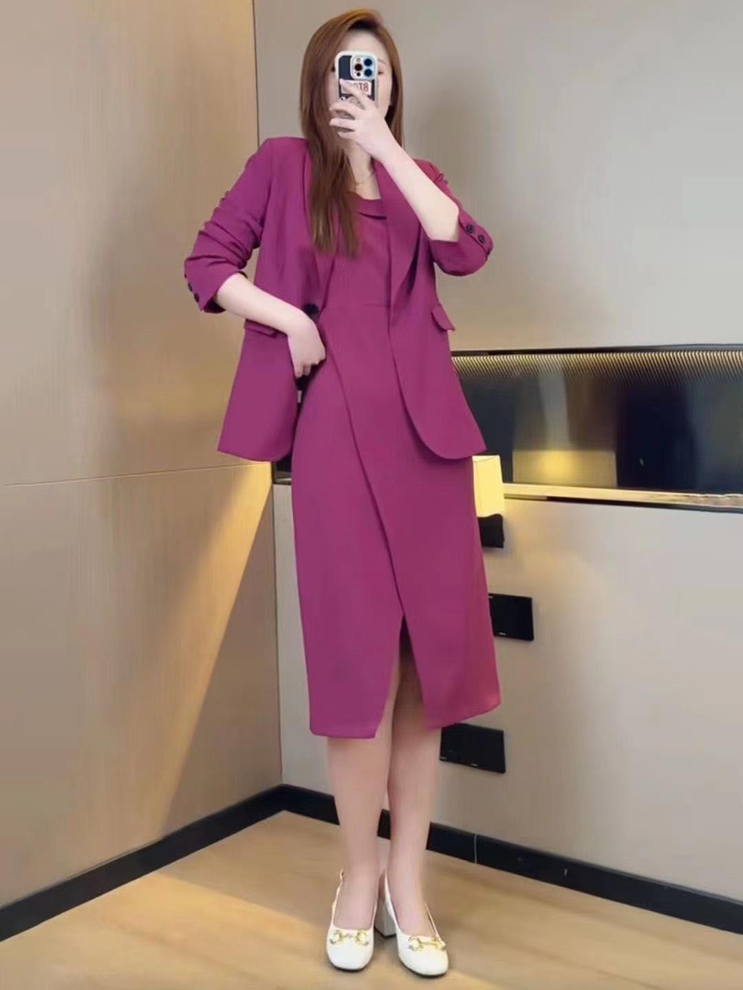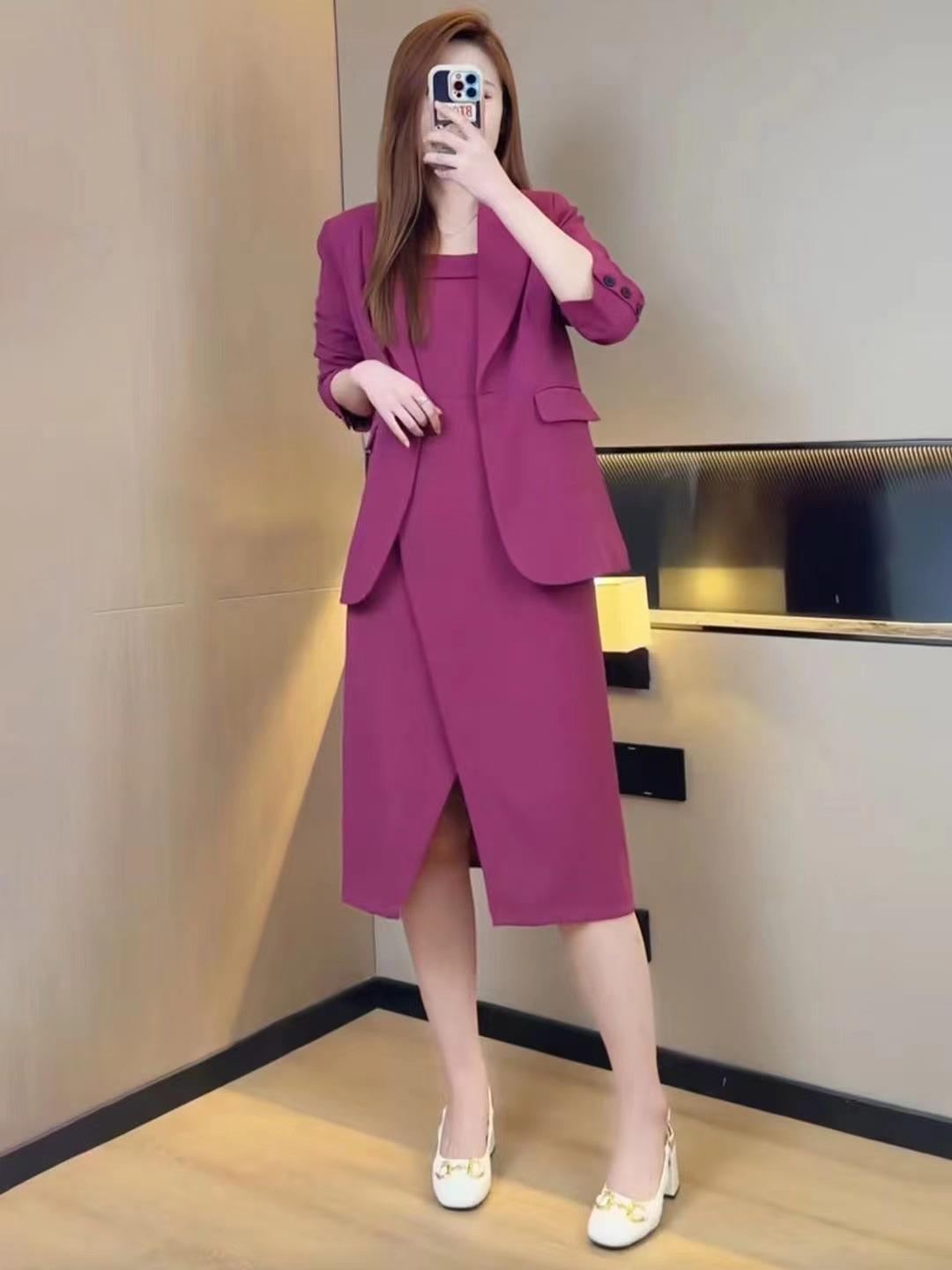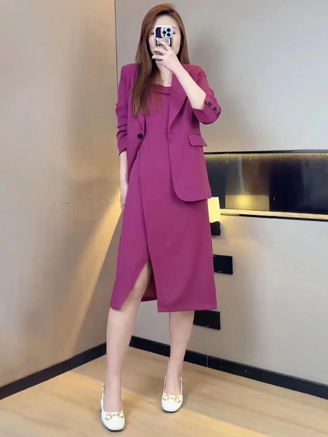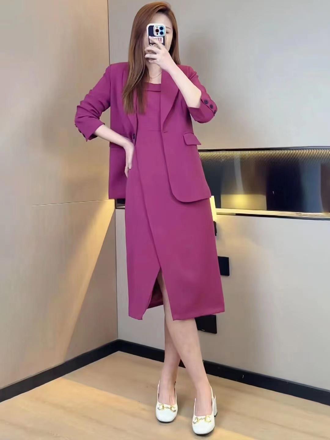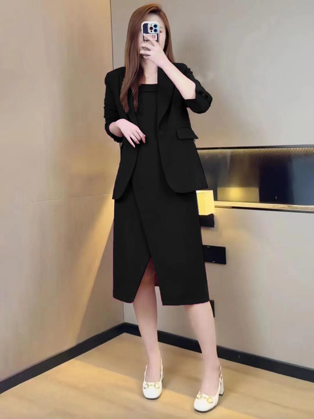 Traje de moda individual/conjunto Traje para mujer 2024 Primavera Nuevo Chaqueta de traje Falda slip Slim Conjunto de dos piezas