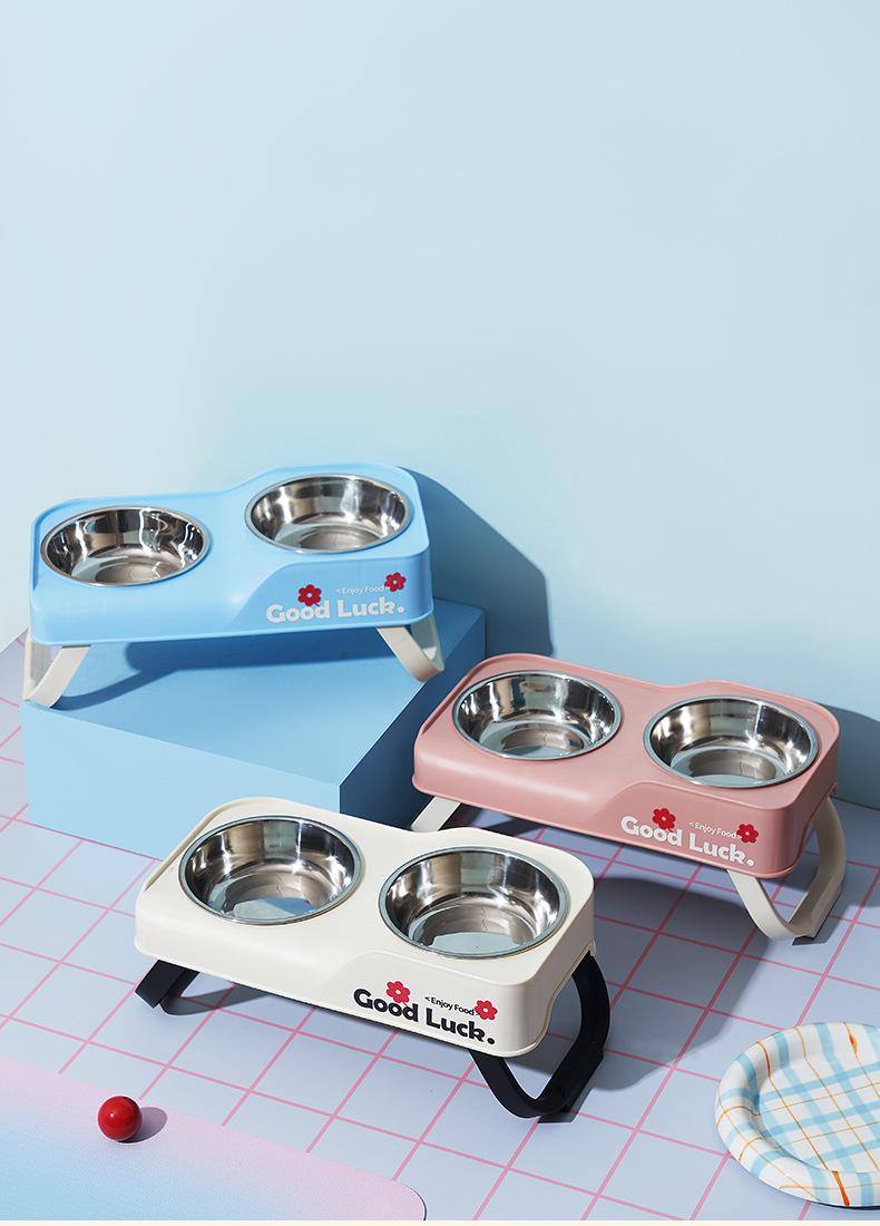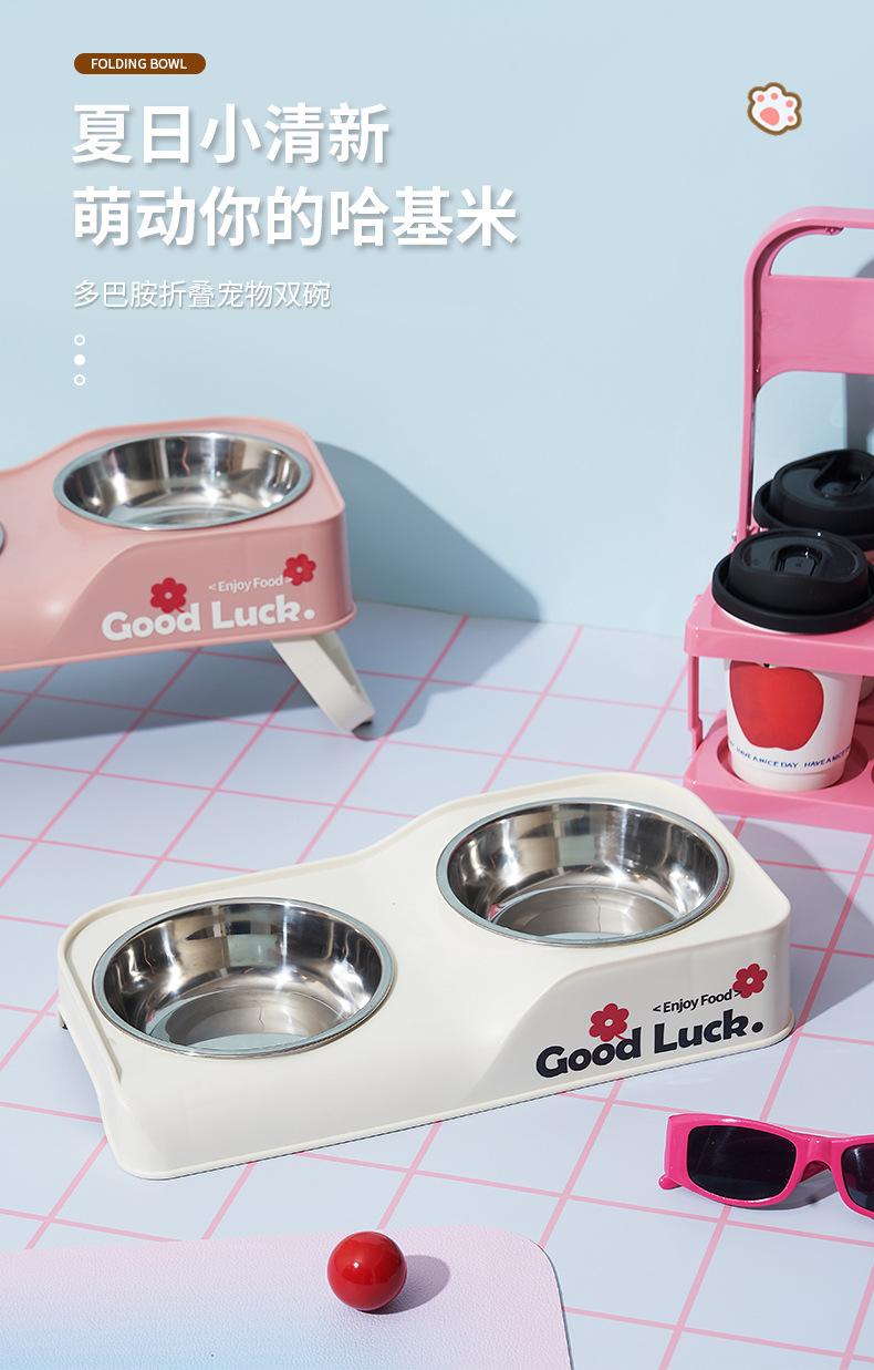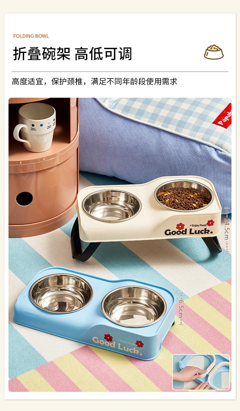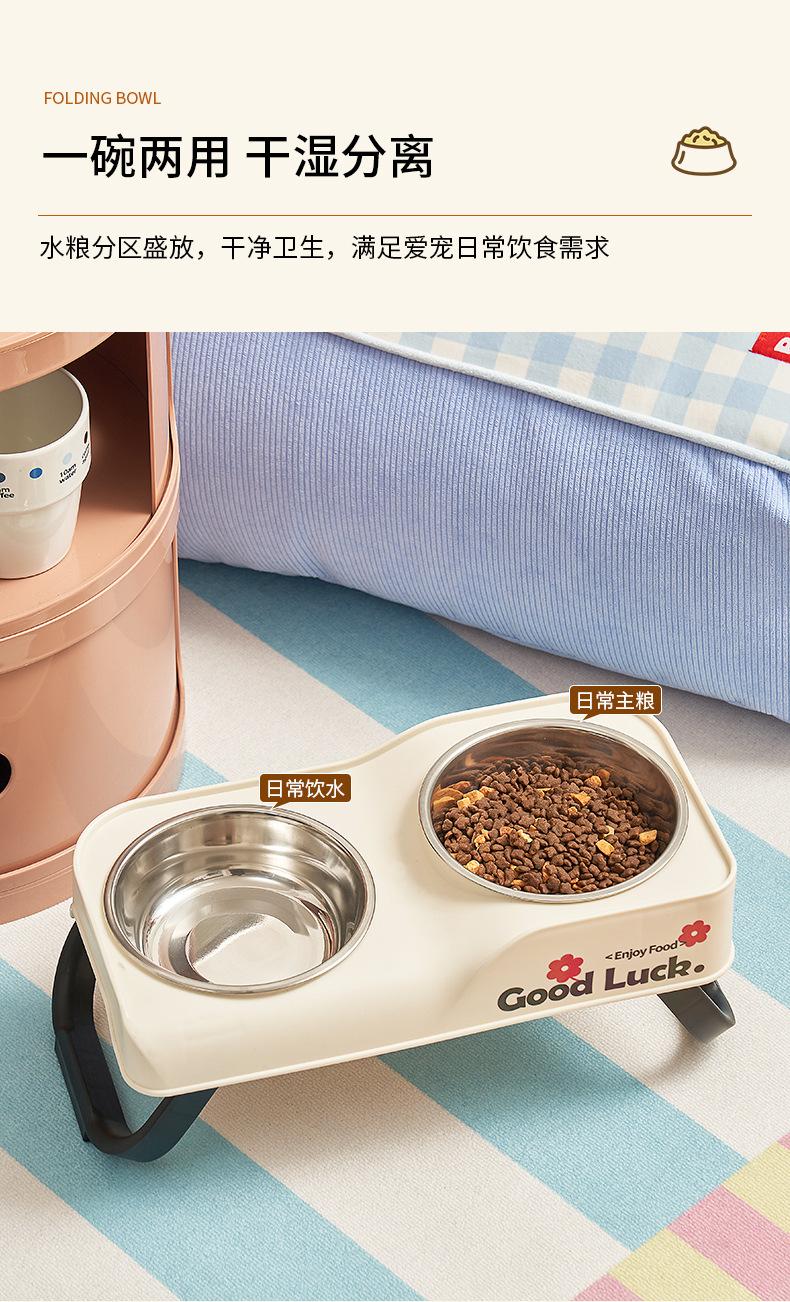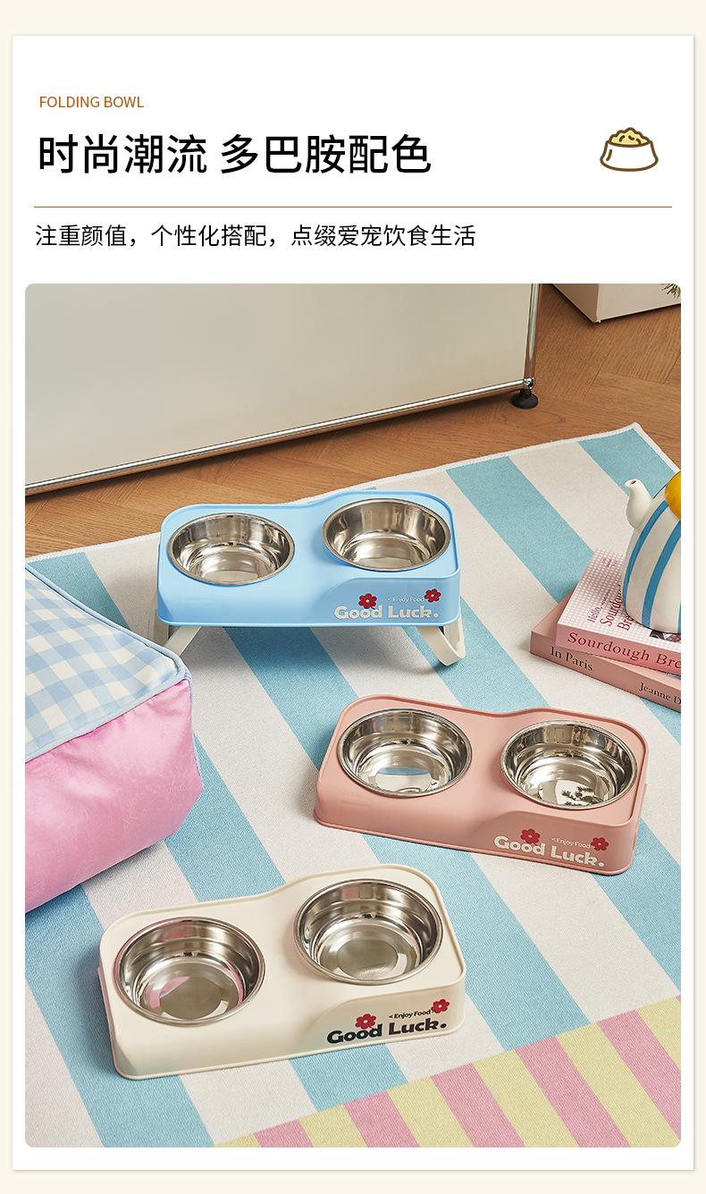 Tazón Doble de Acero Inoxidable para Mascotas Anti-golpes Tazón para Gatos Plegable Elevado Tazón Doble de Gran Capacidad para Perros Nuevo Tazón para Mascotas