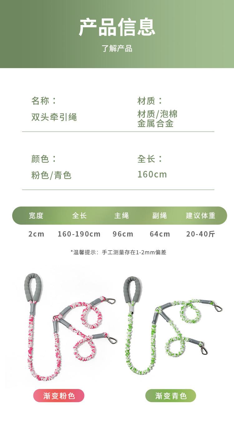 Correa para Perro Nueva Transfronteriza de Uno a Dos Cuerda Elástica a Prueba de Explosiones Anti-Tirón Suministros para Mascotas Correa para Pasear Perros