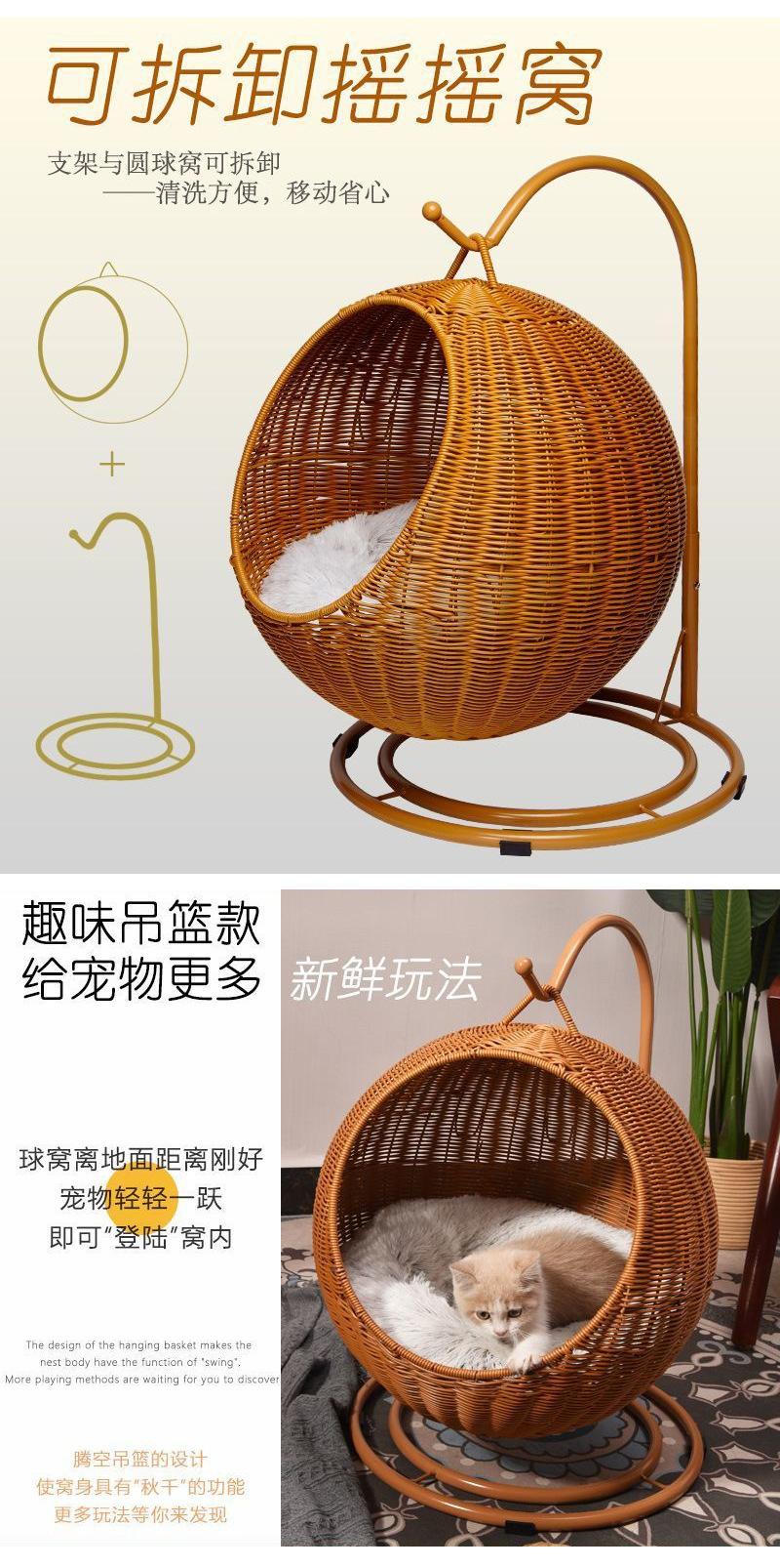 Nido para Gato Hecho a Medida Nido de Ratán para Perro Lavable Jaula para Gato Universal Transpirable Celebridad de Internet Nido de Verano para Mascota Cesta Colgante para Gato para Todas las Estaciones