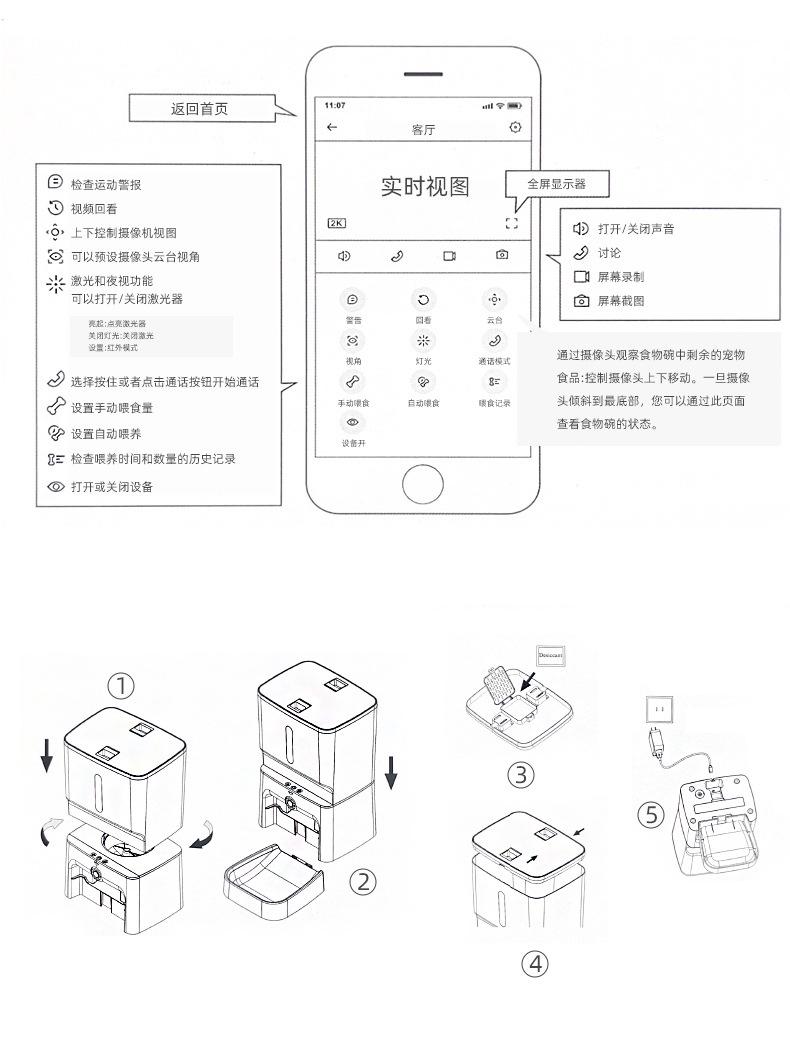 Láser Teaser para Mascotas Soporta WiFi 5G Cámara de Visión Nocturna de 3 Millones de Píxeles Cámara Giratoria Controlada Eléctricamente de 110° Emparejamiento Instantáneo por Bluetooth