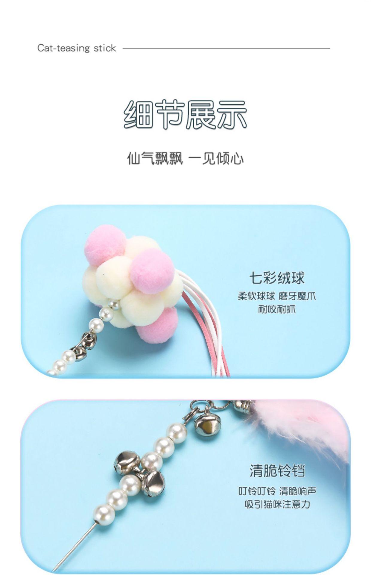 Juguete Varita Teaser para Gatos Entretenimiento Propio Gadget para Aliviar el Aburrimiento Varilla Larga Duradero Masticable Campana Bádminton Gatito Suministros para Mascotas
