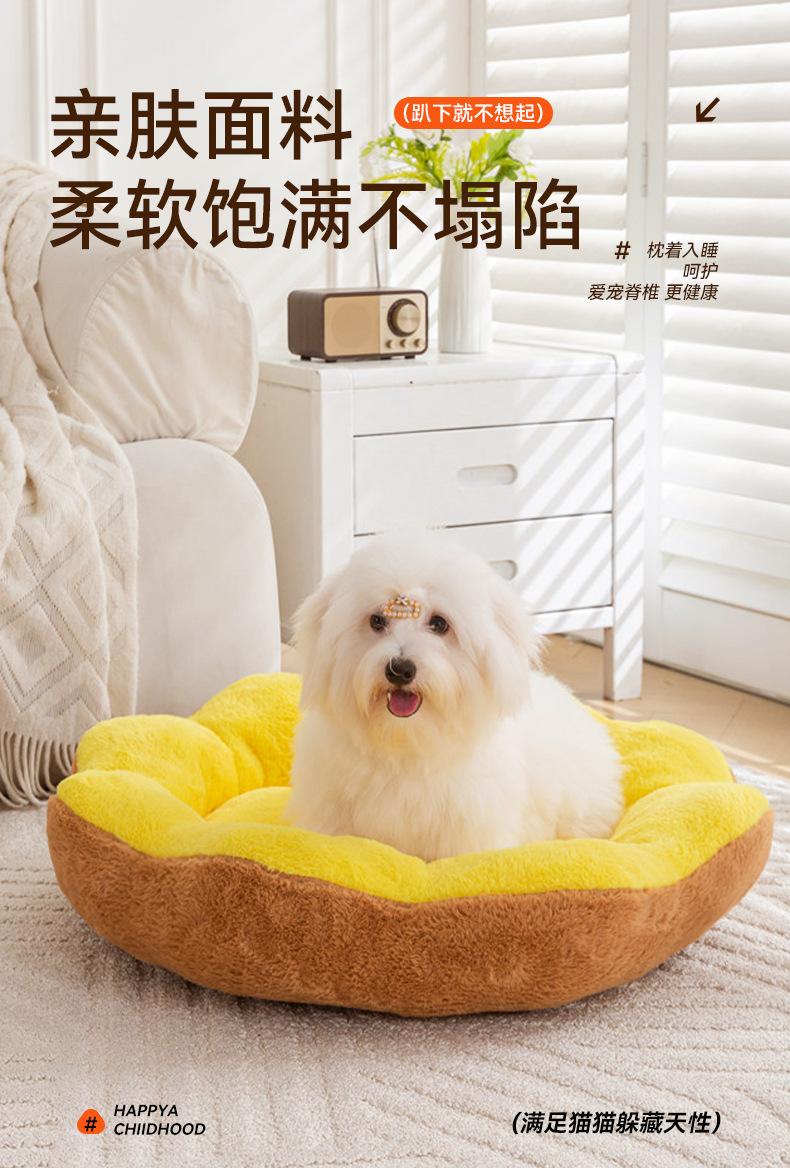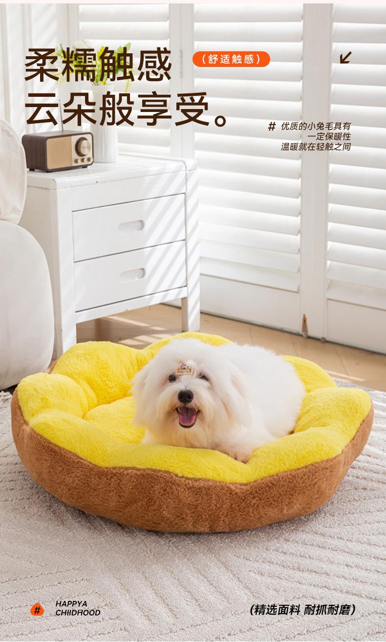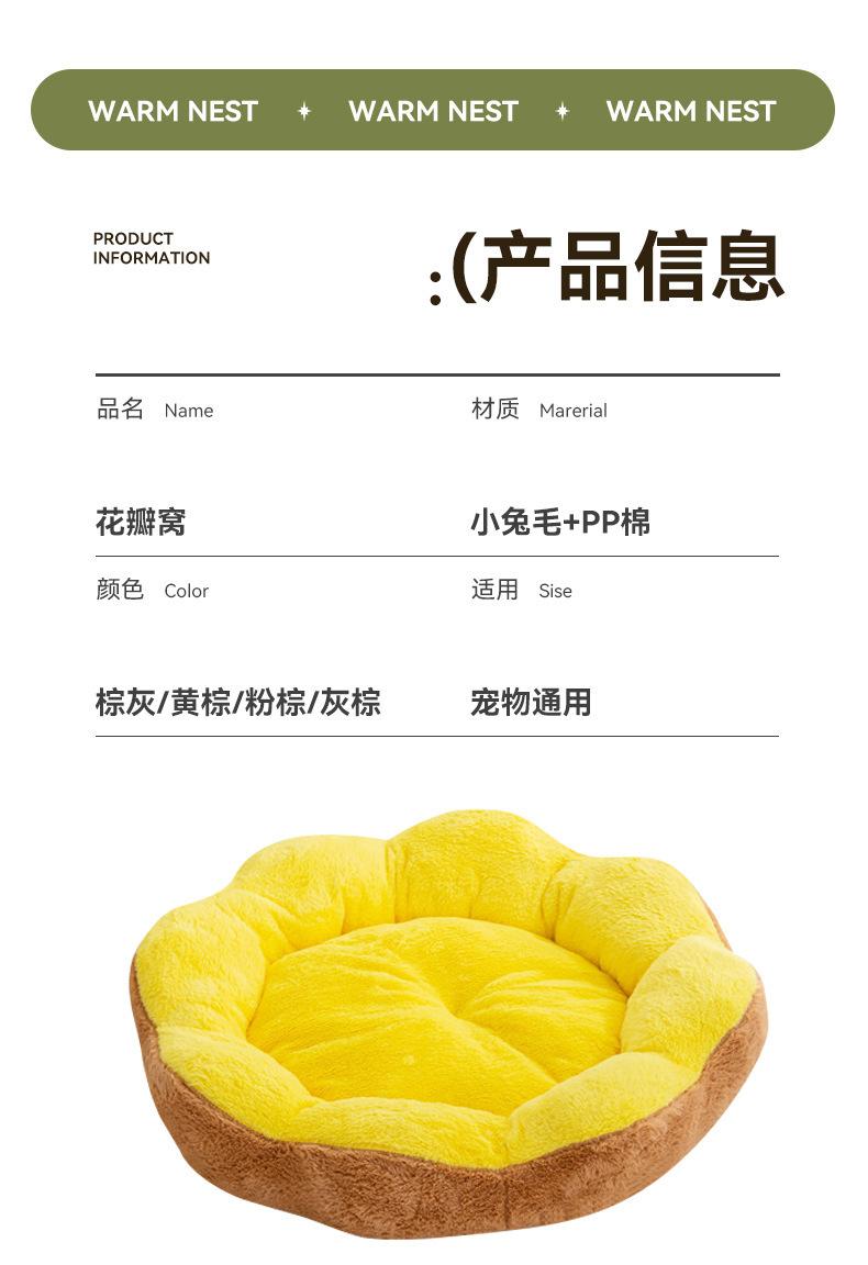 Cama para Gatos de Pétalos Invierno Gruesa Cálida Conejo Felpa Desmontable Lavable Nido para Mascotas Nido Redondo Suministros Cama para Perros Perro Pequeño