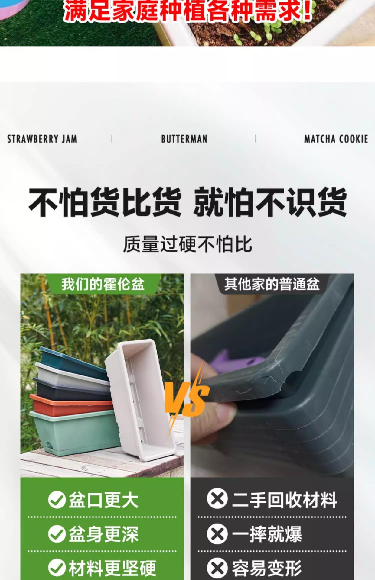 Maceta de Plástico Transfronteriza Resina Engrosada Rectangular Hogar Balcón Maceta para Verduras Artefacto para Plantar Plantas Verdes Perezosas Hulen