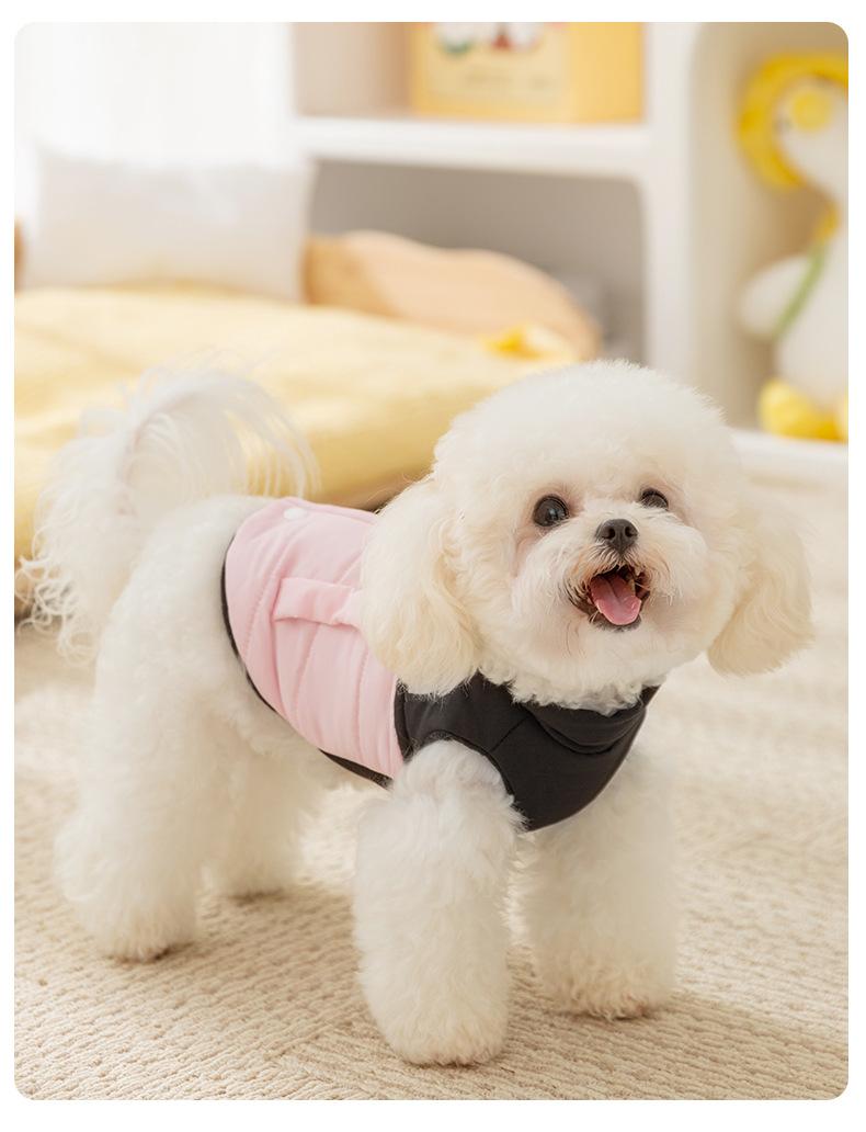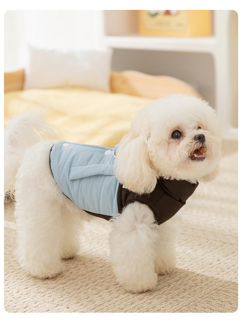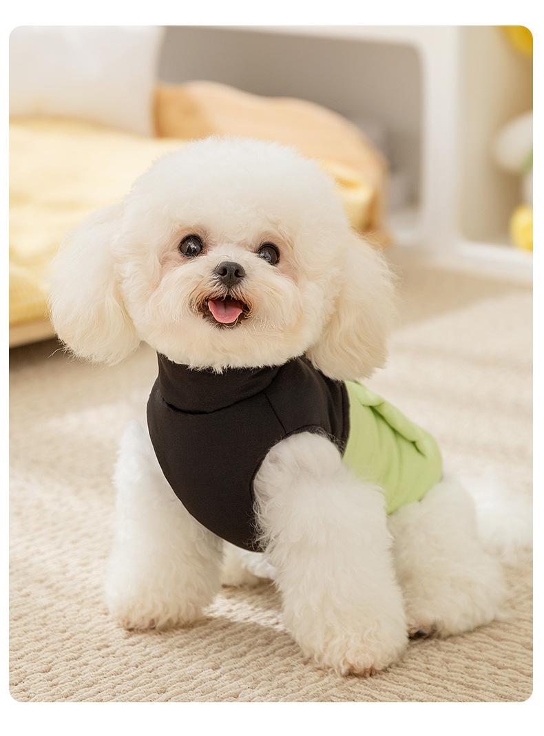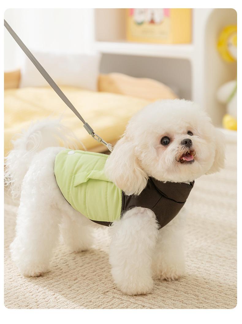 Chaleco de tracción con costuras de moda y colores contrastantes para perros pequeños y gatos, de dos patas, sin mangas, ropa de otoño para mascotas.