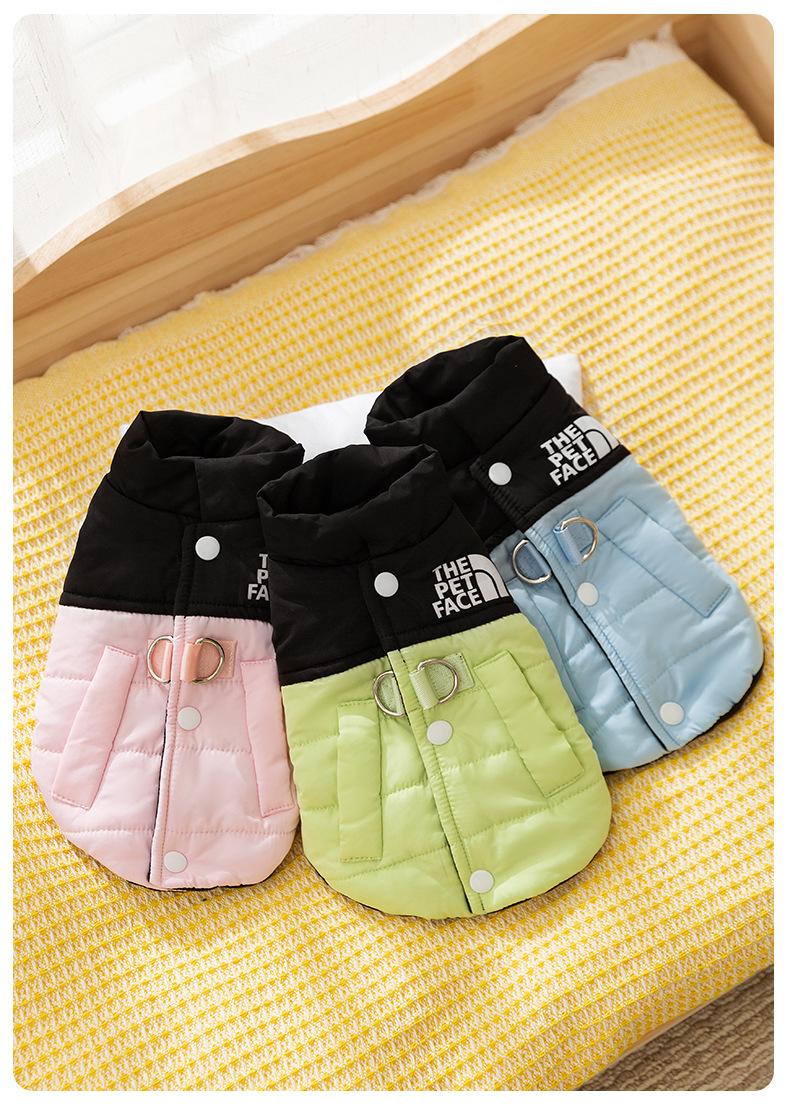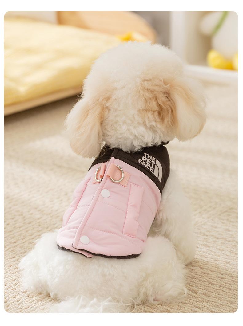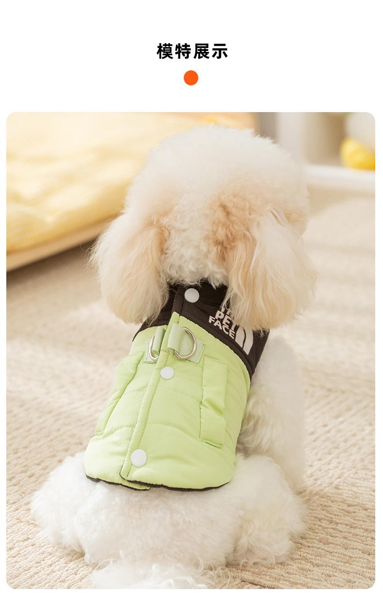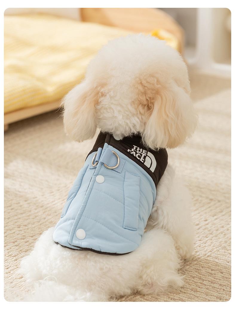 Chaleco de tracción con costuras de moda y colores contrastantes para perros pequeños y gatos, de dos patas, sin mangas, ropa de otoño para mascotas.