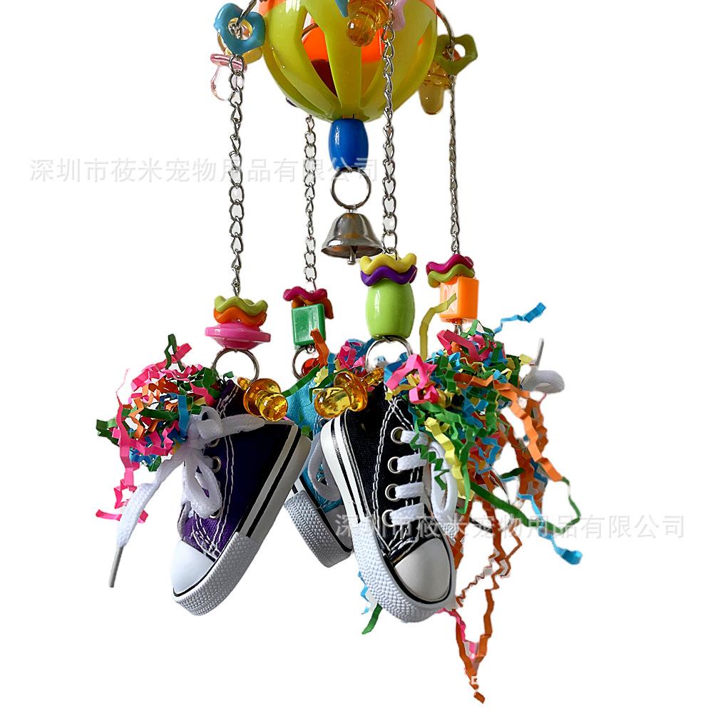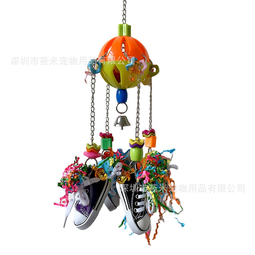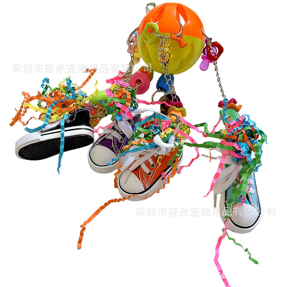 Juguete para pájaros loro Campana bola juguete para picotear Zapatos de lona Alambre de papel para tirar y romper Mordedura Molienda boca Alivio Juguete de peluche Colgante