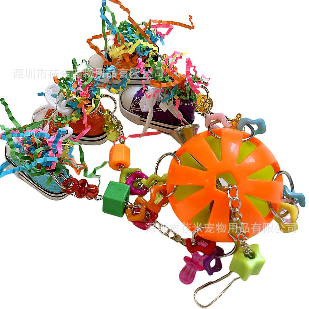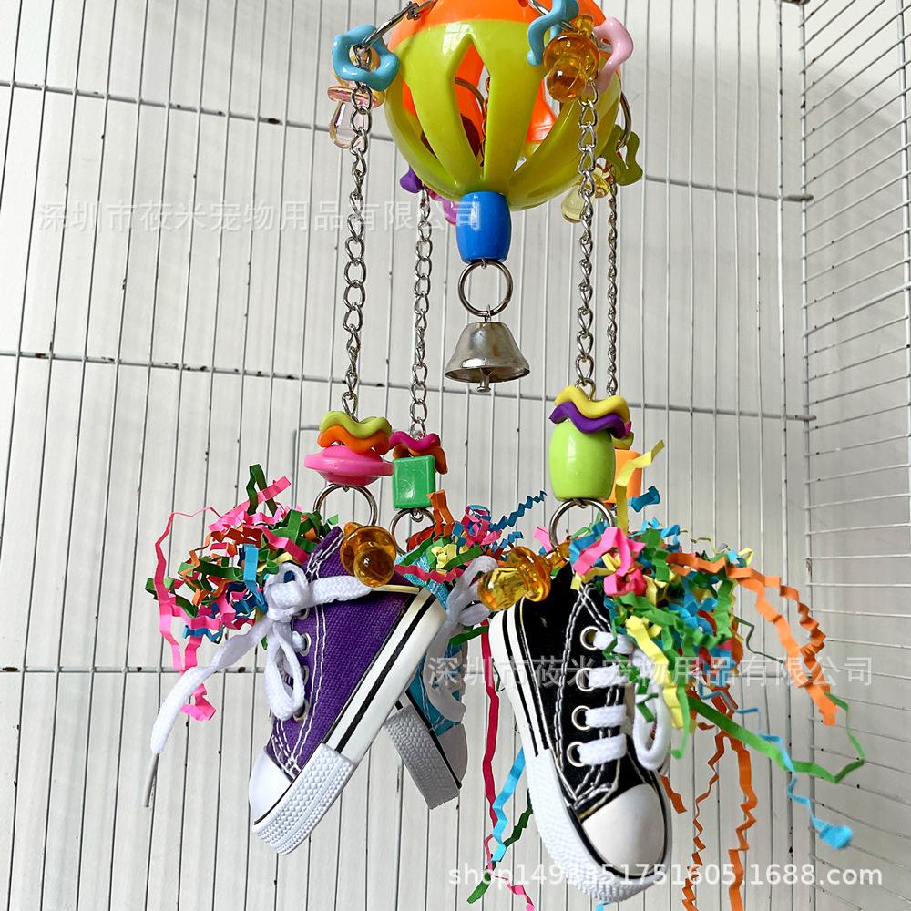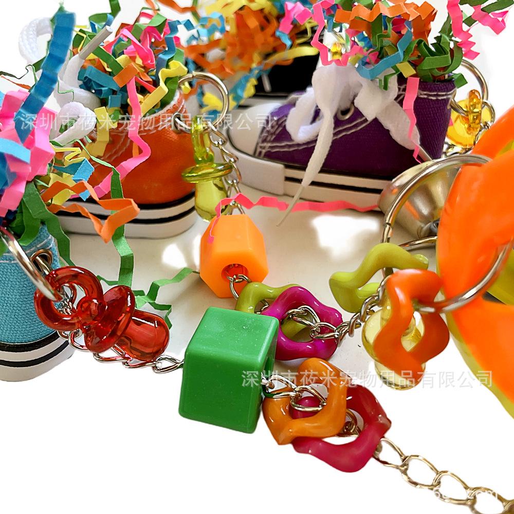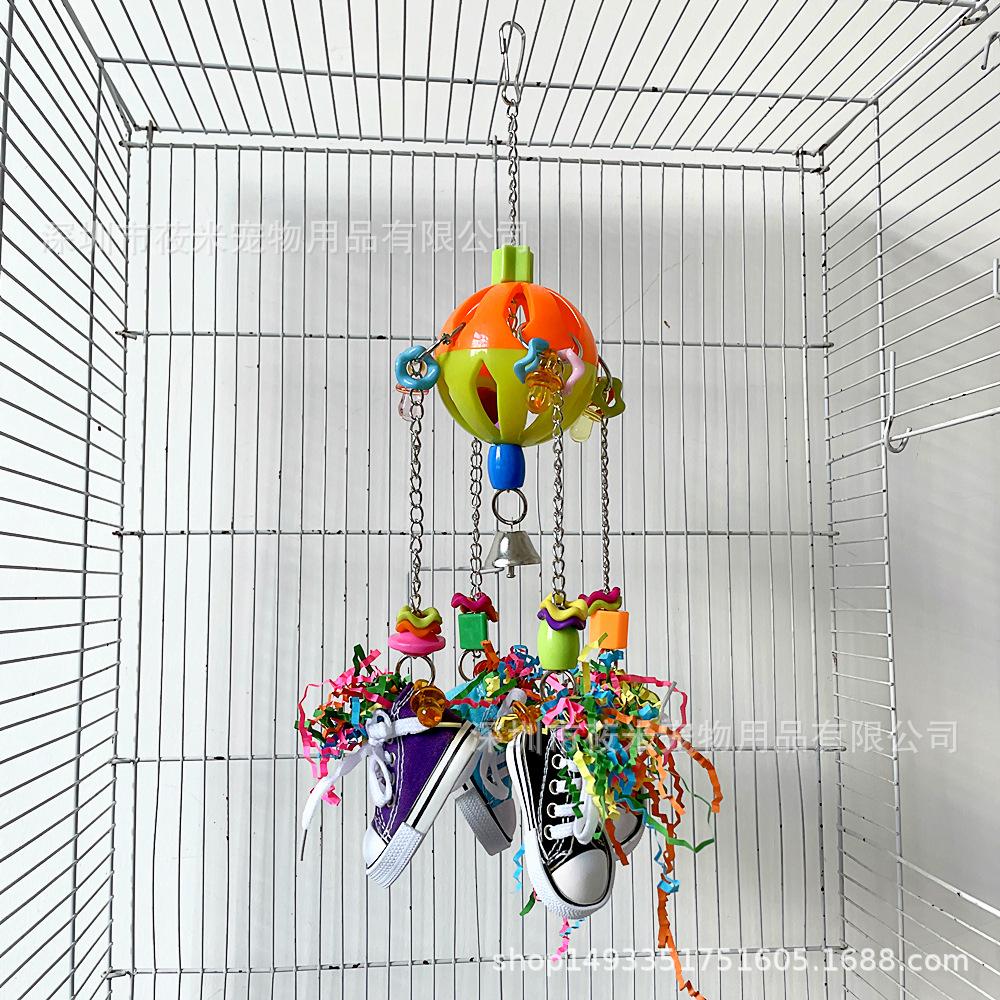 Juguete para pájaros loro Campana bola juguete para picotear Zapatos de lona Alambre de papel para tirar y romper Mordedura Molienda boca Alivio Juguete de peluche Colgante