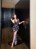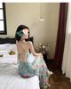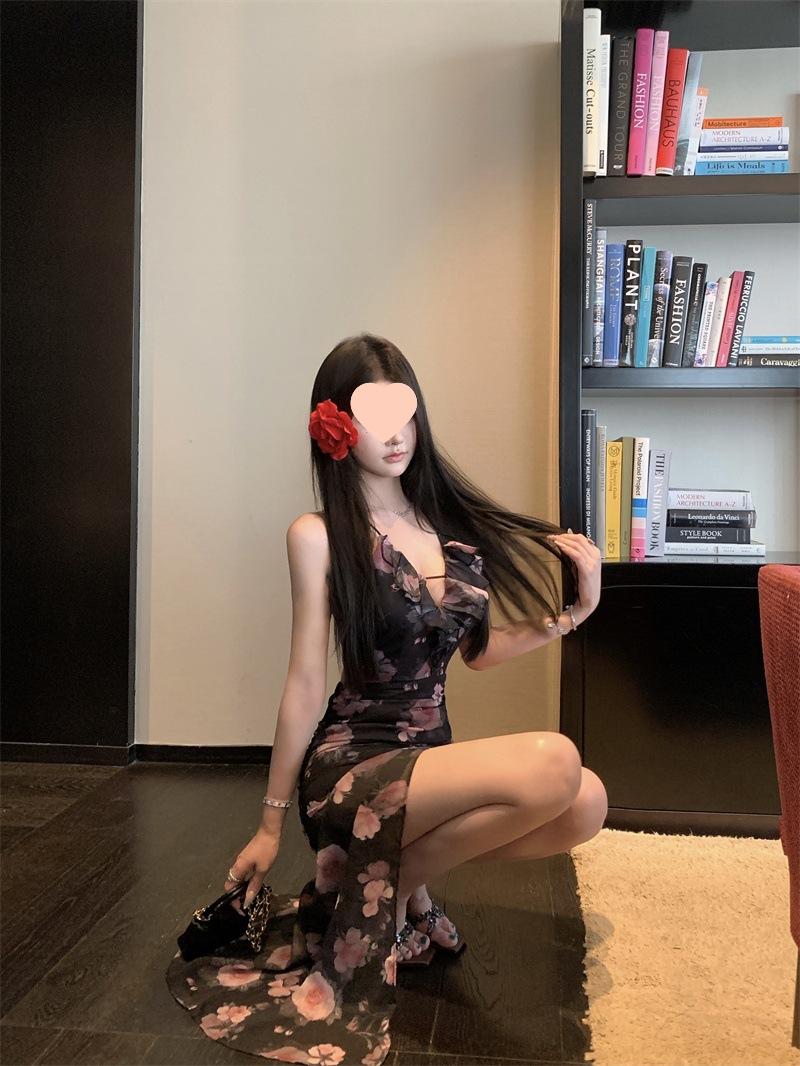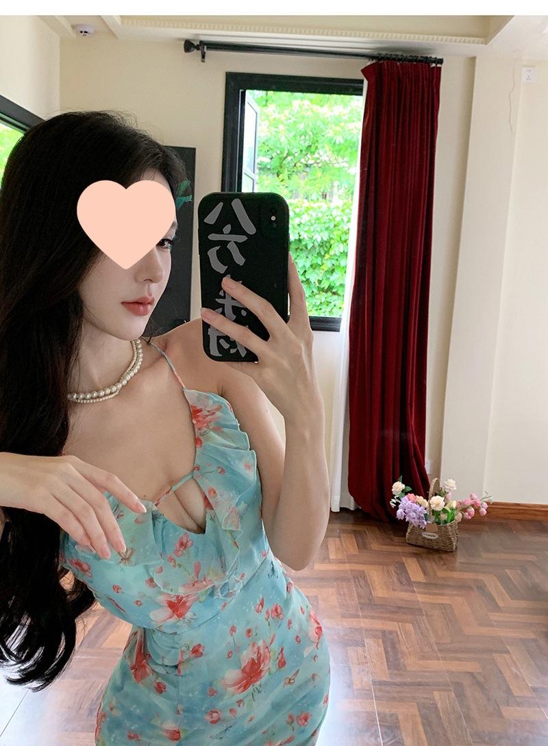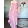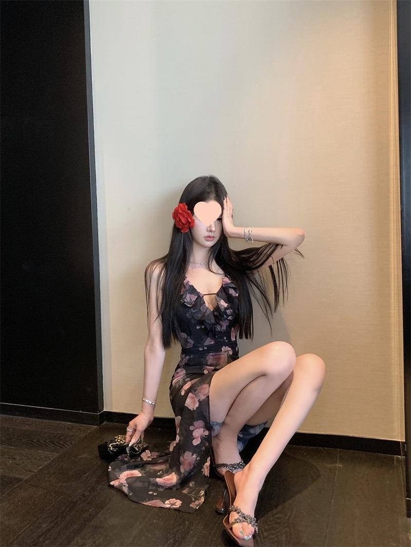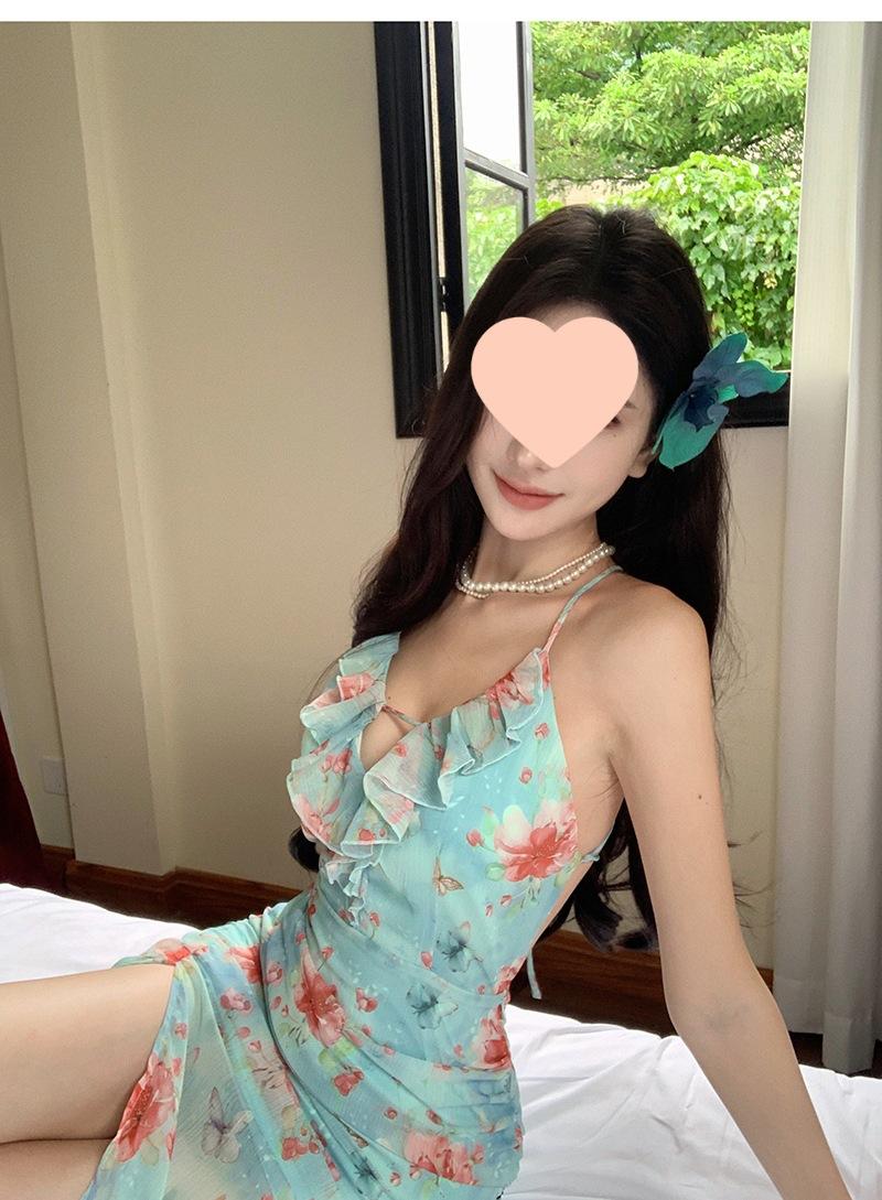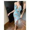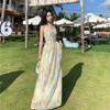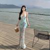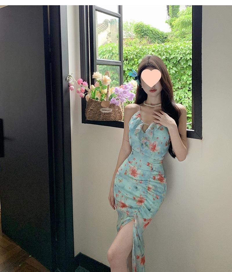 Vestido puro sexy con volantes florales y tirantes para mujer, ambiente de vacaciones de verano junto al mar, sin espalda, con abertura, vestido de playa