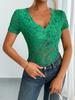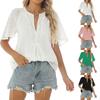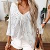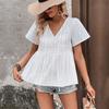 Verano Transfronterizo 2025 Europeo y Americano Comercio Exterior Amazon Nuevo Top Camisa Encaje Bordado Cuello Mao Escote en V para Mujer