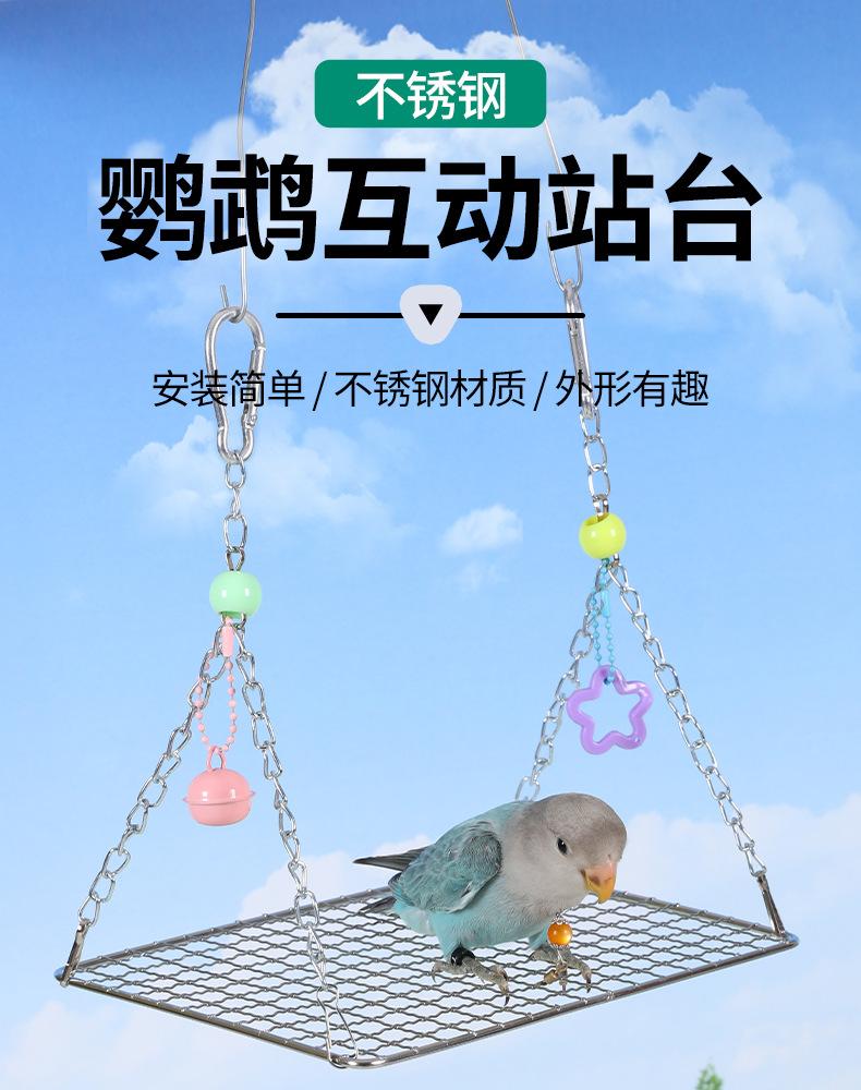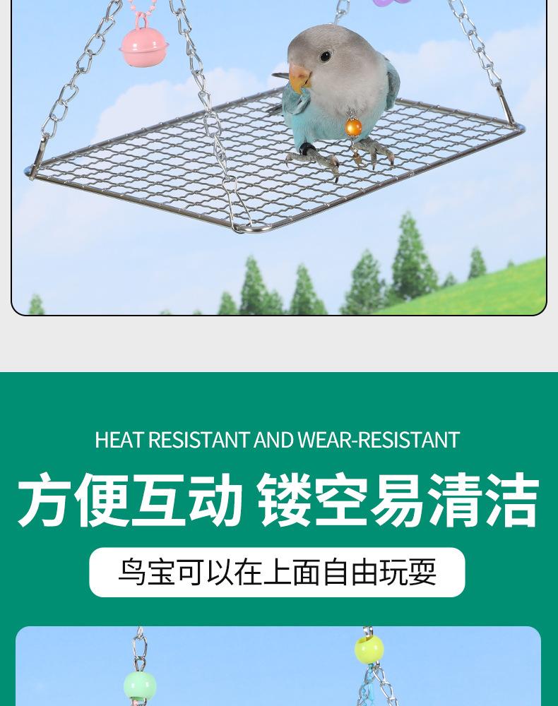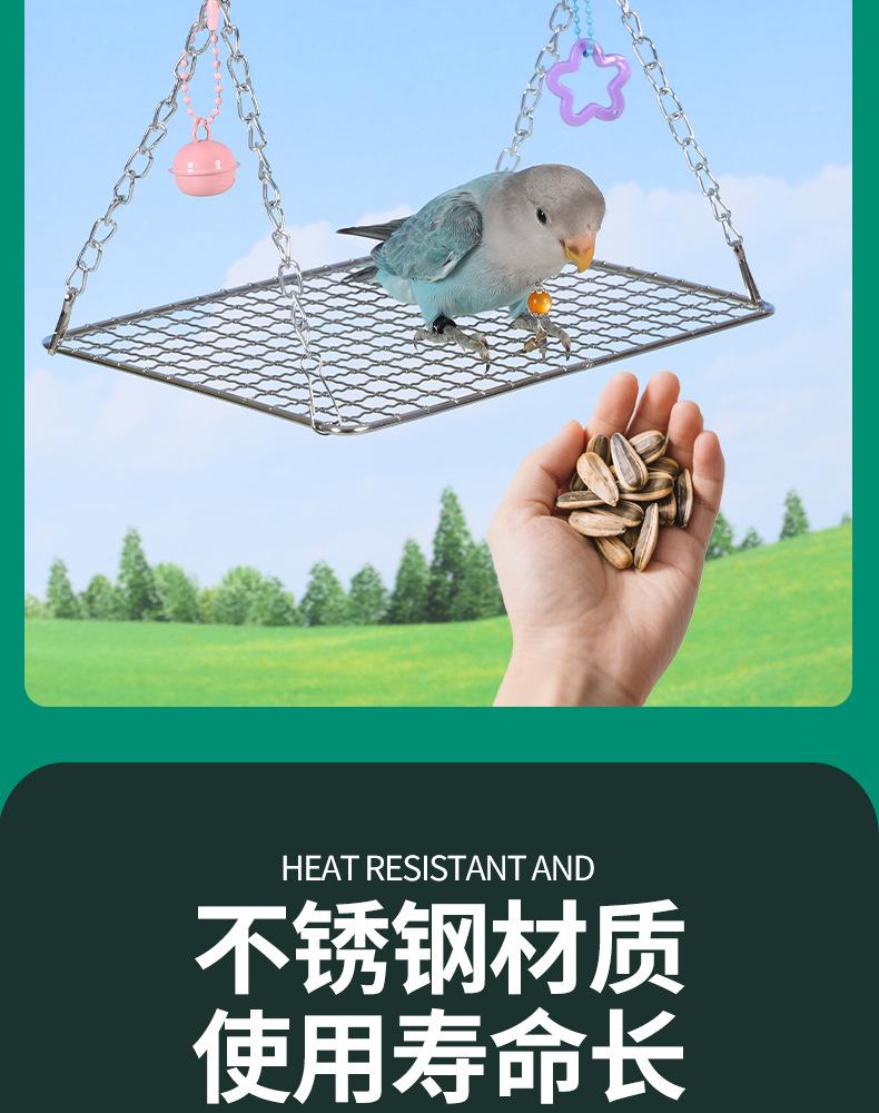 Columpio de Acero Inoxidable para Loro Plataforma de Descanso de Red Juguete para Pájaros Hamaca Anti-Roeduras Jaula para Pájaros Artefacto Refrescante de Verano