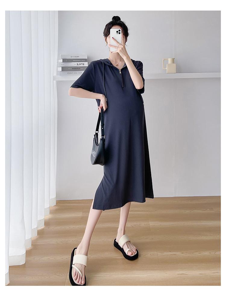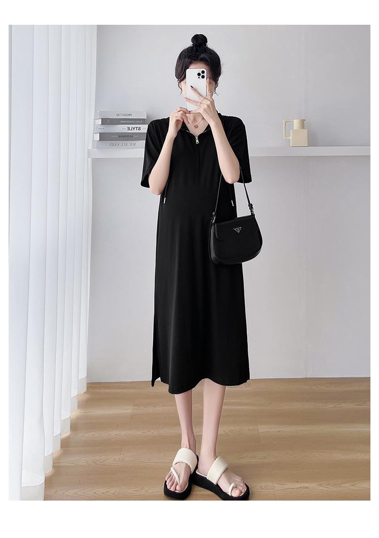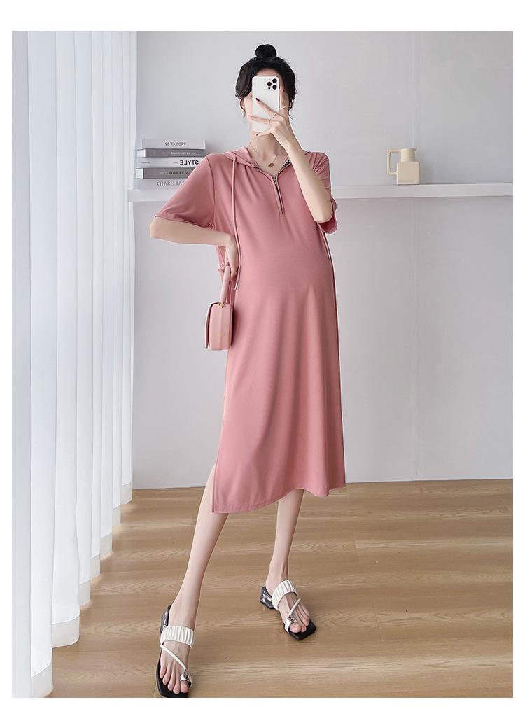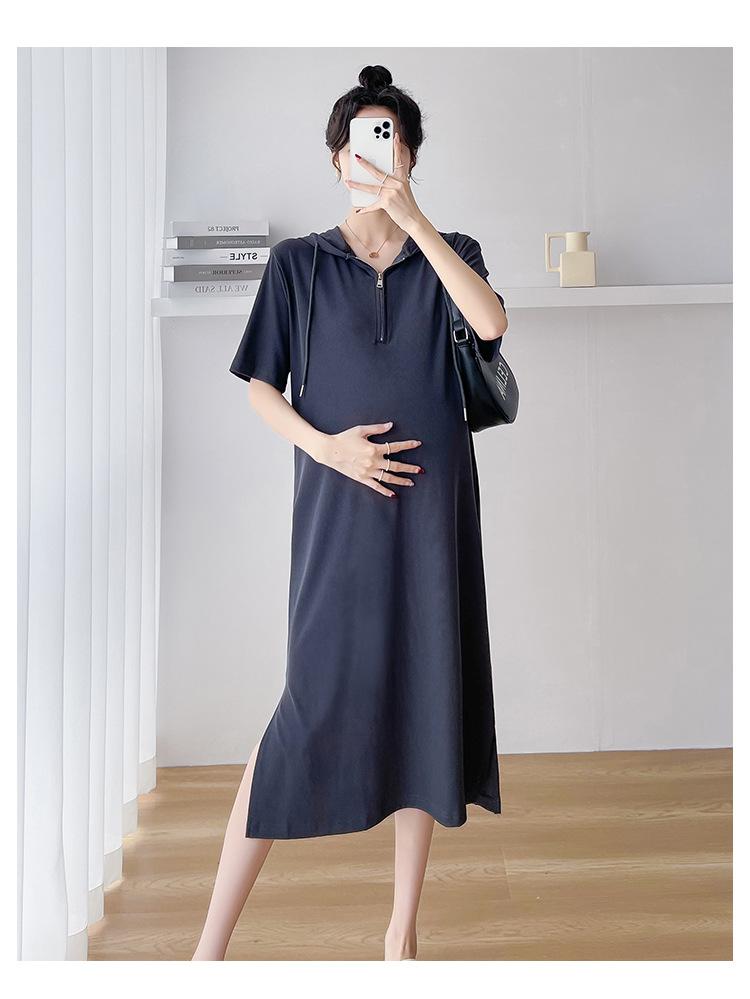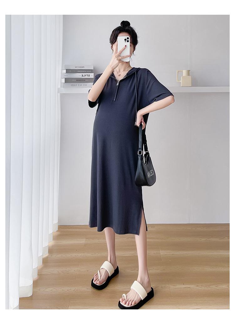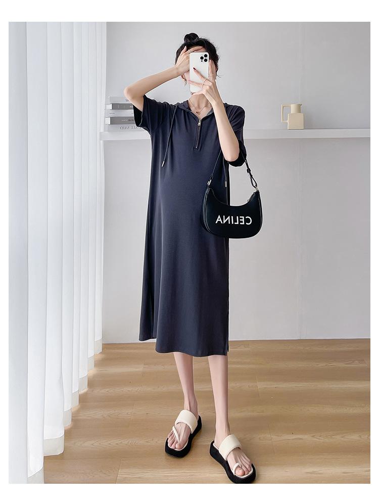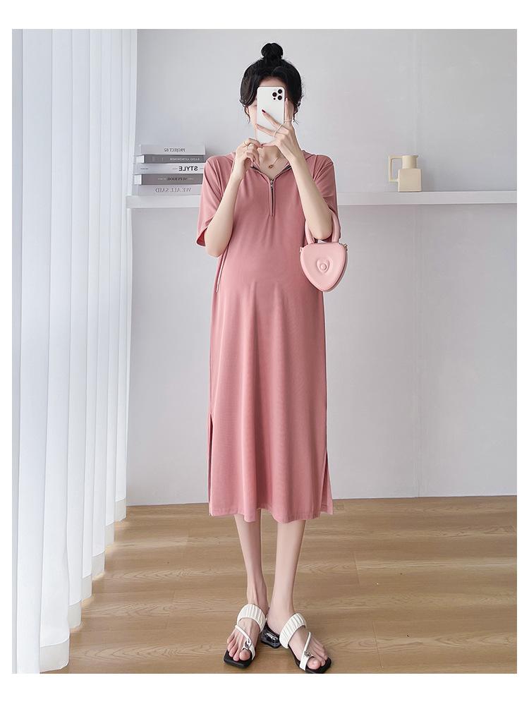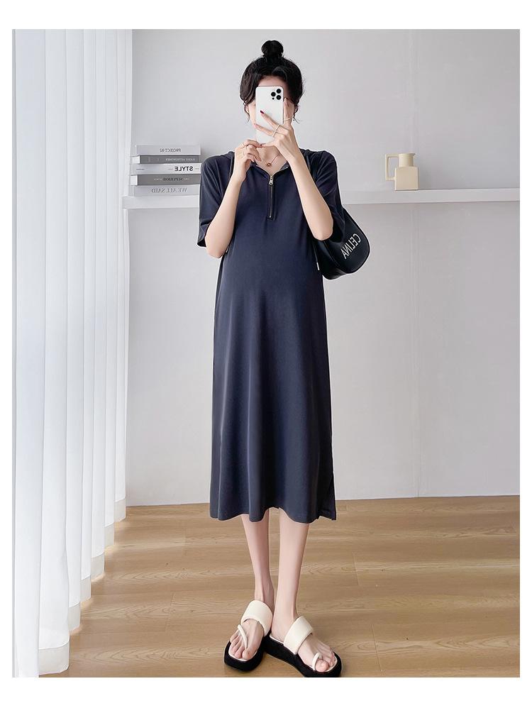 Ropa de maternidad verano nuevo estilo coreano temperamento a la moda largo medio cremallera de lactancia vestido para mujeres embarazadas